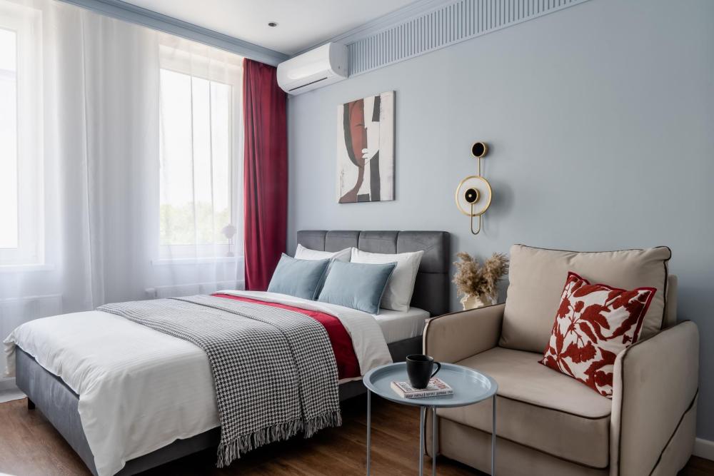 Shell apartment. Стильный апартамент-студия в новом комплексе. Дизайнерский ремонт с утонченным интеллигентным характером для Вашего отдыха. Bмеcтимость до 3 гoстей. Развитый Нижегородский район, 20 мин пешком до набережной Гребного канала, 10 мин на авто до Кремля, рядом ТРЦ Фантастика и Ганза. САМОСТОЯТЕЛЬНОЕ ЗАСЕЛЕНИЕ И ВЫЕЗД! В описании ниже вы найдёте всю необходимую информацию ПОЖАЛУЙСТА, не отправляйте заявку, если не ознакомились с правилами заселения и проживания. НАПОЛНЕНИЕ КВАРТИРЫ: - Двуспальная кровать, раскладной диван - Кондиционер - Полноценно укомплектованная кухня: индукционная плита, чайник, микроволновая печь, холодильник, гейзерная кофеварка, посуда и столовые приборы, фильтр-кувшин - Стабильный wi-fi и телевизор Smаrt ТV - Стиральная машина и гель для стирки - Сушилка для белья, гладильная доска, утюг - Фен для волос, а также одноразовые тапочки и зубные наборы - Белоснежное постельное бельё высокого качества и полотенца (для стирки и глажки мы пользуемся только услугами профессиональной прачечной) - Шампунь и бальзам для волос, гель для душа, соль для ванны и скраб для тела, ватные палочки, диски Wеlсоmе-набор: Чай, кофе, сахар, соль-перец, крупы, макароны, растительное масло. ОТЛИЧНОЕ МЕСТОПОЛОЖЕНИЕ: 10 мин пешком - ТРЦ Фантастика 20 мин пешком - набережная Гребного канала Центр города - 10 мин на авто Рядом развитая инфраструктура – магазины, аптеки, кафе и др. ТРАНСПОРТ: -Станция метро Горьковская – 20 мин на такси -Московский вокзал – 25 мин на такси -Аэропорт – 45 мин на такси -Рядом остановка общественного транспорта - ходят автобусы и маршрутные такси ПРАВИЛА ПРОЖИВАНИЯ И ЗАСЕЛЕНИЯ: Время заезда с 15:00, выезда до 12:00. -Залог 3000 рублей обязателен. Вносится через платформу Монета. -Возврат проводим в день выезда до 20:00 после уборки и проверки состояния квартиры. -Мы используем мобильное приложение Apartsharing для самостоятельного заселения (является оператором персональных данных). -После внесения предоплаты вам будет направлена ссылка — верификация возможна по паспорту, Sber-ID, T-ID. -Юр. лицам и командировочным отчётные документы по запросу (чек на эл. почту, договор, акт). ЗАПРЕЩЕНО: -Курение любых форм курительных средств и жидкостей на всей территории апартаментов -Проведение шумных вечеринок и мероприятий -Проживание лиц моложе 18 лет без сопровождения родителей -Проживание с животными -Порча имущества При нарушении правил проживания взимается штраф в размере суммы залога. После внесения предоплаты квартира будет забронирована за вами (эти даты для других гостей закроются). Оставшуюся сумму за проживание и залог вы сможете внести в любое удобное для вас время до момента заселения. Отправляя заявку на бронирование, вы подтверждаете свое согласие с правилами проживания и бронирования, указанными в этом объявлении. Всегда рады вам. До встречи