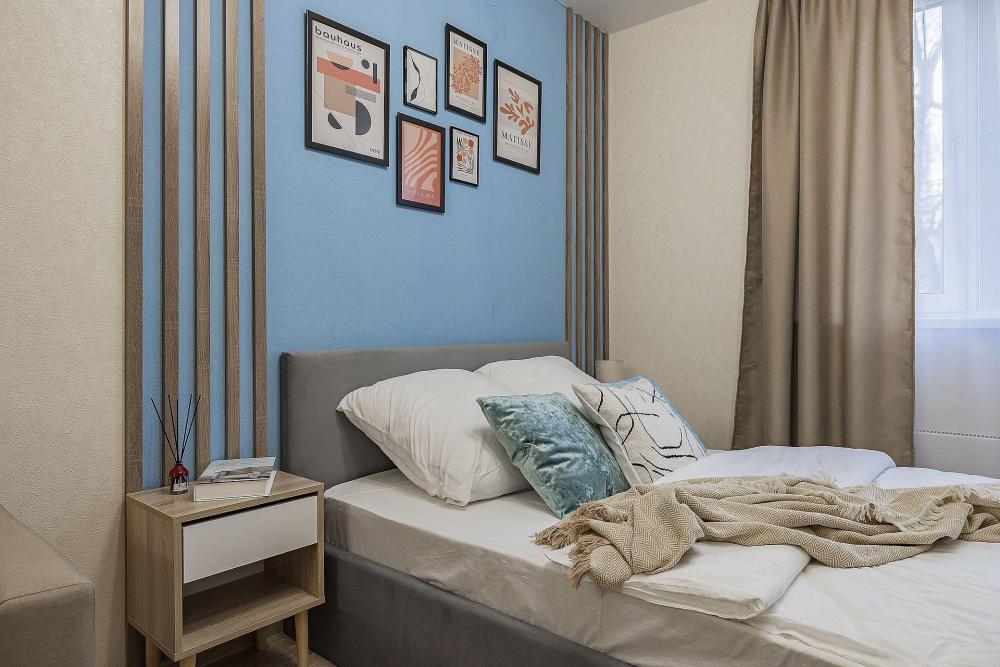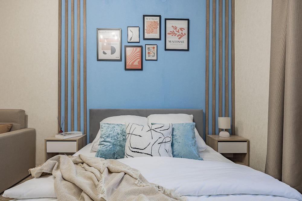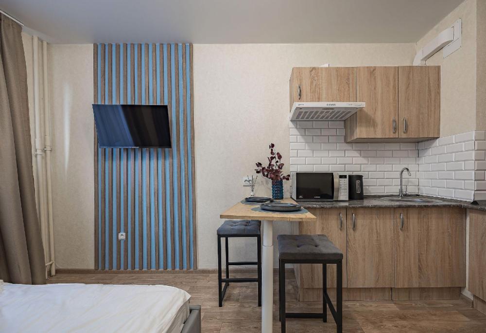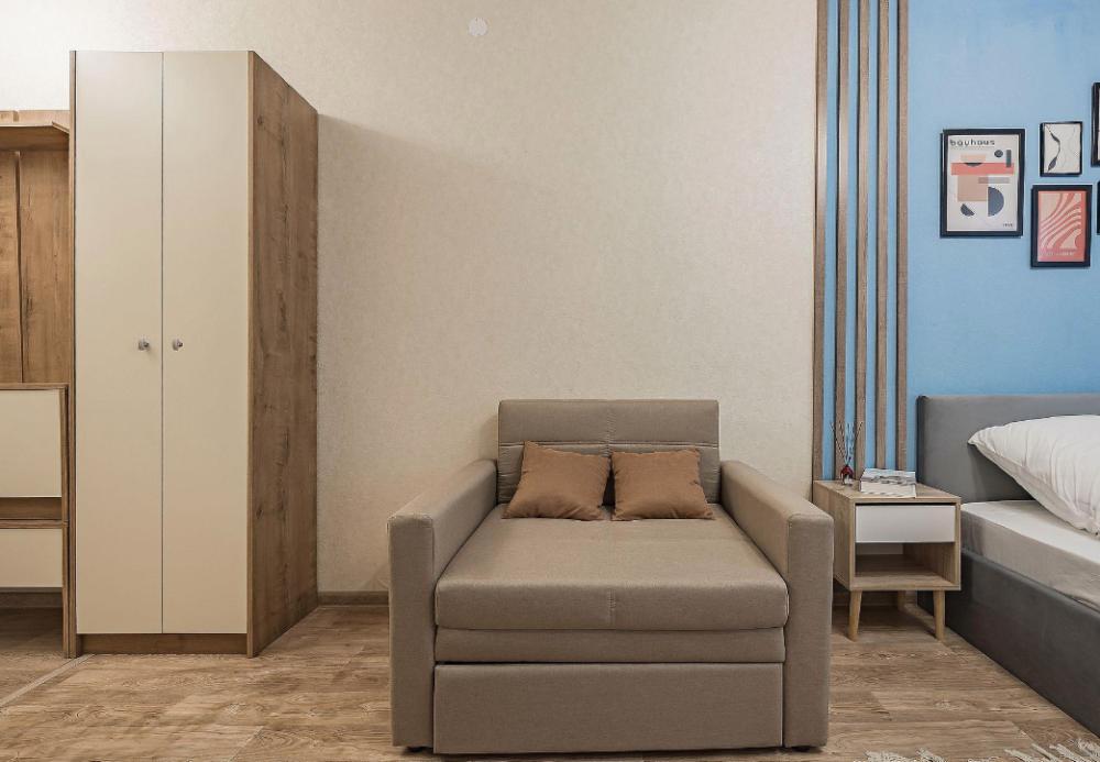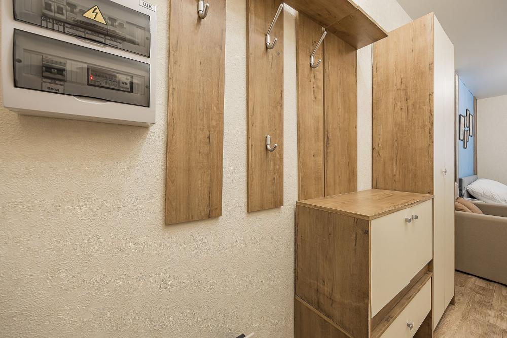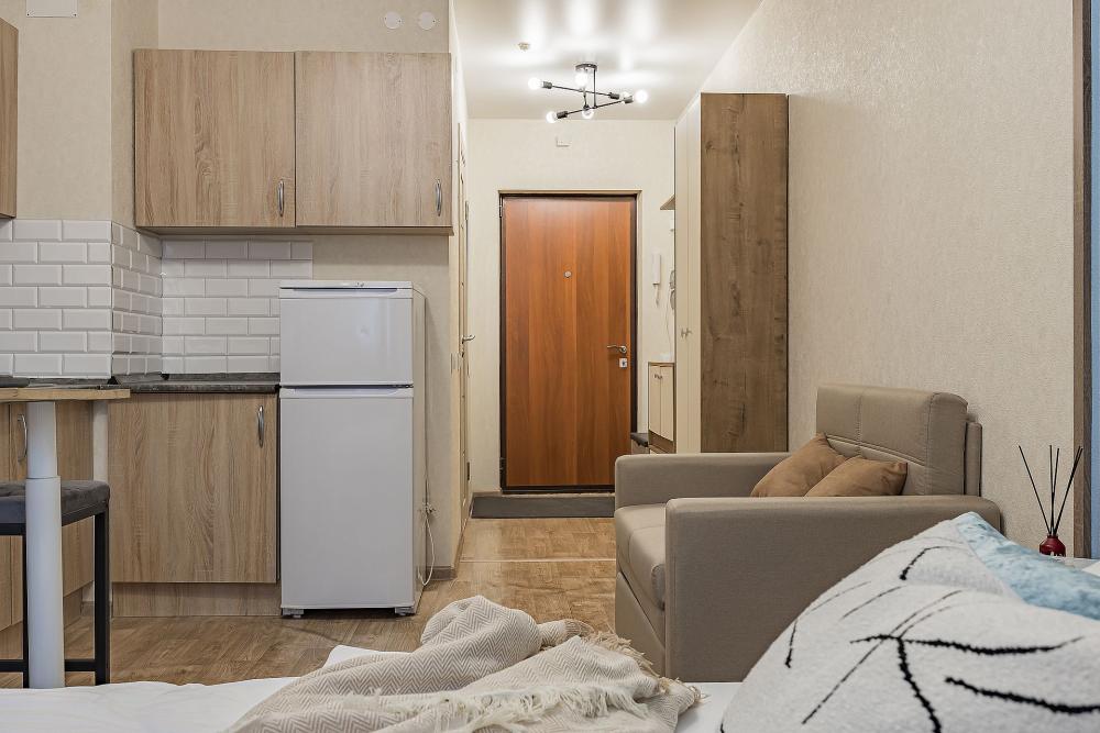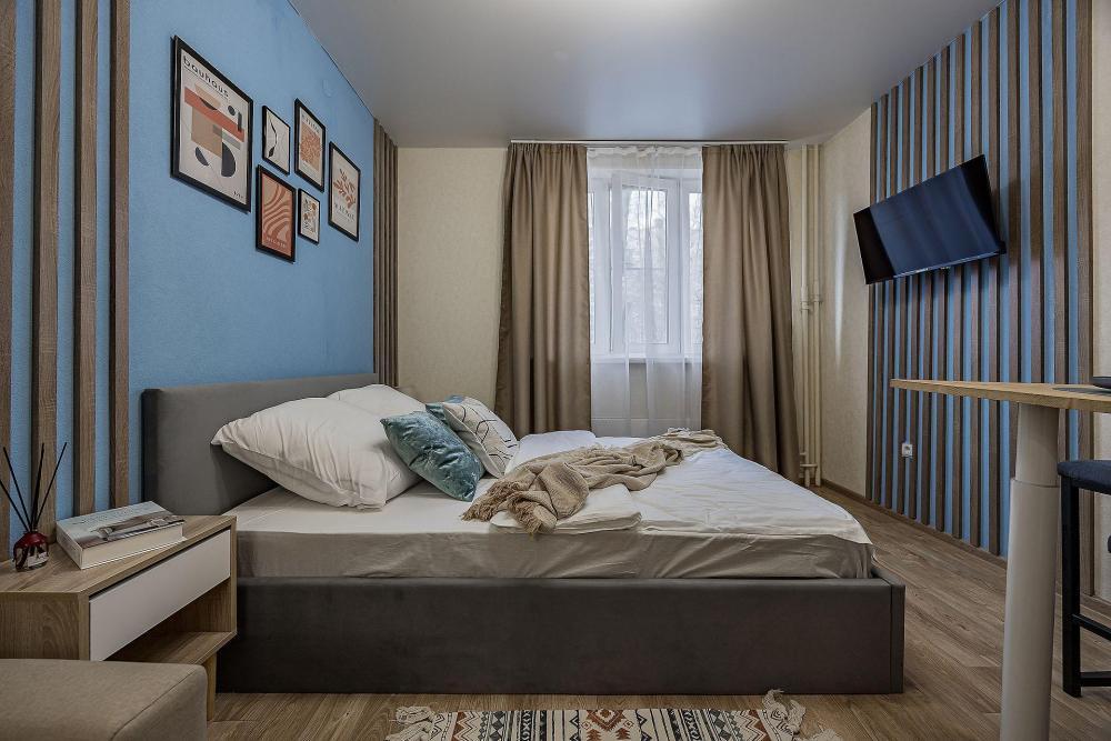 В апартаментах имеется все необходимое для комфортного проживания : кровать 160х200, широкое кресло-кровать, полноценно укомплектованная кухня: плита, чайник, микроволновая печь, духовка, холодильник, посуда и столовые приборы; стабильный wi-fi, стиральная машина, сушилка для белья, отпариватель, фен для волос, а также одноразовые тапочки и зубные наборы; Wеlсоmе-набор: чай, сахар, соль-перец, растительное масло.