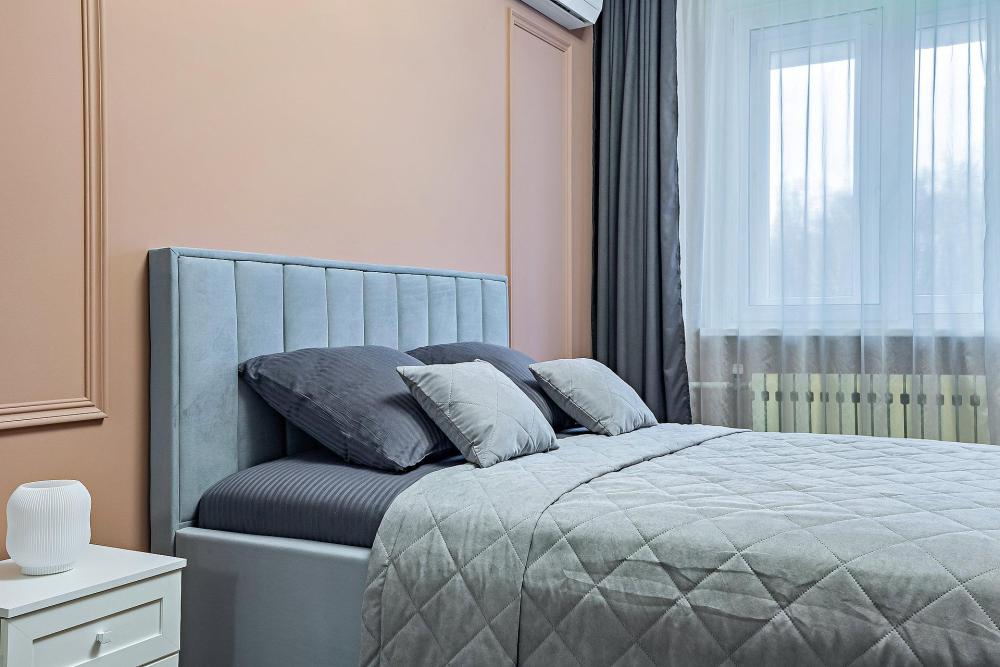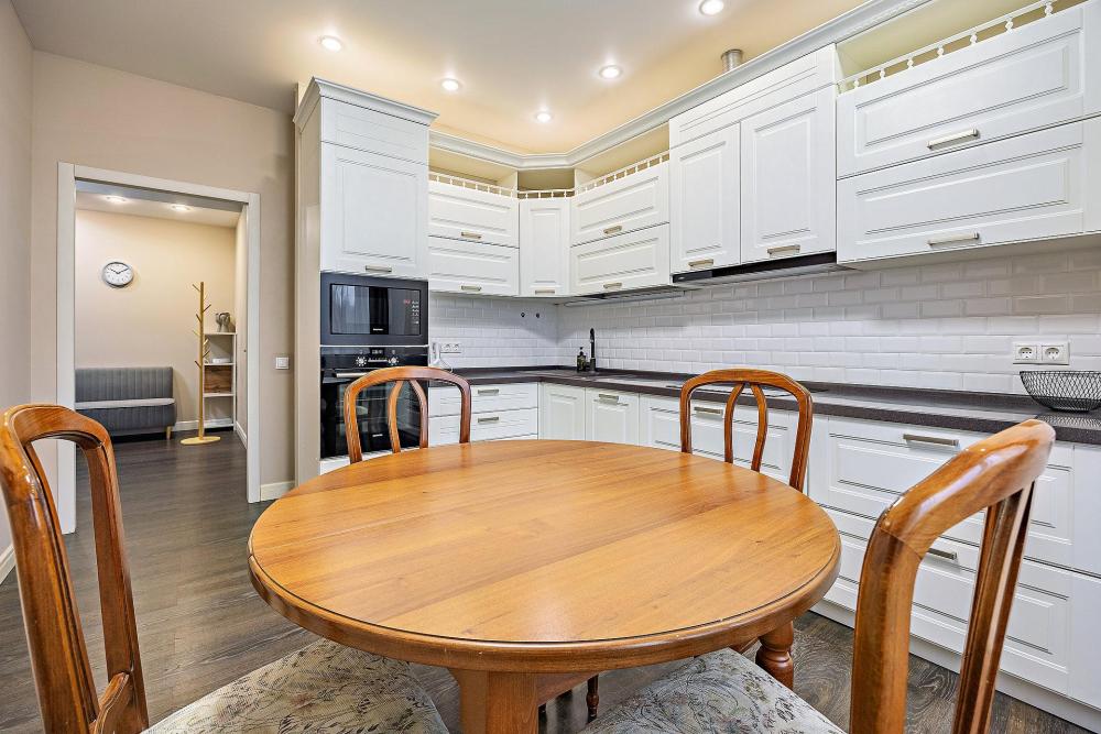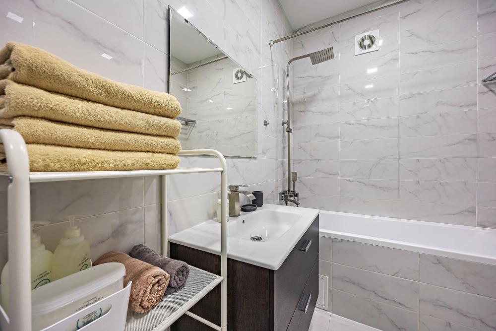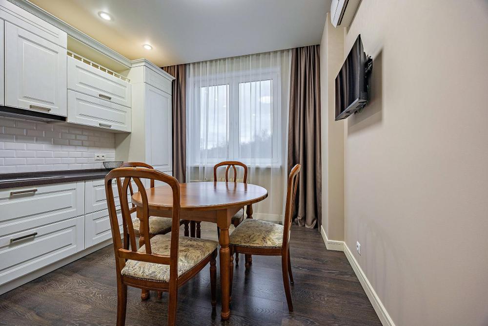 О КВАРТИРЕ: • Комнат: 2 (раздельные) • Вмещает гостей: 4 • Ванная и туалет: совмещенные • Площадь: 75 м2 • Высота потолков: 2,7 м • Этаж: 5 из 18 • Лифт: да • Балкон: застекленная панорамная лоджия • Вид из окон: на улицу, на парк СПАЛЬНЫЕ МЕСТА: • 2+2 • Двуспальная кровать 160/200 с жестким матрасом • Двуспальный диван 140/300 с механизмом раскладывания: еврокнижка О ДОМЕ: • ЖК: Хороши хоромы • Год постройки: 2007 • Тип дома: монолитный • Лифты: 1 пасс., 1 груз. • Отопление: центральное • Газоснабжение: отсутствует • Парковка: наземная у дома открытая общая • Двор: закрыт шлагбаумами (заезд не предоставляется) "Сутки-Дом - Студёная" – просторная двухкомнатная квартира с видом на город и парк в ЖК «Хороши хоромы». Комплекс располагается в центре города в современном квартале, прилегающем к главной транспортной артерии центра города - улице Белинского Для вас современное жилье с уютным интерьером и очень богатым оснащением для максимального комфорта. В квартире установлена качественная мебель и дорогая импортная бытовая техника, 3 телевизора и 2 кондиционера. В квартире высокие потолки, две большие раздельные комнаты, хорошо оснащенная кухня с большим столом, просторный совмещенный санузел и больная прихожая В спальной комнате размещена большая двуспальная кровать и кресло-качалка с журнальным столиком. Установлен кондиционер и Smart TV напротив кровати. Комната имеет выход на отделанную лоджию с панорамным остеклением, мебелью для отдыха и своим освещением. Встроен очень большой гардеробный шкаф с множеством полок и ящиков. Для вечернего и ночного времени предусмотрены ночники на прикроватных тумбочках и плотные шторы от уличного света В зале установлен современный большой диван с простой системой раскладывания «Еврокнижка». Диван имеет текстильную обивку и ровную поверхность в разложенном состоянии с оптимальной упругостью, что гарантирует на нем комфортный ежедневный сон. Напротив дивана на стене большой Smart TV. Для работы имеется просторный письменный стол с лампой и комфортным мягким стулом. На окнах плотные шторы и москитные сетки в летний период Кухня имеет очень богатое оснащение. Качественный кухонный гарнитур со встроенной техникой: микроволновая печь, духовой шкаф, посудомоечная машина, индукционная плита, вытяжка, холодильник с морозильной камерой. Имеется вся посуда и кухонная утварь для приготовления и приема пищи. В наличии электрический чайник. Установлен большой обеденный стол из натурального дерева с возможностью раскладывания. На кухне имеется свой Smart TV и кондиционер. Есть возможность выбора варианта подсветки помещения: центральная люстра, споты, светильник над рабочей зоной и мойкой и освещение в вытяжке В санузле установлена ванна с тропическим душем, объемный бойлер на случай отключения горячей воды, регулируемый полотенцесушитель, вместительная стиральная машина и принудительная вытяжка. Подвешено дополнительное зеркало на стене во весь рост. Продуманы места для размещения вещей и достаточное количество крючков для полотенец. В наличии фен, гигиенические средства и набор свежих полотенец Окна квартиры выходят на спокойный проезд и зону парковки возле дома. Прямой вид из окон на парк и боковой на улицу Белинского. Над парком видна телевизионная вышка, которая имеет красивую подсветку в вечернее время Око
