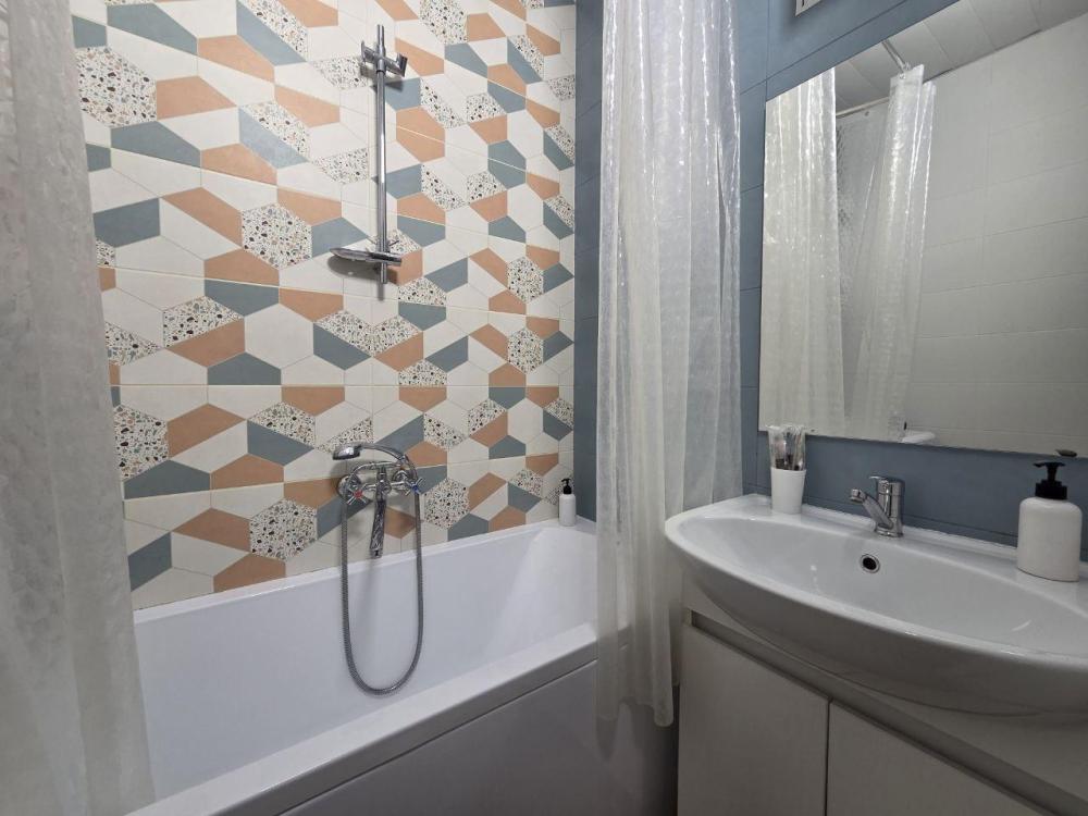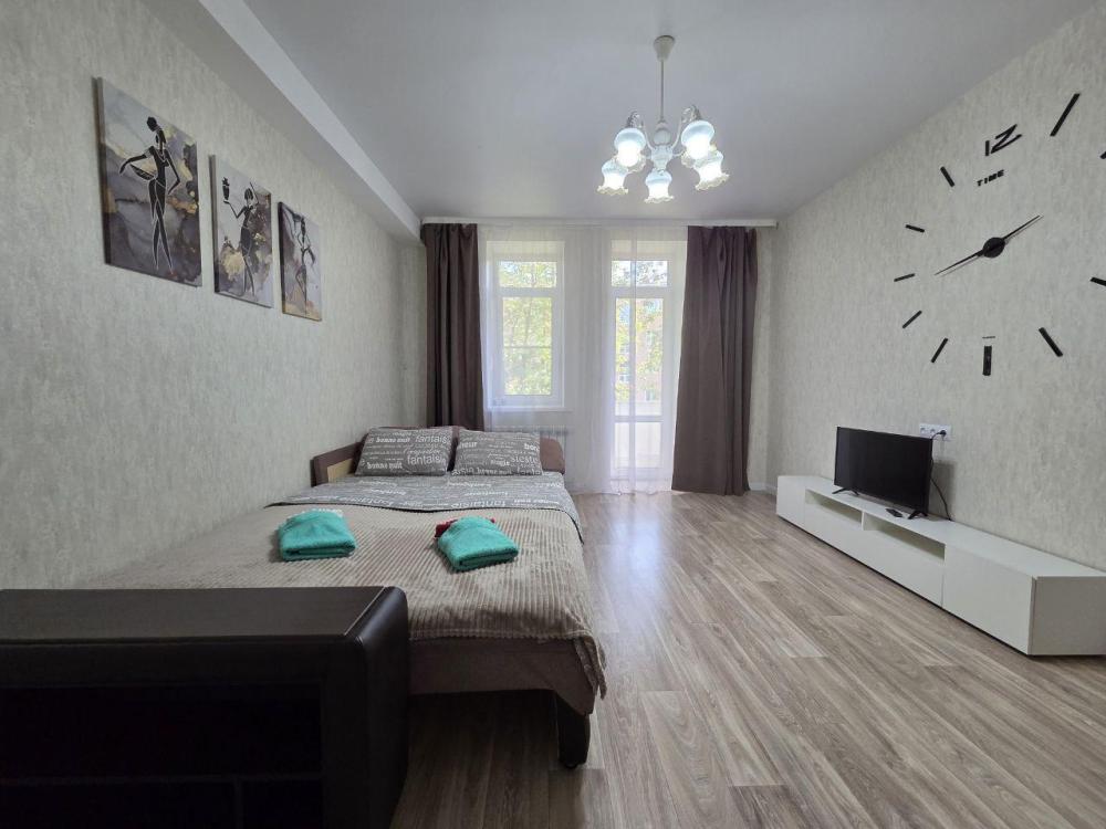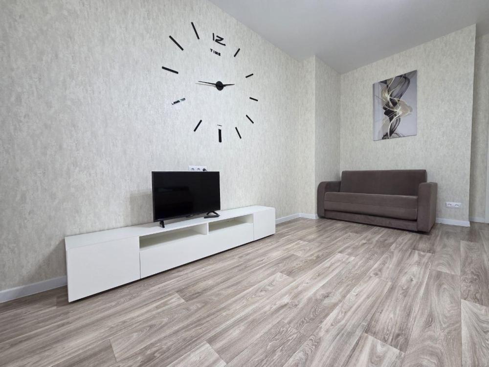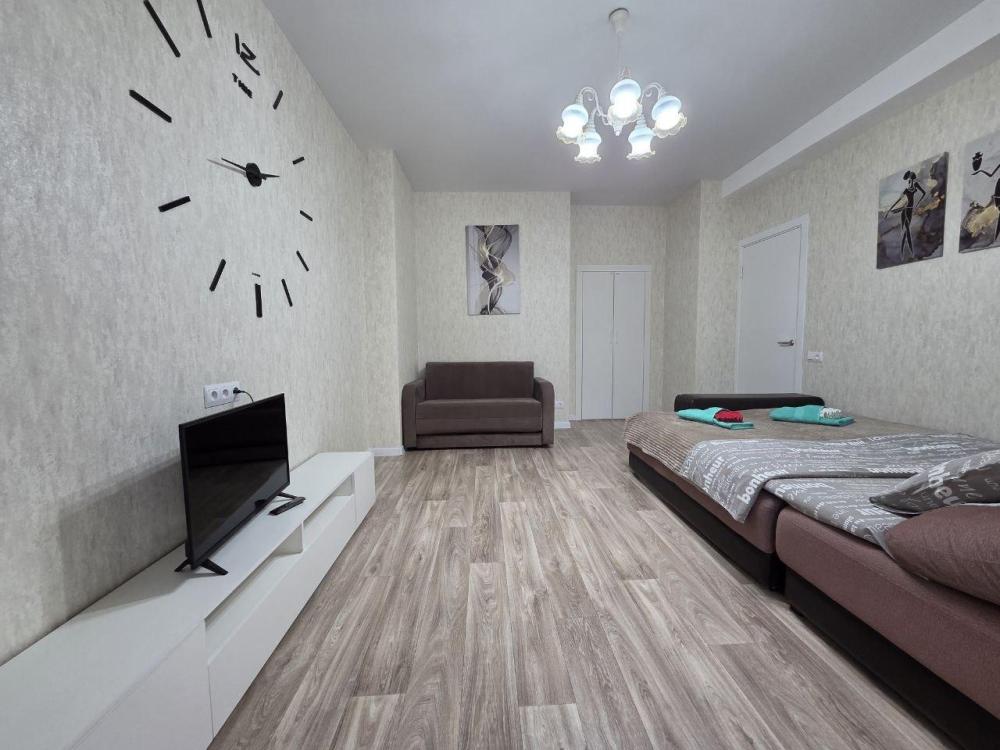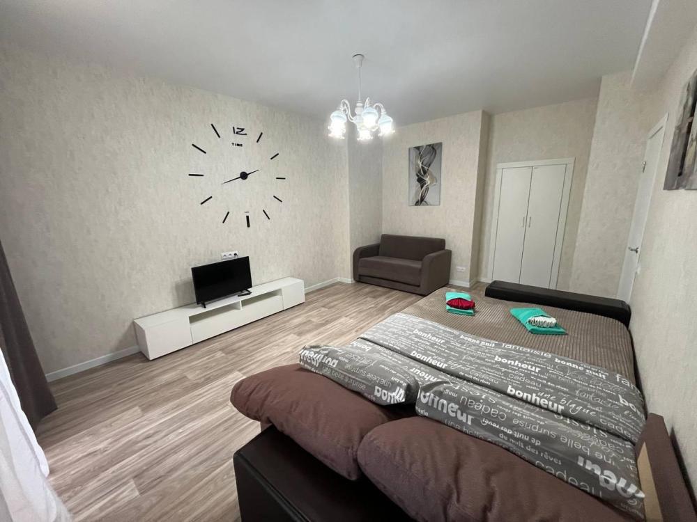 В квартире имеется все для комфортабельного размещения. В комнате стоят большой удобный двуспальный диван с мягкими матрасом и множеством удобных подушек и удобное кресло-кровать. Установлен телевизор с большим экраном и подключенным кабельным телевидением, во всех комнатах ловит бесплатный Wi-Fi. В уборной есть современная ванна, гигиенический душ, фен для сушки волос. Для каждого гостя предоставляются наборы полотенец, гигиенические средства.