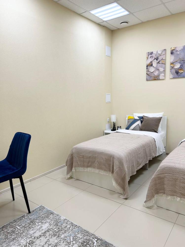 Номер подходит для комфортного двухместного размещения. Интерьер номера сделает ваше пребывание по-настоящему особенным. Нейтральные цвета создают атмосферу спокойствия и гармонии, помогая расслабиться и забыть о городской суете. Номер оснащен мини-холодильником, телевизором и микроволновой печью. Отдельная ванная комната, в которой Вы найдете индивидуальный комплект полотенец и средств личной гигиены.