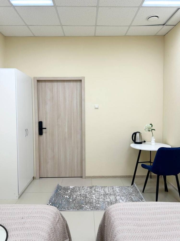 Если вы планируете посетить наш город, то рекомендуем Вам остановиться в светлом и просторном двухместном номере. Интерьер выполнен в современном стиле, создает атмосферу уюта и способствует полноценному отдыху. Номер оборудован прикроватными тумбочками, комодом, шкафом для одежды, небольшим столиком и зеркалом. Дополнительно установлены обогреватель и электрический чайник. Мы предоставляем комплект полотенец и одноразовых тапочек на каждого гостя. На этаже расположены две общие душевые с туалетом. Будем ждать Вас снова!