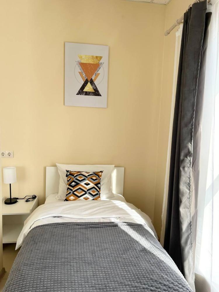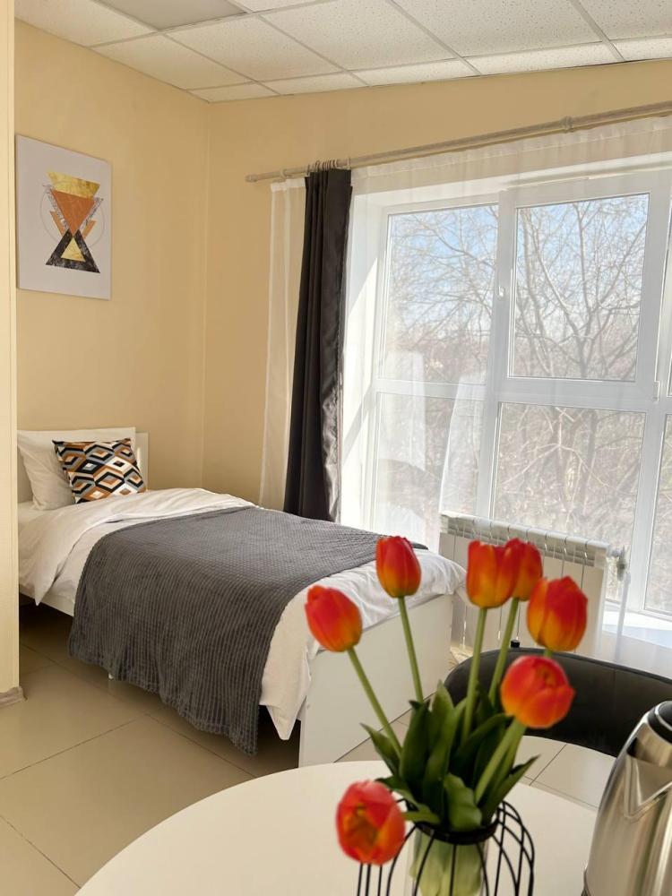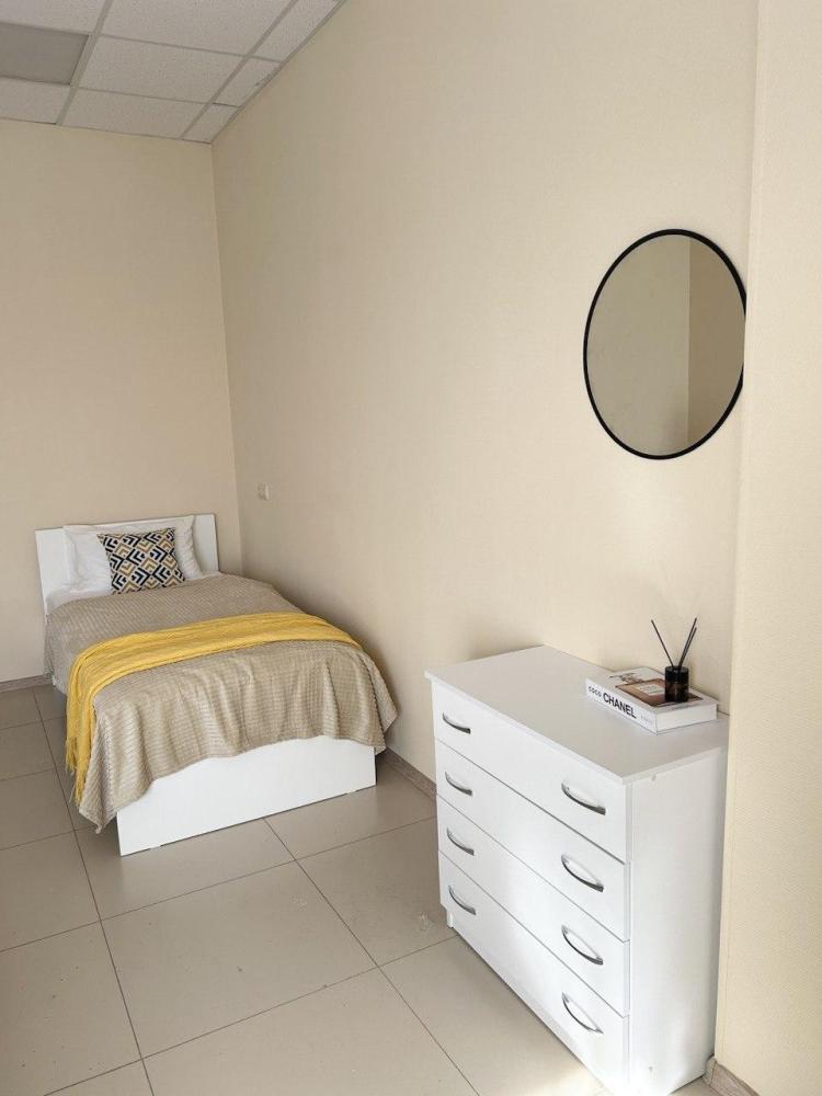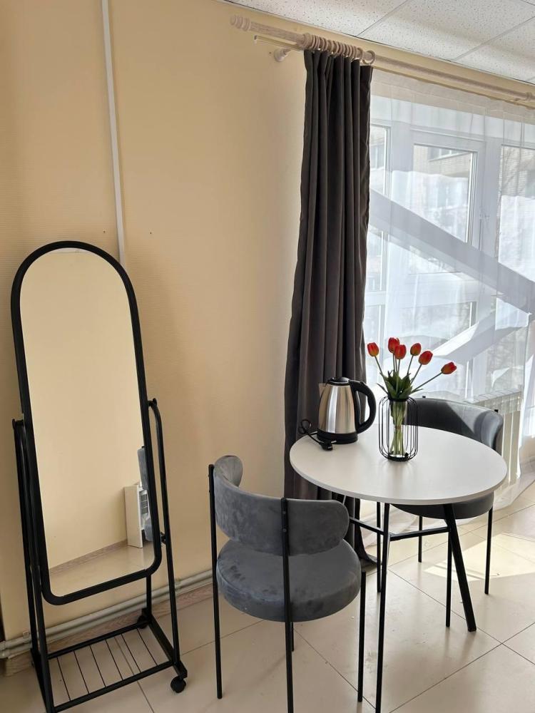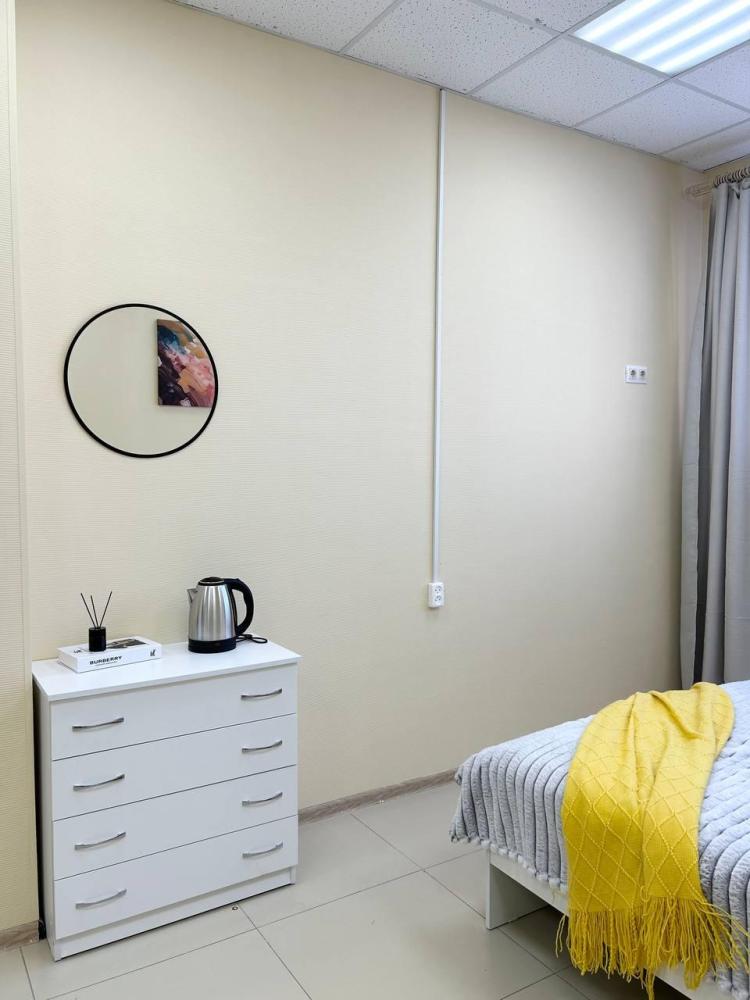 Небольшой уютный номер отлично подойдет Вам, если Вы в командировке или проездом в нашем городе. Пастельные цвета в оформлении создают благоприятную среду для отдыха или продуктивной работы. Номер оборудован обогревателем и электрическим чайником, а для общего комфорта предусмотрен комплект одноразовых тапочек и набор махровых полотенец. На этаже расположены две общие душевые с туалетом. Будем ждать Вас снова!