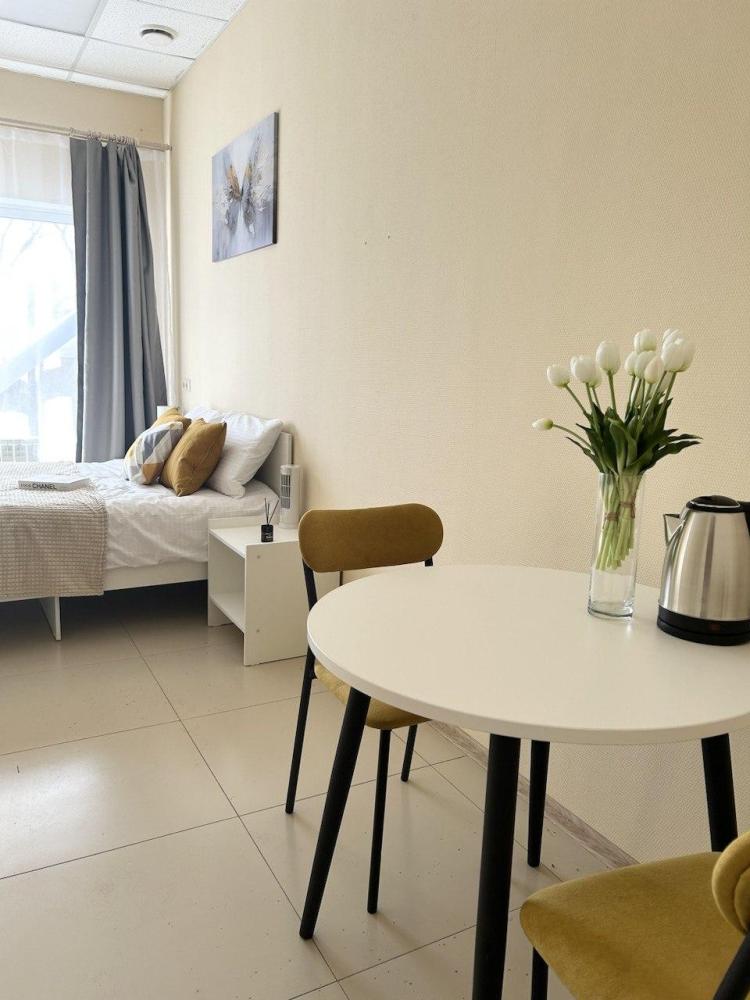 Интерьер, выполненный в современном стиле, создает комфортную атмосферу для проживания, отдыха или продуктивной работы. Спальное место оборудовано ортопедическим матрасом. Дополнительно номер оснащен мини-холодильником, микроволновой печью и электрическим чайником. Отдельная ванная комната, в которой Вы найдете индивидуальный комплект полотенец и средств личной гигиены.