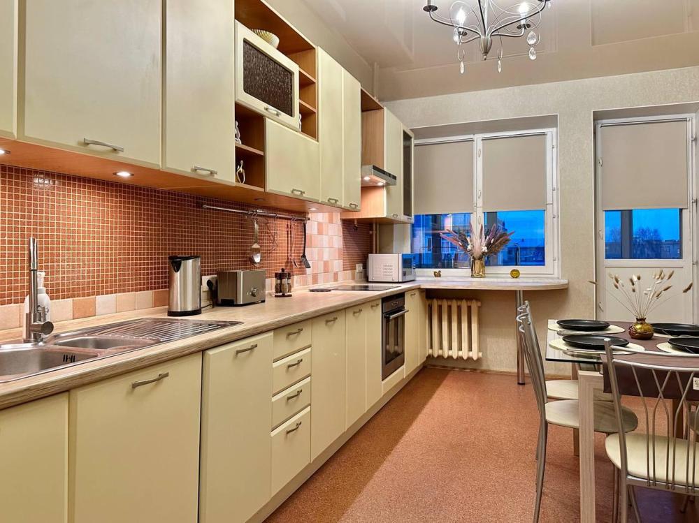 ДзенХоум «Рассвет» – очень просторная (более 100м2) трехкомнатная квартира с большой гостиной, 2-мя изолированными спальнями и отдельной вместительной кухней в самом центре Нижнего Новгорода на улице Обозной. Квартира расположена на 5 этаже современного кирпичного дома интересной планировки, благодаря которой вы непременно отметите красивые мансардные окна, которые нечасто можно встретить в архитектуре Нижнего Новгорода. За счет большой площади и функциональности (в квартире имеется две лоджии, одна с системой хранения вещей, вторая лоджия оборудована под рабочий кабинет) – ДзенХоум Рассвет идеально подходит как для бизнес туристов и командировочных сотрудников, так и для теплых встреч с друзьями и близкими. Предусмотрено абсолютно всё самое необходимое для проживания гостей: 2 двуспальных кровати, 1 двуспальный диван-кровать, высокоскоростной wi-fi, 2 ТВ: один в гостиной и один в спальне, плита, чайник, духовка, микроволновая печь, холодильник, посудомоечная машина, посуда и столовые приборы, кондиционеры, всегда свежее постельное бельё и полотенца из прачечной, фен для волос, сушилка для белья, гладильная доска, утюг, стиральная машина и порошок для стирки, шампунь, гель для душа и туалетные принадлежности.
