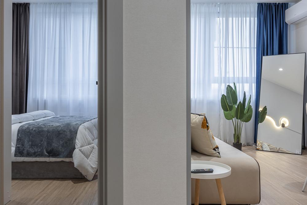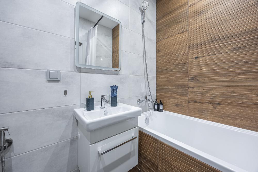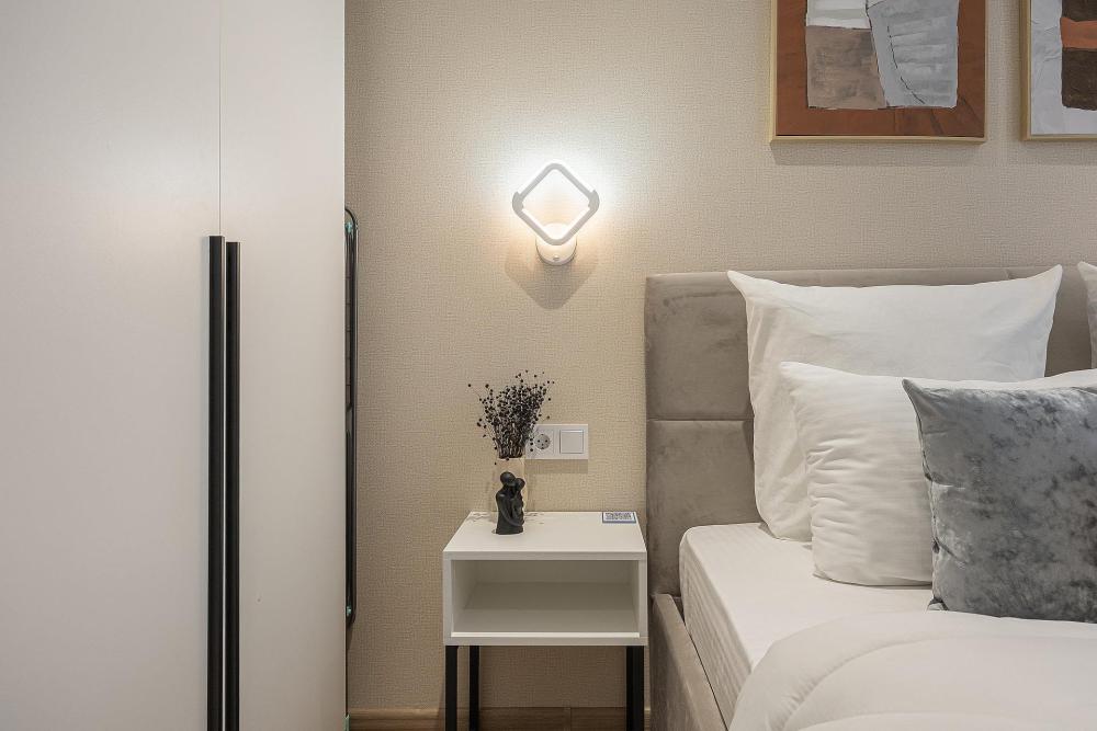 Квартира расположена в живописном районе рядом с благоустроенным парком «Швейцария» и аквапарком «Океанис».