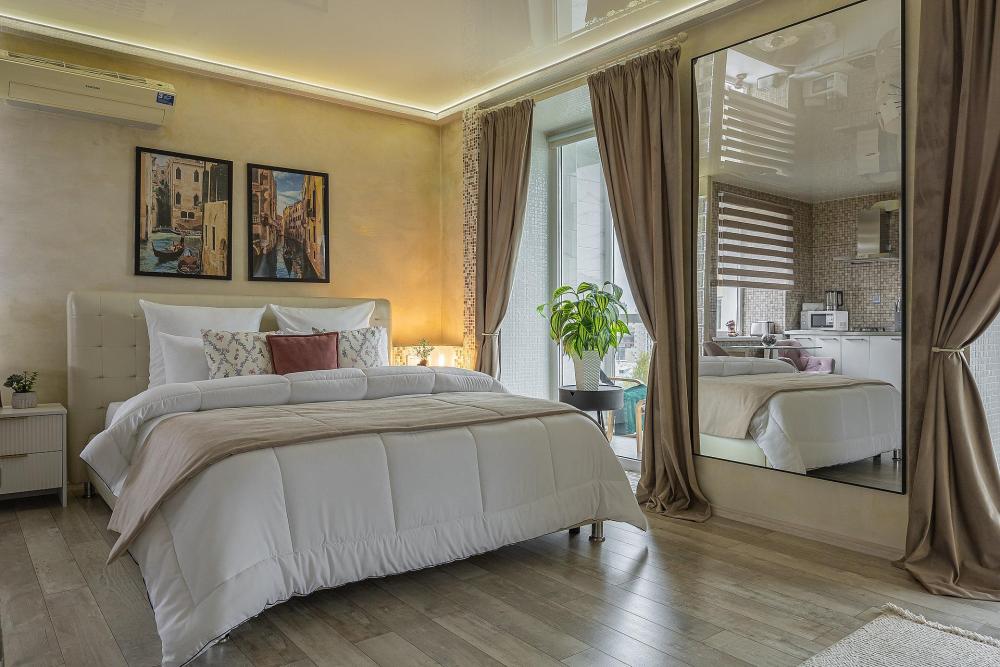 Квартира находится рядом с парком им.Кулибина. Пешком можно дойти до Кремля и Большой Покровской улицы, что делает это место идеальным для прогулок и знакомства с историческими достопримечательностями. В непосредственной близости расположены магазины, кафе и рестораны, что делает ваше пребывание еще более комфортным. Около дома всегда есть парковочные места, что обеспечит вам удобное размещение вашего автомобиля. Квартира-студия площадью 38 м² на 7 этаже в античном доме. Идеально подходит для пары или друзей, семьи из 4 человек, командированных, или туристов приехавших небольшой компании желающих насладиться комфортом. Квартира рассчитана на 4 человек, оборудована одной комфортной двуспальной кроватью (160x200 см) с удобным матрацем, и двуспальным диваном (140x200 см) обеспечивающим качественный и здоровый сон. Кондиционер для комфортного проживания в любое время года Скоростной Wi-Fi для работы и развлечений Smart TV с доступом к любимым фильмам и сериалам. Полностью оборудованная кухня (холодильник, плита, чайник, посуда). Стиральная машина. Опрятная ванная комната с мягкими полотенцами и феном. Гигиенические наборы: мыло, шампунь, гель для душа, ватные палочки, ватные диски, прокладки, зубные щетки. Продуктовый набор: подсолнечное масло, соль, сахар, чай, кофе и конфеты. Постельное бельё из натуральных тканей.