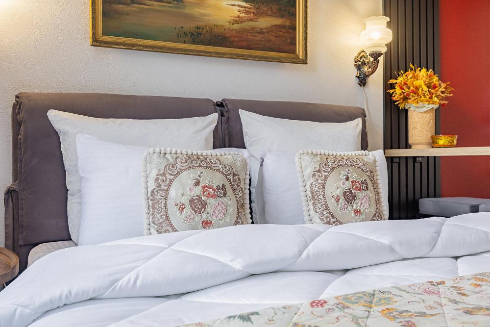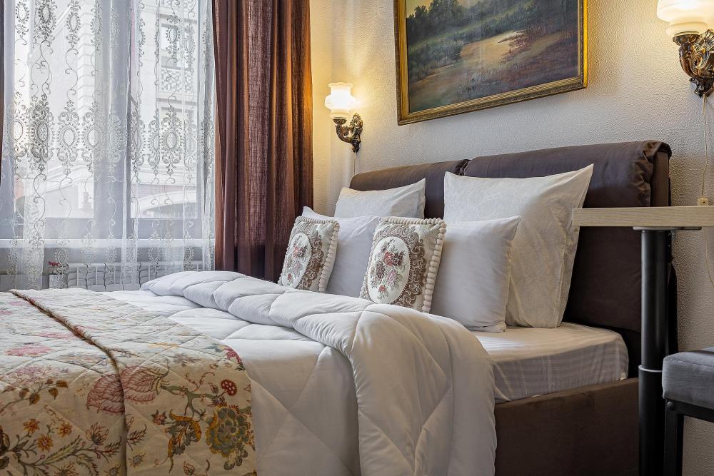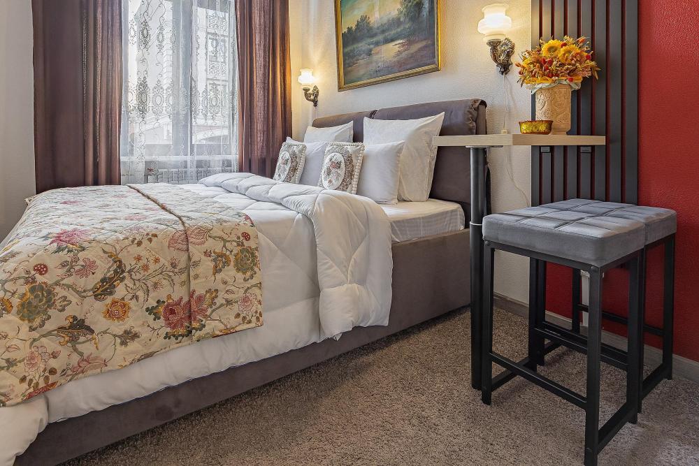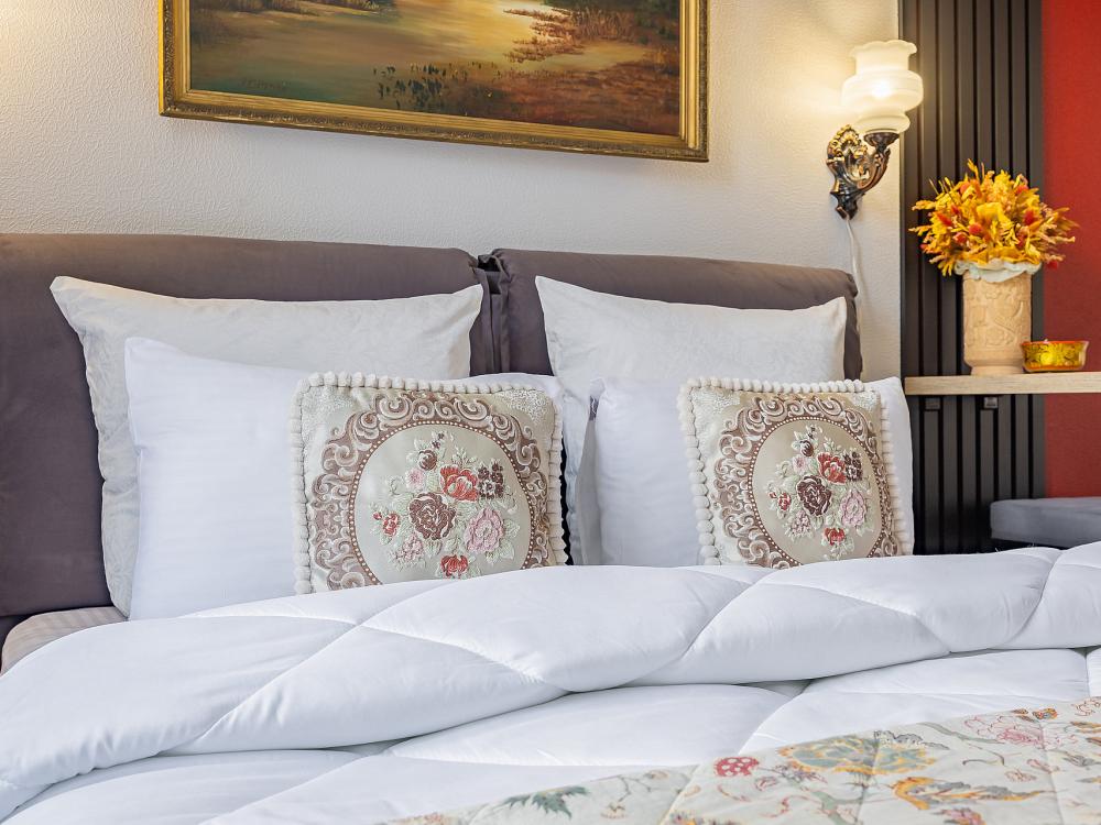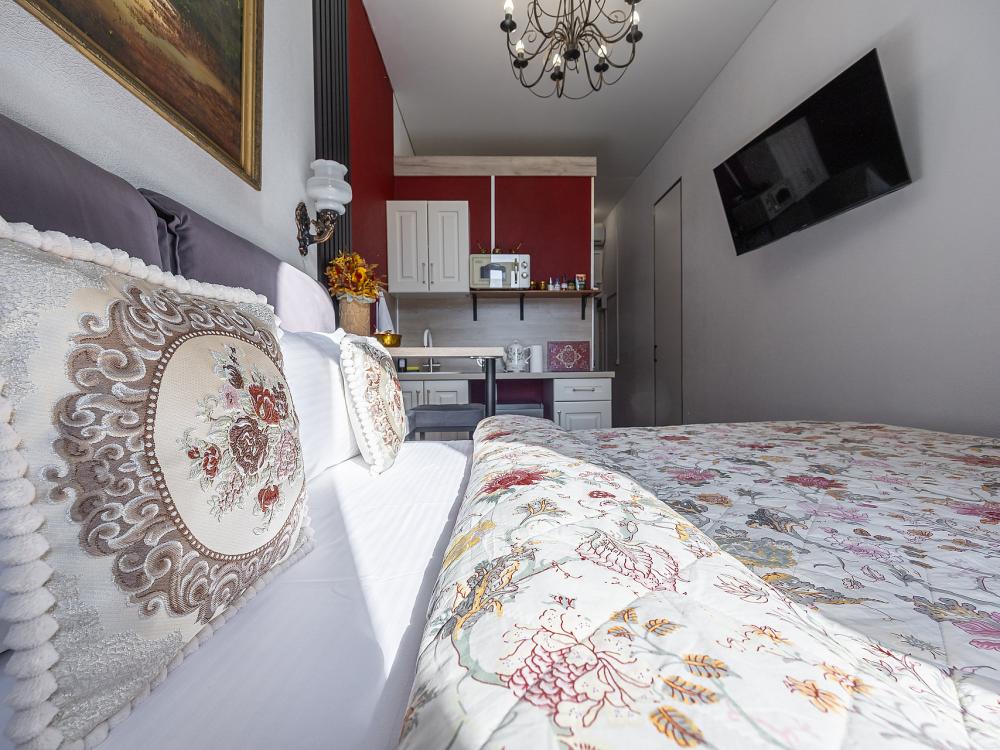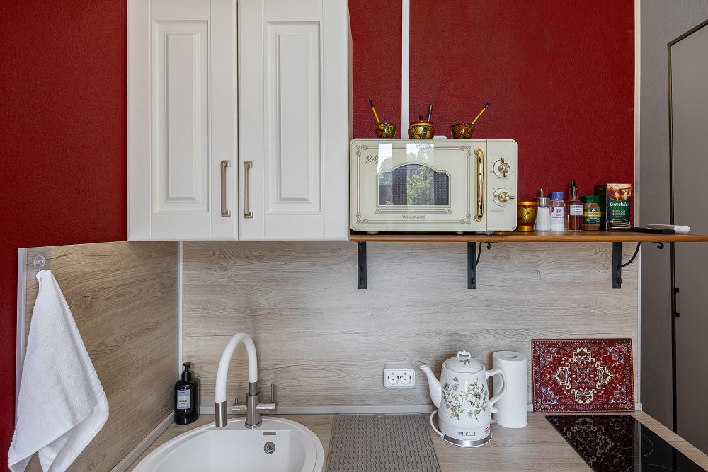 Уютная квартира-студия площадью 20 м² на 2 этаже. Идеально подходит для семьи из 2 человек, командированных или туристов. Спальные места: двуспальная кровать (160×200 см, ортопедический матрас). Спальные комплекты: На кровать идет следующий комплект: 2 подушки; 2 наволочки; двуспальное одеяло; пододеяльник; простынь. Удобства: кондиционер обеспечит комфортом в летний период; парковка во дворе дома за шлагбаумом; скоростной Wi-Fi для работы и развлечений; полностью оборудованная кухня (холодильник, плита, СВЧ-печь, чайник, набор посуды); стиральная машина; просторная ванная комната с удобной ванной, комплектом мягких полотенец и феном; гигиенические наборы: мыло, шампунь, гель для душа, ватные палочки, ватные диски, прокладки, зубные щетки; комплимент для гостей: чай, кофе, соль, сахар, конфеты и подсолнечное масло; постельное бельё из натуральных тканей; дополнительно можем предоставить детский стульчик и раскладушку.