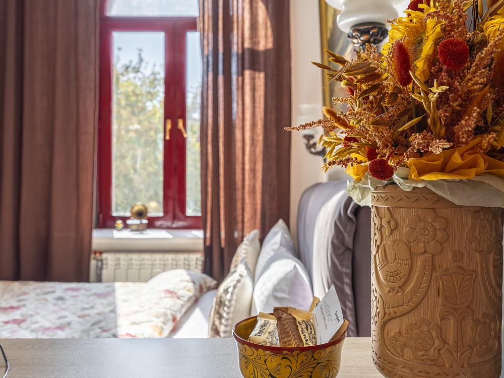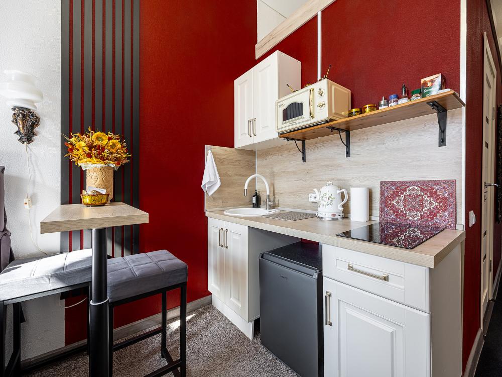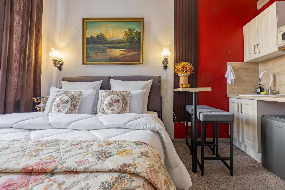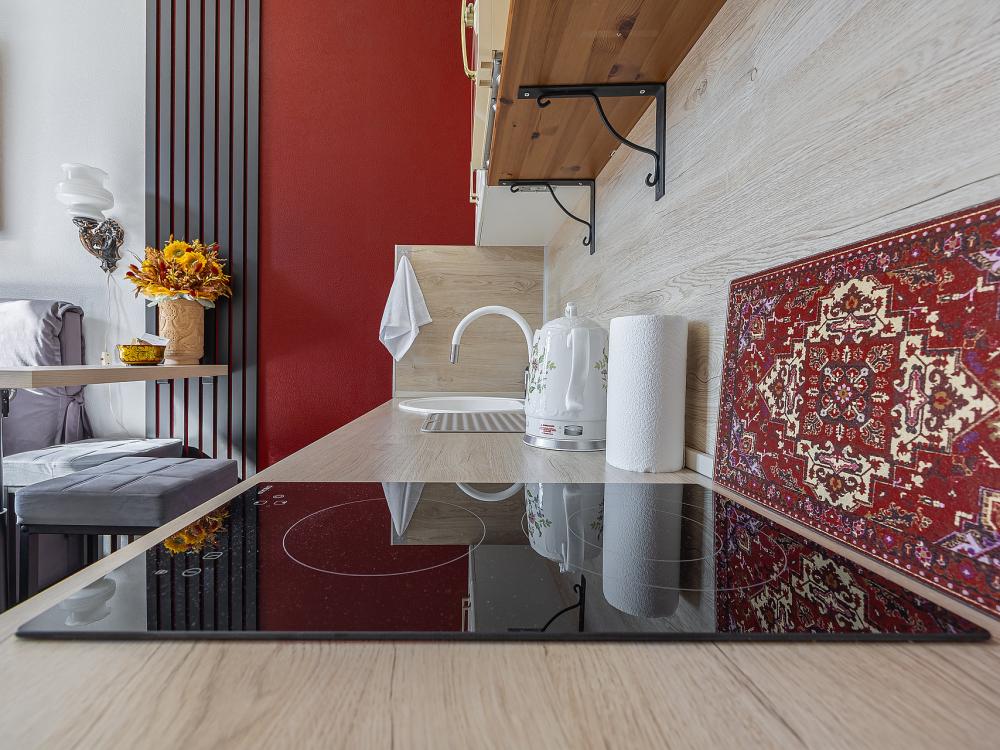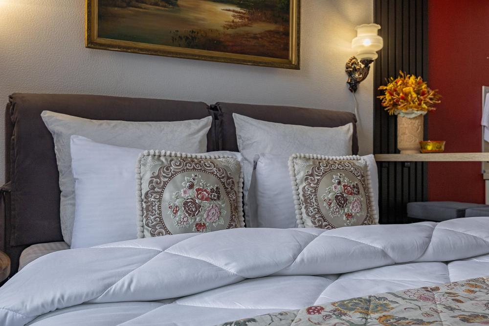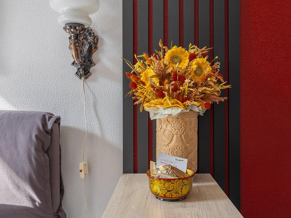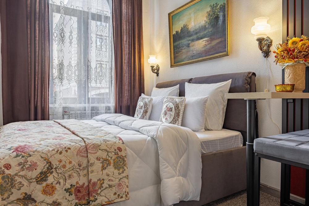 Уютная квартира-студия площадью 20 м² на 2 этаже. Идеально подходит для семьи из 2 человек, командированных или туристов. Спальные места: двуспальная кровать (160×200 см, ортопедический матрас). Спальные комплекты: На кровать идет следующий комплект: 2 подушки; 2 наволочки; двуспальное одеяло; пододеяльник; простынь. Удобства: кондиционер обеспечит комфортом в летний период; парковка во дворе дома за шлагбаумом; скоростной Wi-Fi для работы и развлечений; полностью оборудованная кухня (холодильник, плита, СВЧ-печь, чайник, набор посуды); стиральная машина; просторная ванная комната с удобной ванной, комплектом мягких полотенец и феном; гигиенические наборы: мыло, шампунь, гель для душа, ватные палочки, ватные диски, прокладки, зубные щетки; комплимент для гостей: чай, кофе, соль, сахар, конфеты и подсолнечное масло; постельное бельё из натуральных тканей; дополнительно можем предоставить детский стульчик и раскладушку.
