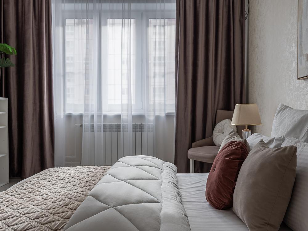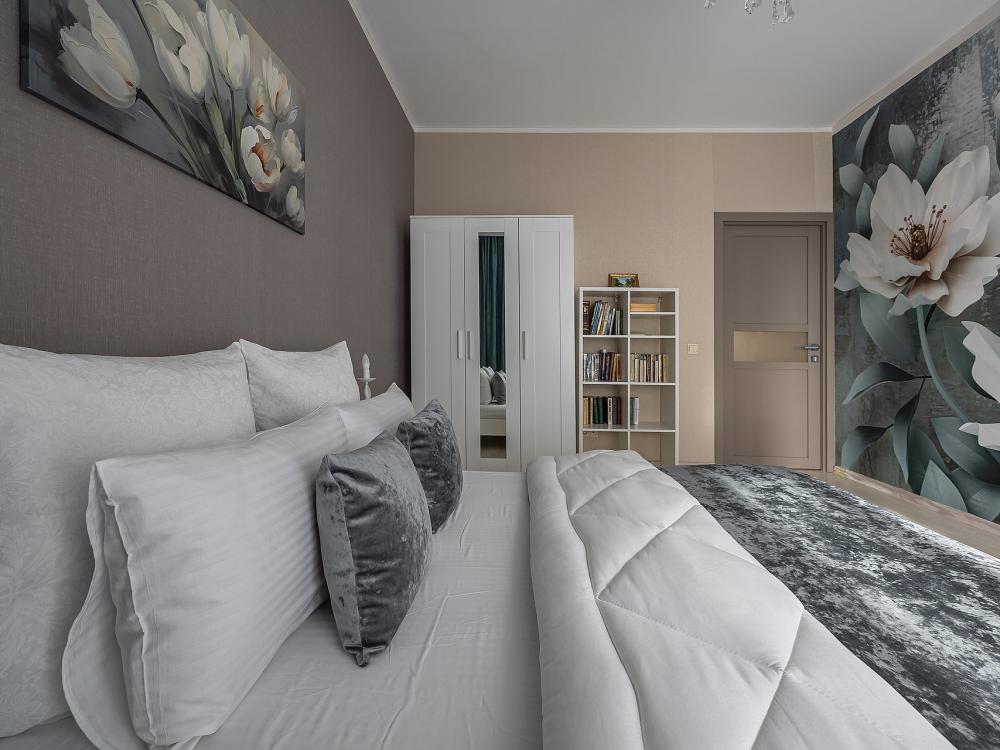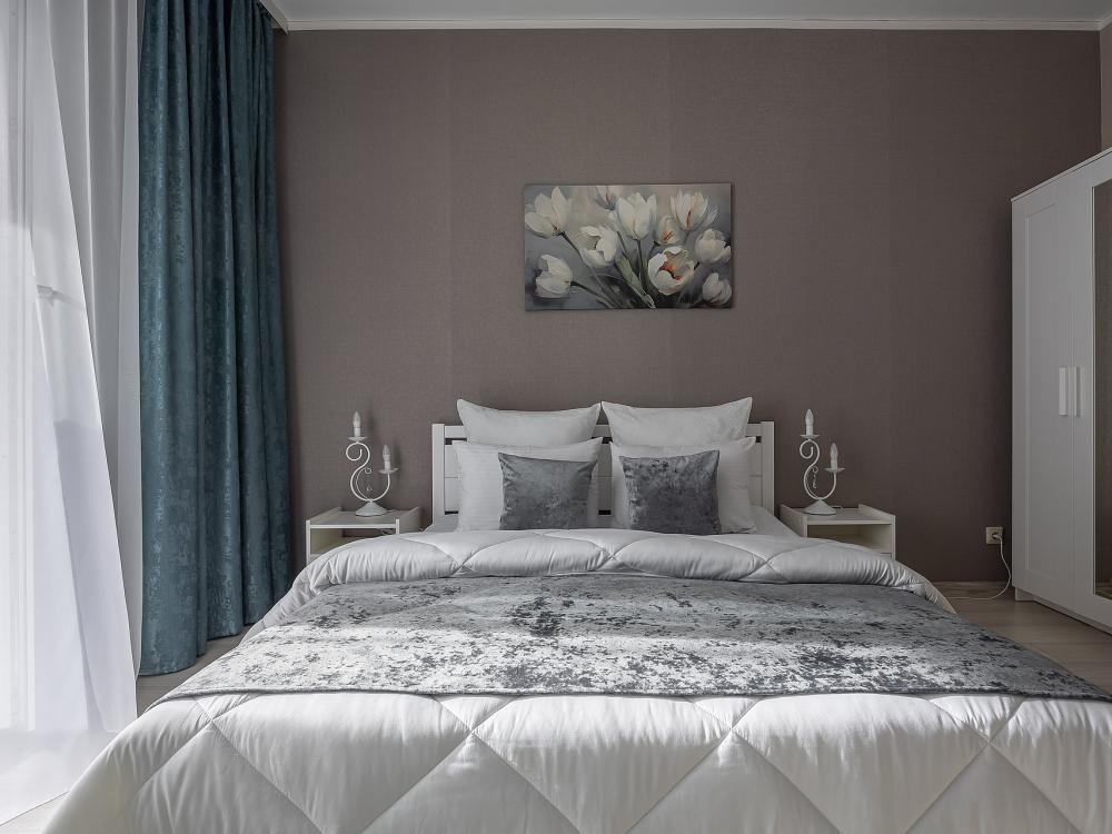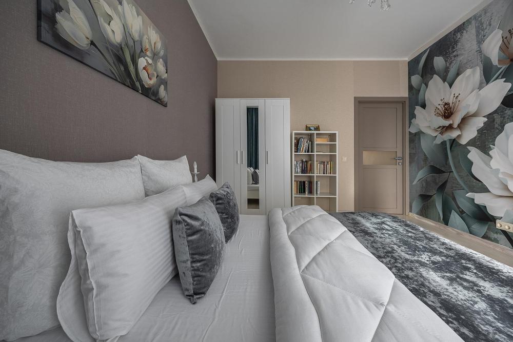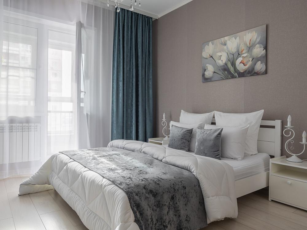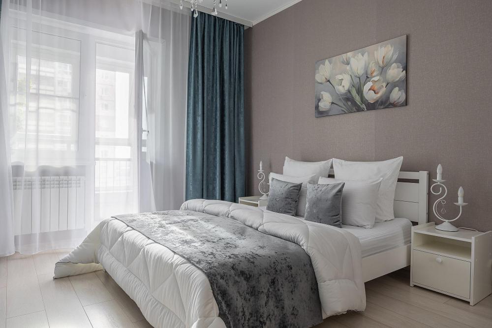 Уютная 2-комнатная квартира площадью 62 м² на 9 этаже. Идеально подходит для семьи из 6 человек, командированных, или туристов приехавших небольшой компании желающих насладиться комфортом. Спальные места: две двуспальные кровати (160×200 см, ортопедический матрас), двуспальный диван (160×200 см). Спальные комплекты: 2 подушки, 2 наволочки, двуспальное одеяло, пододеяльник, простынь. Общественная парковка около дома; скоростной Wi-Fi для работы и развлечений; полностью оборудованная кухня (холодильник, плита, СВЧ-печь, чайник, набор посуды); стиральная машина. Просторная ванная комната с удобной ванной, комплектом мягких полотенец и феном; гигиенические наборы: мыло, шампунь, гель для душа, ватные палочки, ватные диски, прокладки, зубные щетки; комплимент для гостей: чай, кофе, соль, сахар, конфеты и подсолнечное масло; постельное бельё из натуральных тканей.