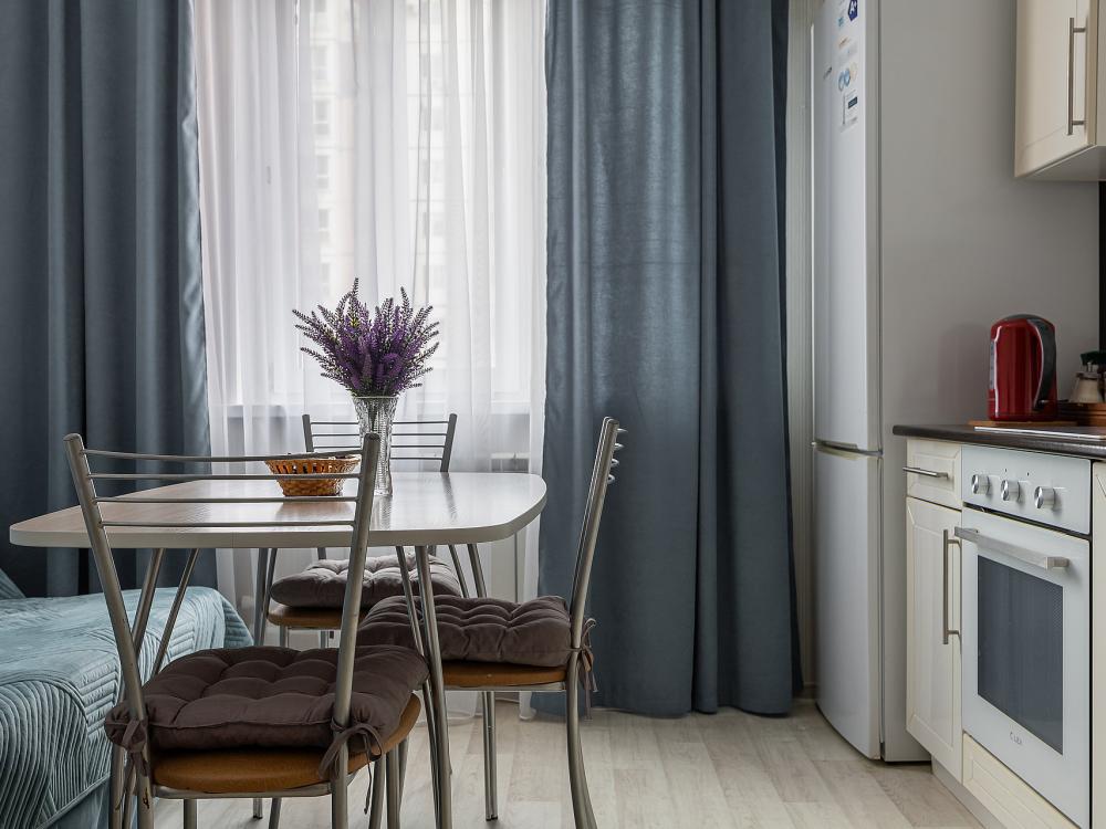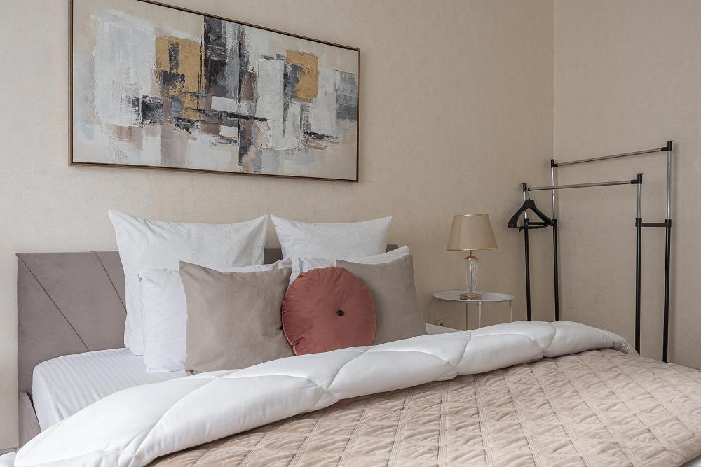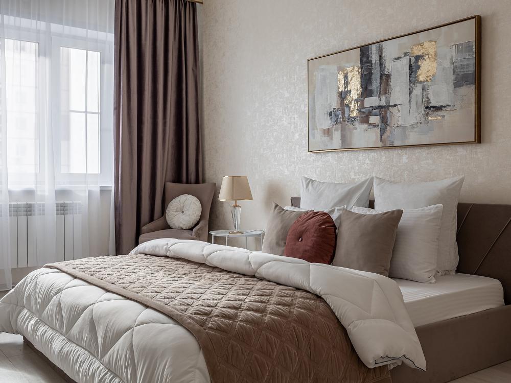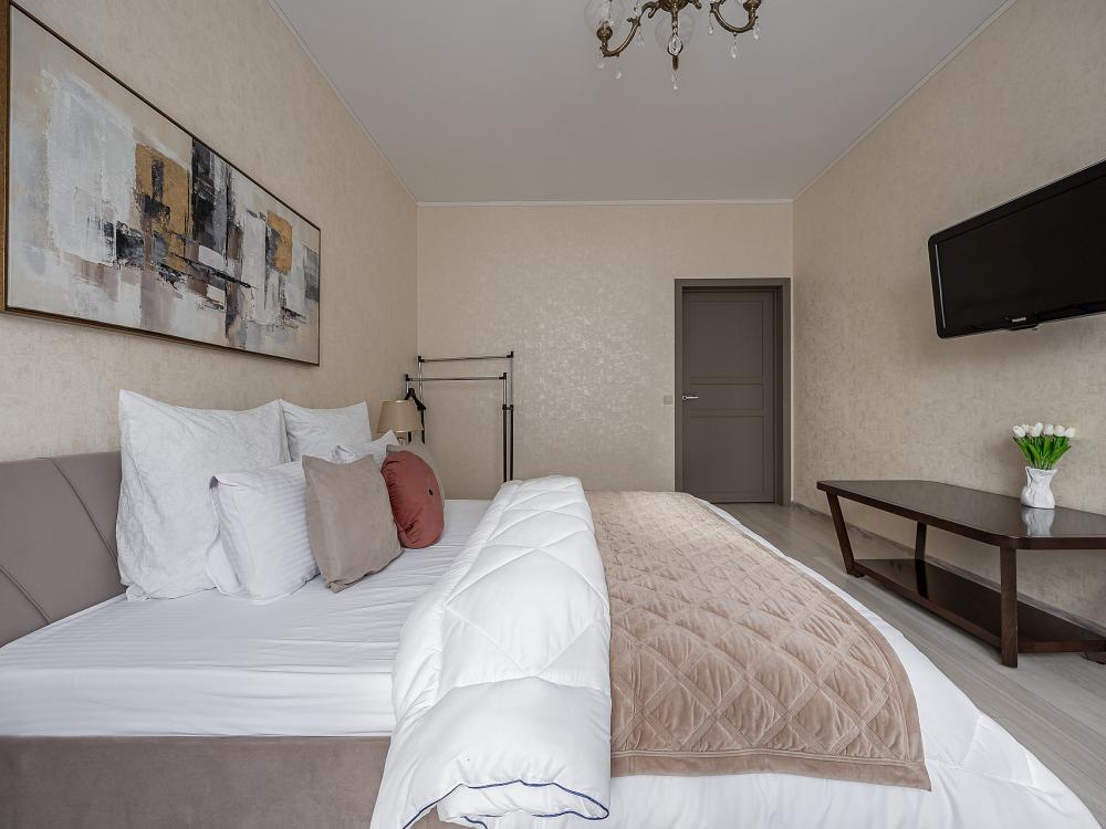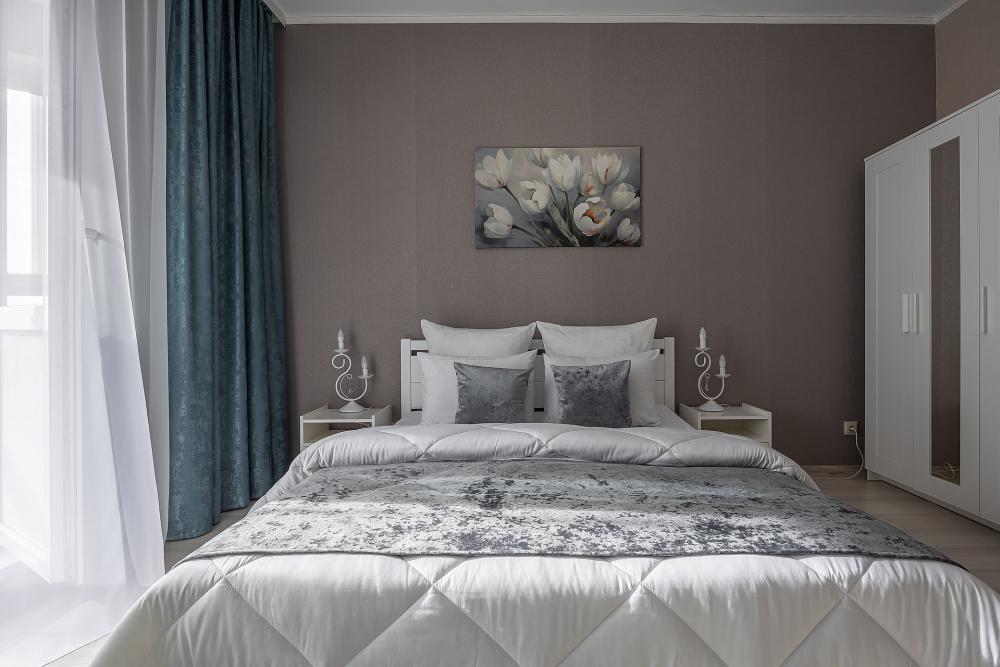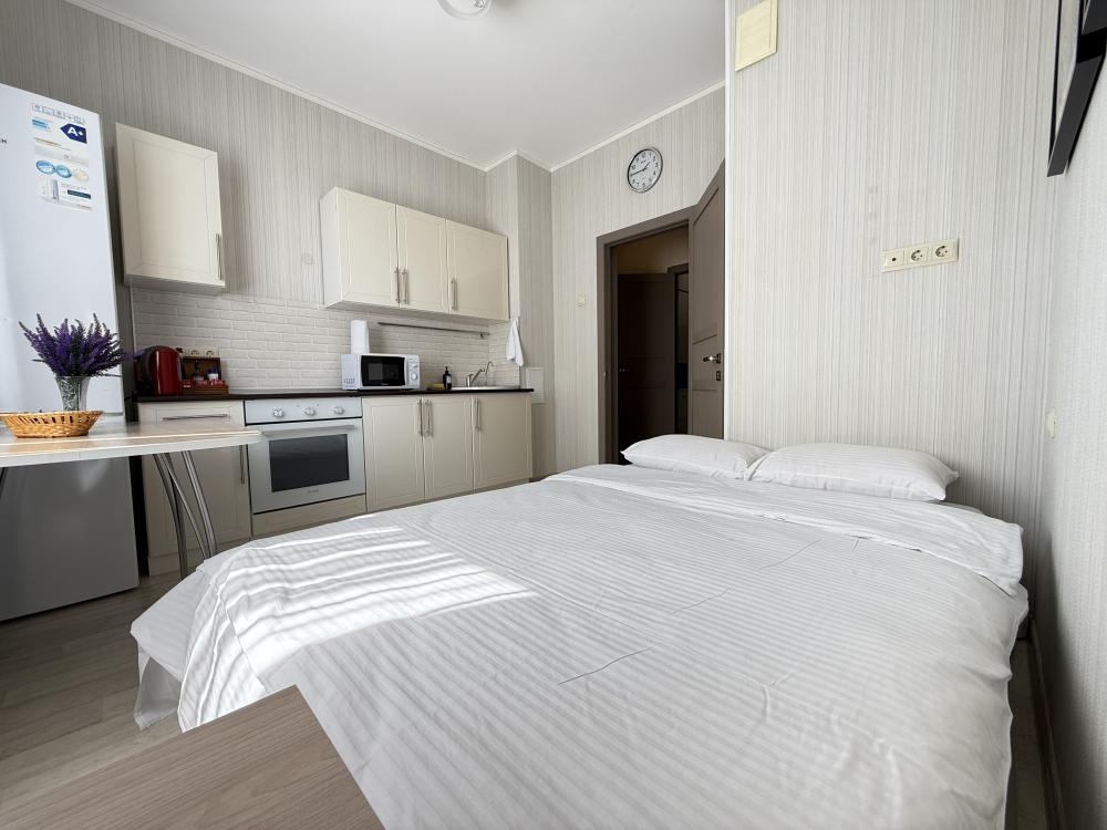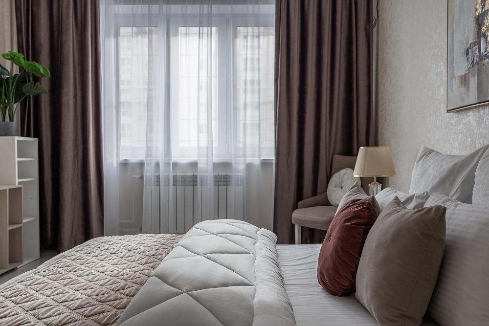 Уютная 2-комнатная квартира площадью 62 м² на 9 этаже. Идеально подходит для семьи из 6 человек, командированных, или туристов приехавших небольшой компании желающих насладиться комфортом. Спальные места: две двуспальные кровати (160×200 см, ортопедический матрас), двуспальный диван (160×200 см). Спальные комплекты: 2 подушки, 2 наволочки, двуспальное одеяло, пододеяльник, простынь. Общественная парковка около дома; скоростной Wi-Fi для работы и развлечений; полностью оборудованная кухня (холодильник, плита, СВЧ-печь, чайник, набор посуды); стиральная машина. Просторная ванная комната с удобной ванной, комплектом мягких полотенец и феном; гигиенические наборы: мыло, шампунь, гель для душа, ватные палочки, ватные диски, прокладки, зубные щетки; комплимент для гостей: чай, кофе, соль, сахар, конфеты и подсолнечное масло; постельное бельё из натуральных тканей.
