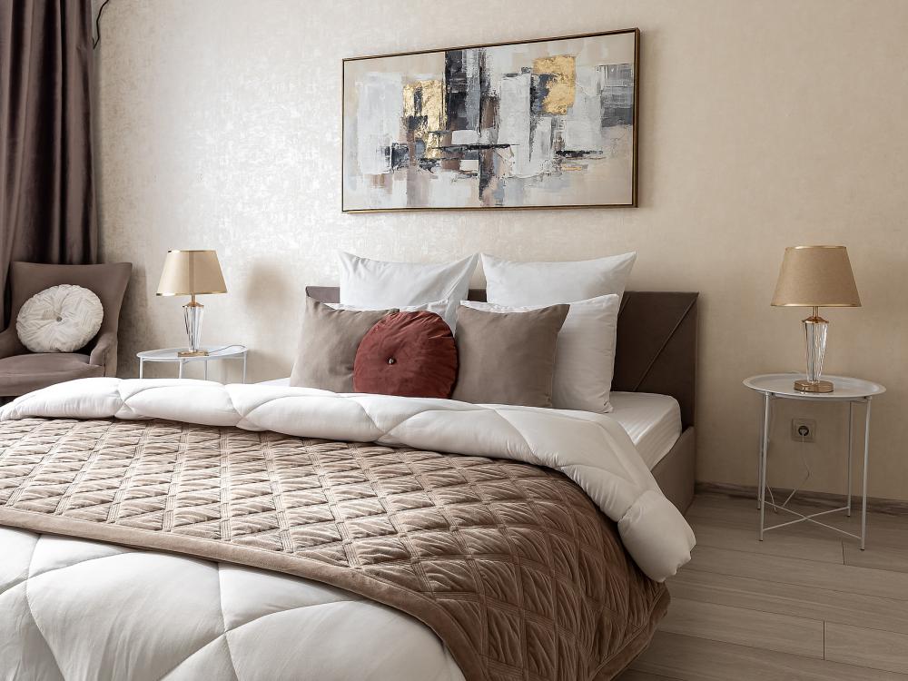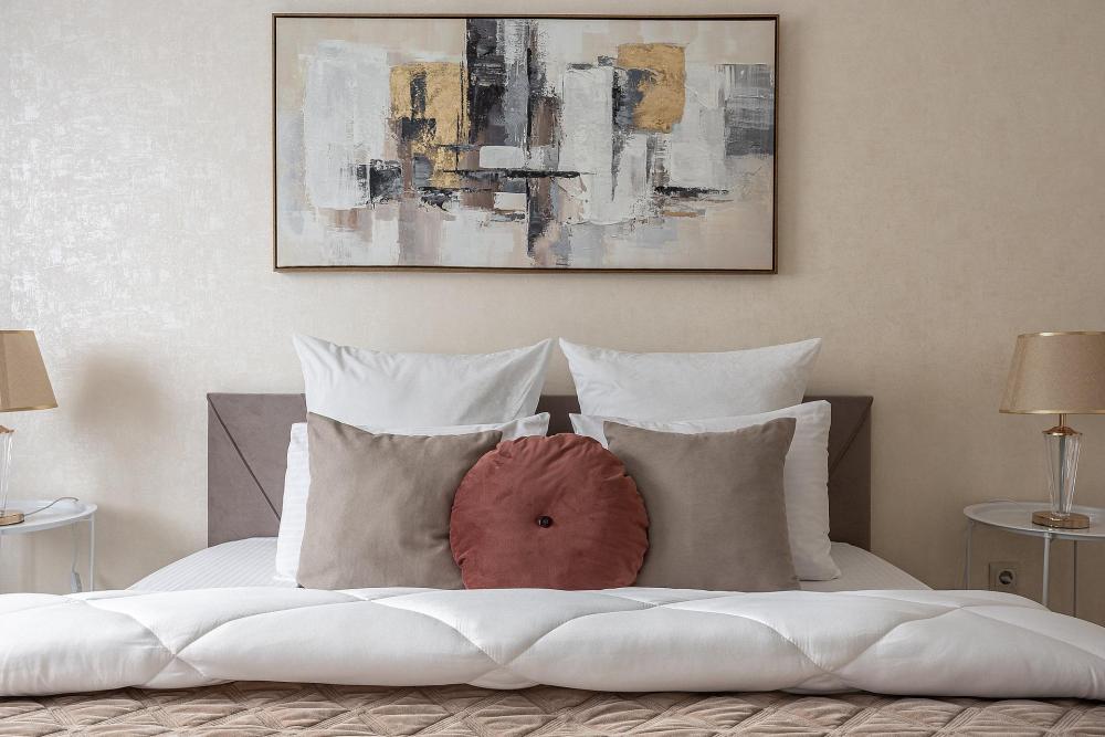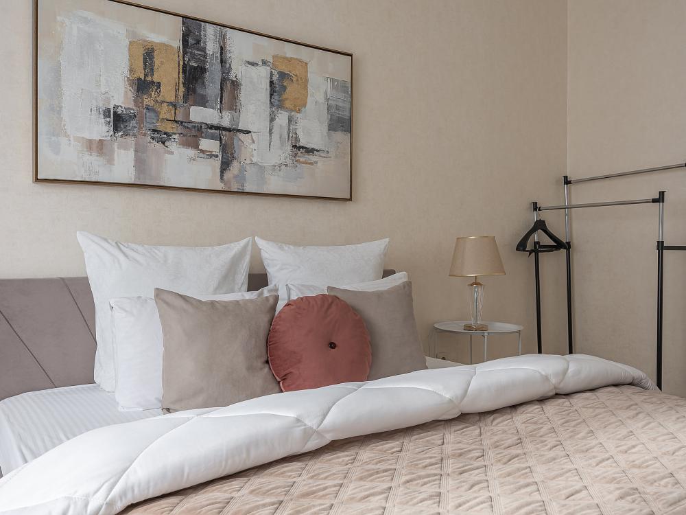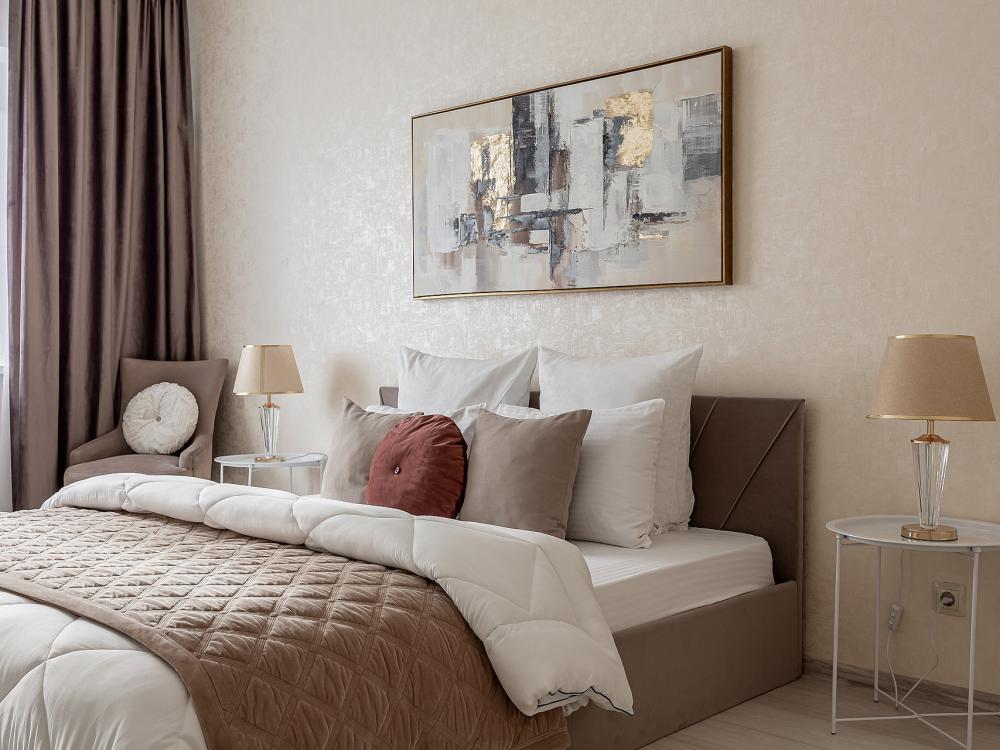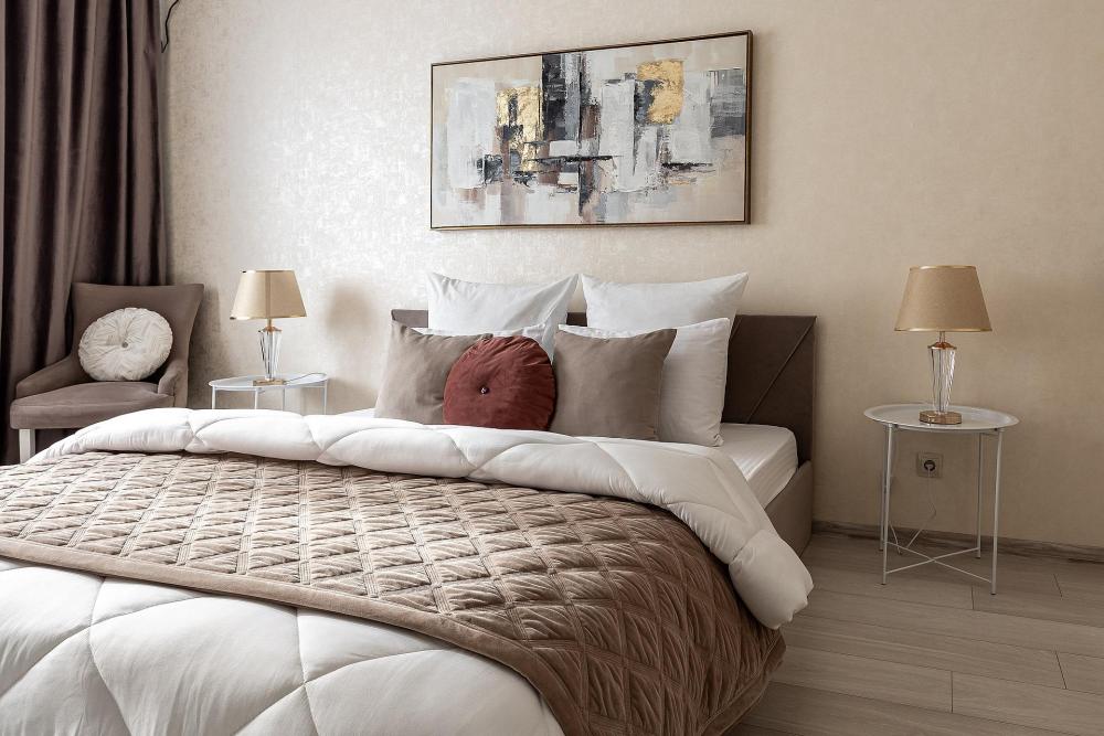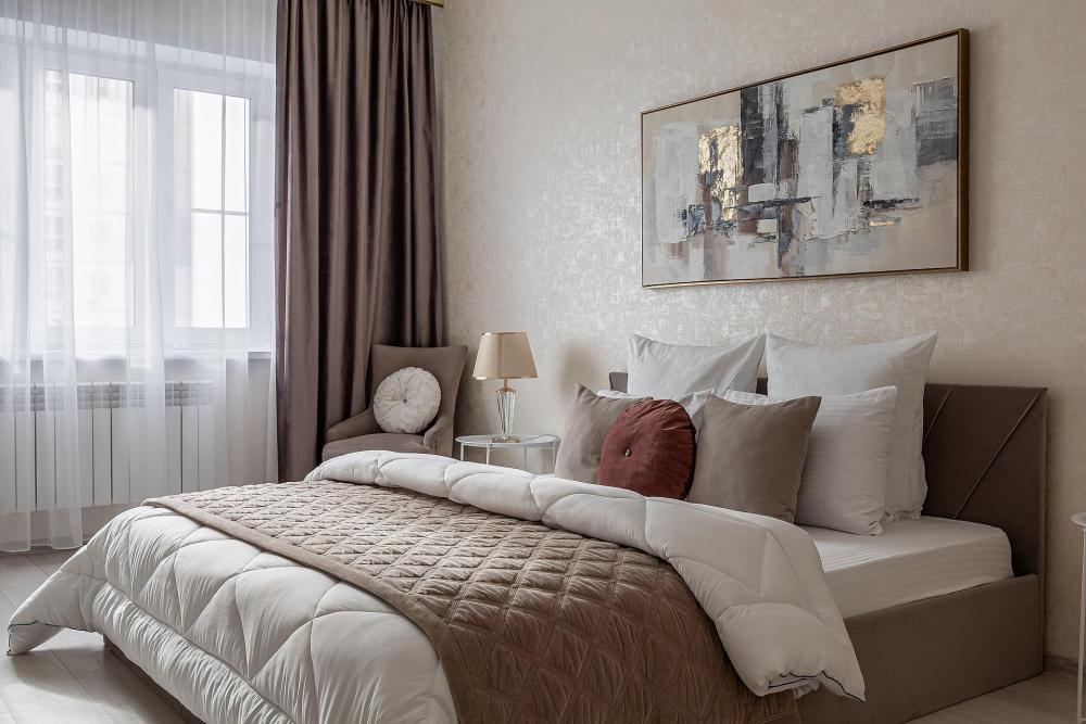 Уютная 2-комнатная квартира площадью 62 м² на 9 этаже. Идеально подходит для семьи из 6 человек, командированных, или туристов приехавших небольшой компании желающих насладиться комфортом. Спальные места: две двуспальные кровати (160×200 см, ортопедический матрас), двуспальный диван (160×200 см). Спальные комплекты: 2 подушки, 2 наволочки, двуспальное одеяло, пододеяльник, простынь. Общественная парковка около дома; скоростной Wi-Fi для работы и развлечений; полностью оборудованная кухня (холодильник, плита, СВЧ-печь, чайник, набор посуды); стиральная машина. Просторная ванная комната с удобной ванной, комплектом мягких полотенец и феном; гигиенические наборы: мыло, шампунь, гель для душа, ватные палочки, ватные диски, прокладки, зубные щетки; комплимент для гостей: чай, кофе, соль, сахар, конфеты и подсолнечное масло; постельное бельё из натуральных тканей.