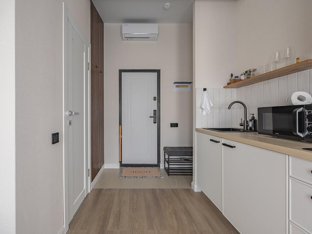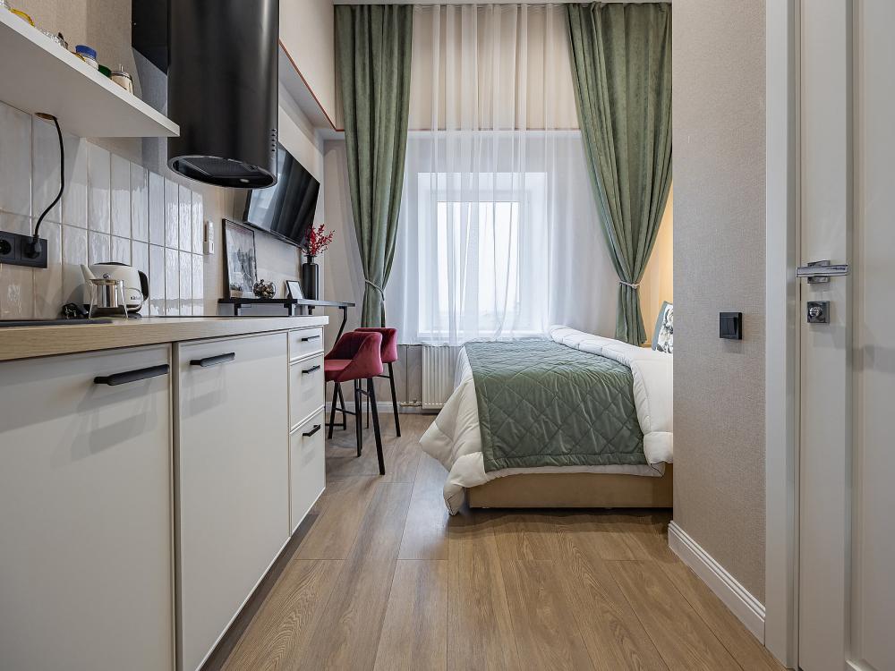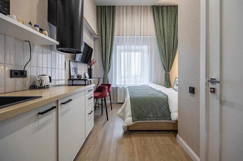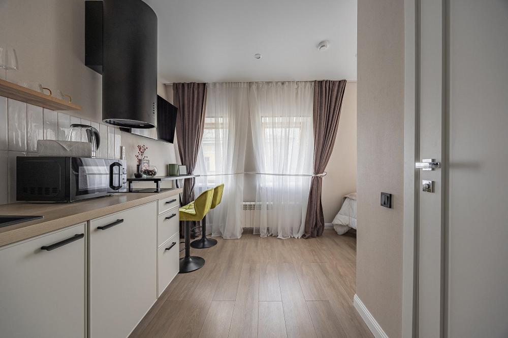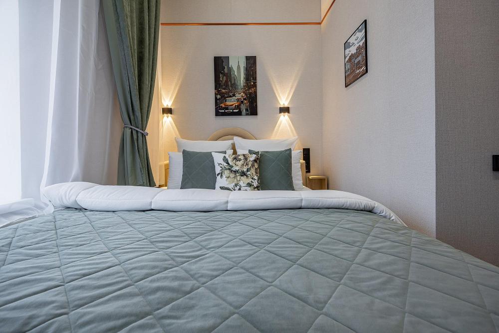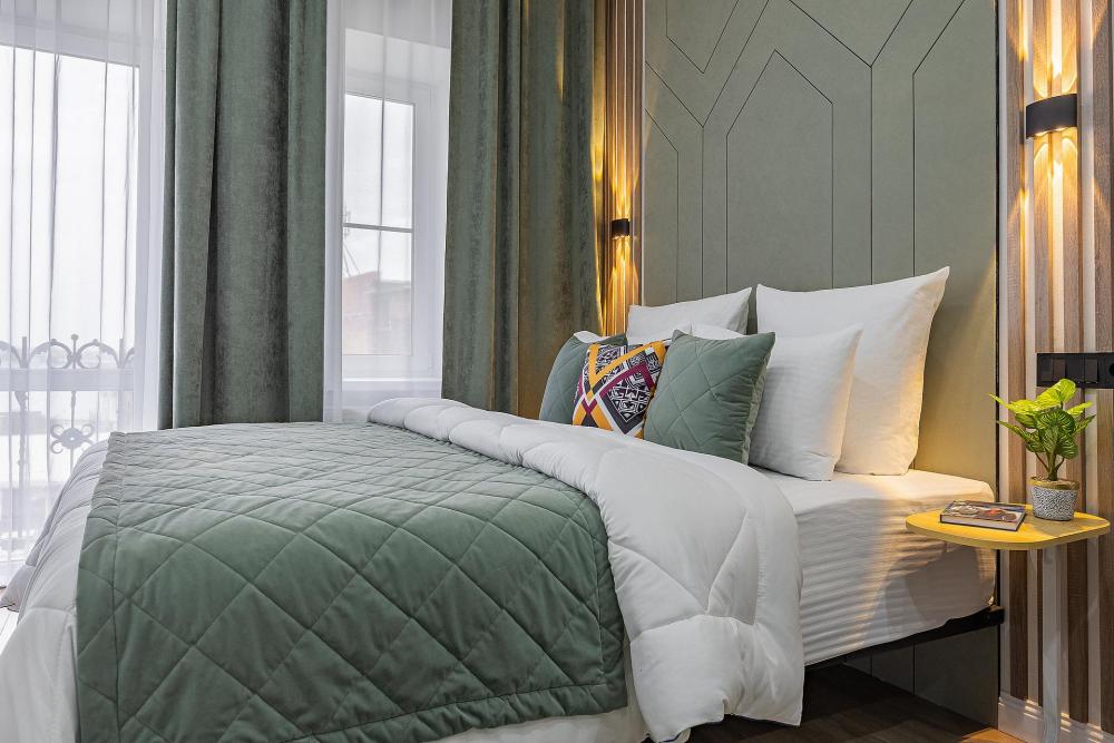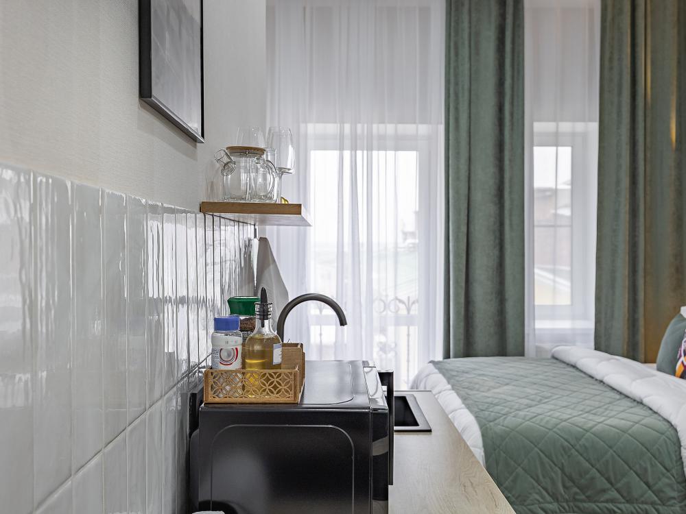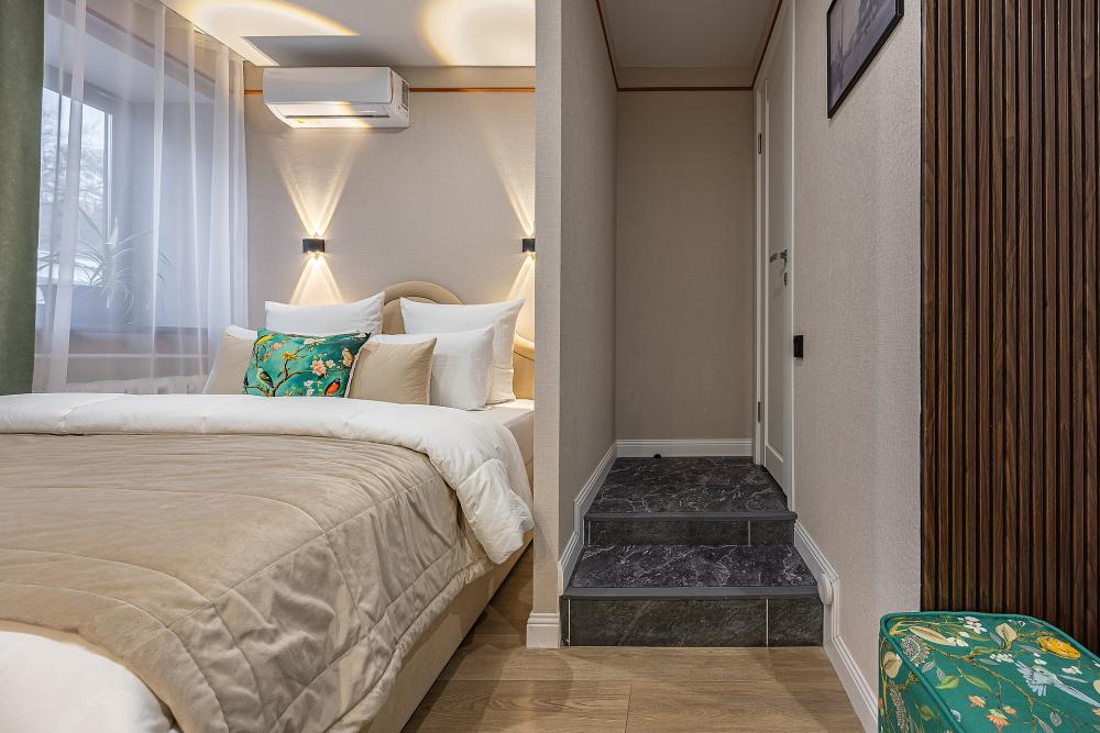 Уютная студия площадью 25 м² на 3 этаже. Идеально подходит для семьи из 3 человек, командированных или туристов, приехавших небольшой компанией, желающих насладиться комфортом. Спальные места: двуспальная кровать (160×200 см, ортопедический матрас), односпальный диван (120×200 см). Спальные комплекты: На каждую кровать и диван идет следующий комплект: 2 подушки; 2 наволочки; двуспальное одеяло; пододеяльник; простынь. Удобства: кондиционер, обеспечит вас комфортом в летний период; общественная парковка около дома; скоростной Wi-Fi для работы и развлечений; полностью оборудованная кухня (холодильник, плита, СВЧ-печь, чайник, набор посуды); стиральная машина; просторная ванная комната с душевой кабиной, мягкими полотенцами и феном; гигиенические наборы: мыло, шампунь, гель для душа, ватные палочки, ватные диски, прокладки, зубные щетки; комплимент для гостей: чай, кофе, соль, сахар, конфеты и подсолнечное масло; постельное бельё из натуральных тканей.