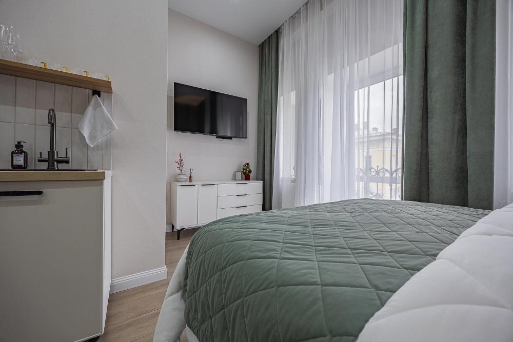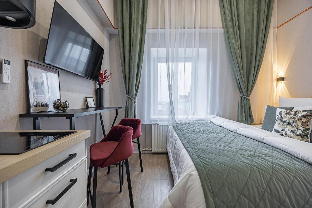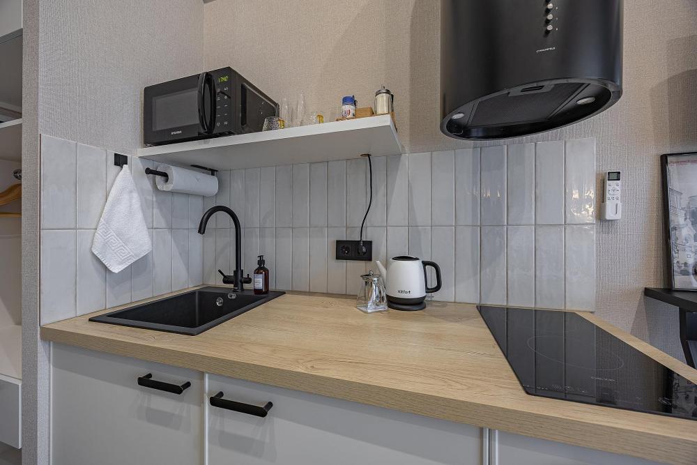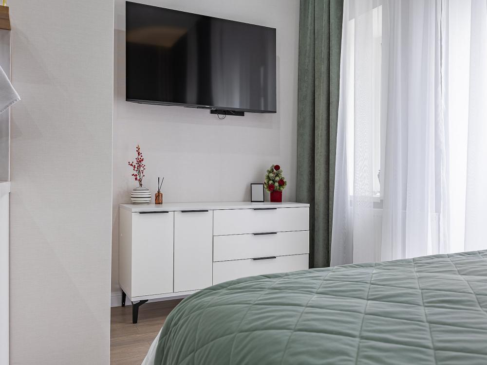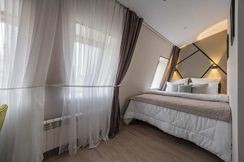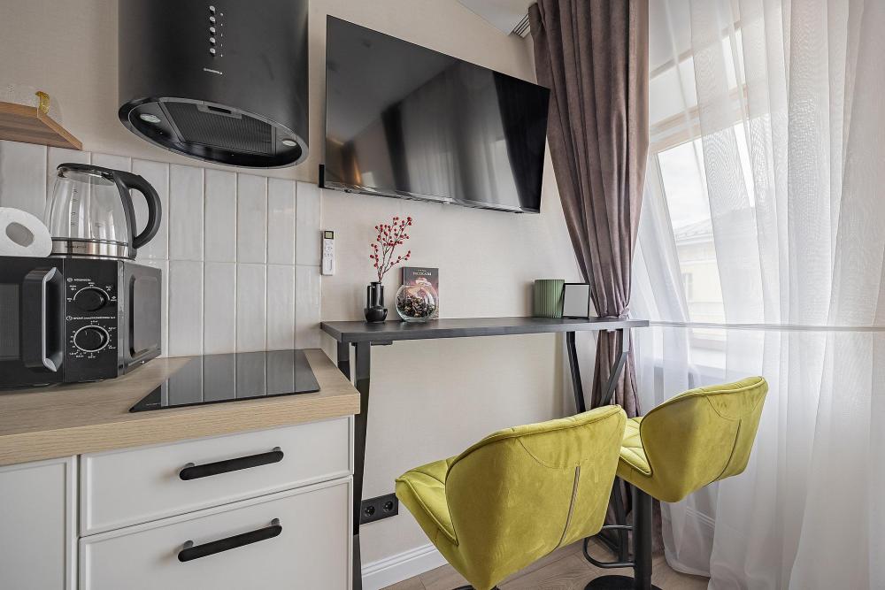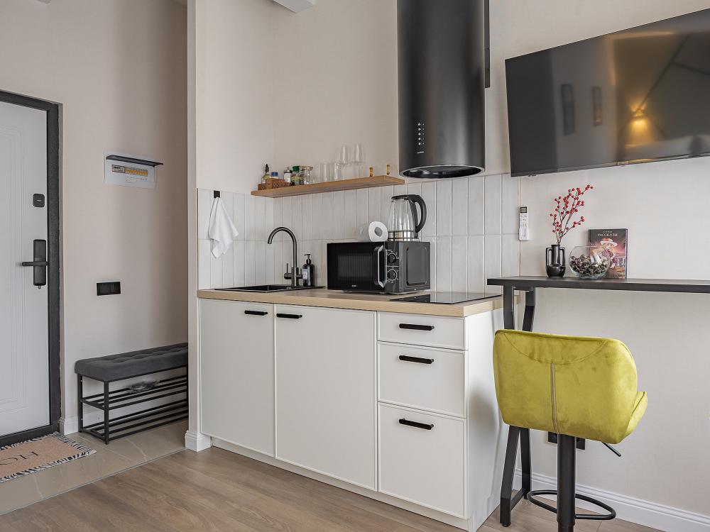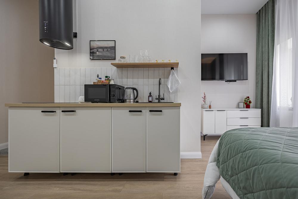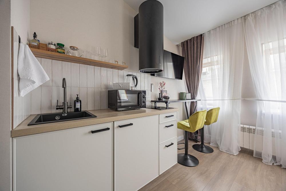 Уютная студия площадью 25 м² на 3 этаже. Идеально подходит для семьи из 3 человек, командированных или туристов, приехавших небольшой компанией, желающих насладиться комфортом. Спальные места: двуспальная кровать (160×200 см, ортопедический матрас), односпальный диван (120×200 см). Спальные комплекты: На каждую кровать и диван идет следующий комплект: 2 подушки; 2 наволочки; двуспальное одеяло; пододеяльник; простынь. Удобства: кондиционер, обеспечит вас комфортом в летний период; общественная парковка около дома; скоростной Wi-Fi для работы и развлечений; полностью оборудованная кухня (холодильник, плита, СВЧ-печь, чайник, набор посуды); стиральная машина; просторная ванная комната с душевой кабиной, мягкими полотенцами и феном; гигиенические наборы: мыло, шампунь, гель для душа, ватные палочки, ватные диски, прокладки, зубные щетки; комплимент для гостей: чай, кофе, соль, сахар, конфеты и подсолнечное масло; постельное бельё из натуральных тканей.