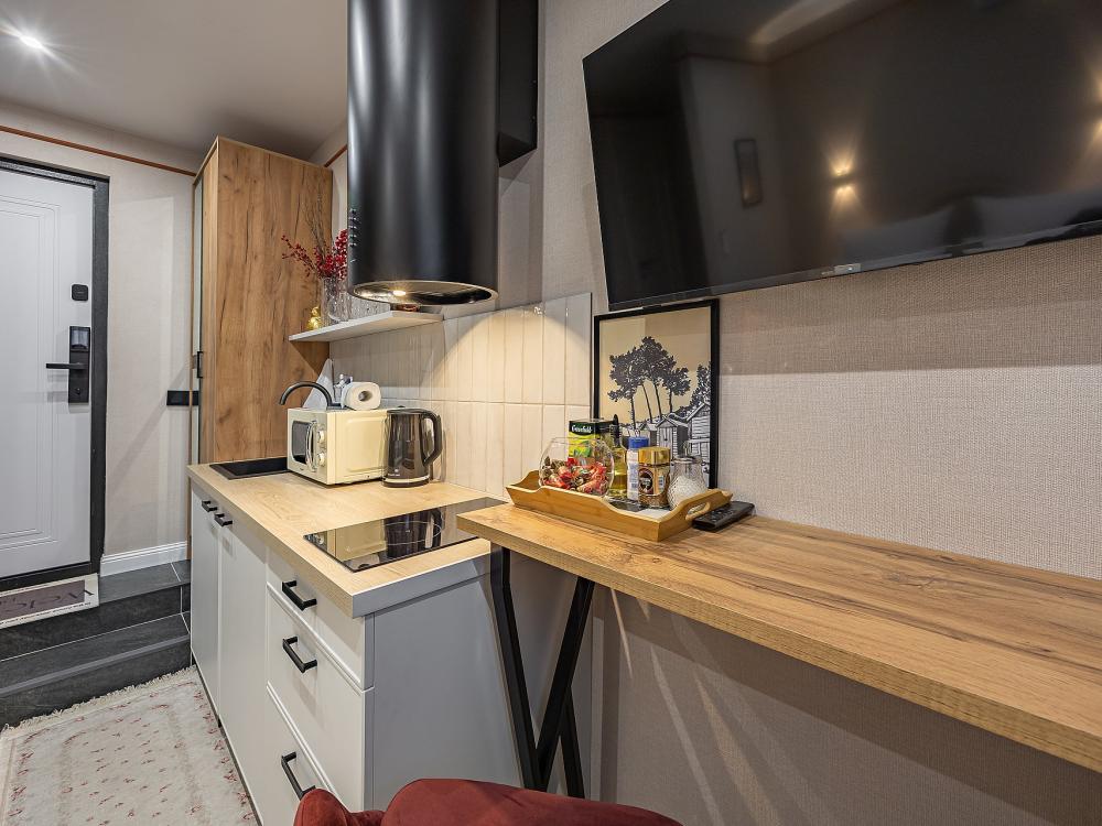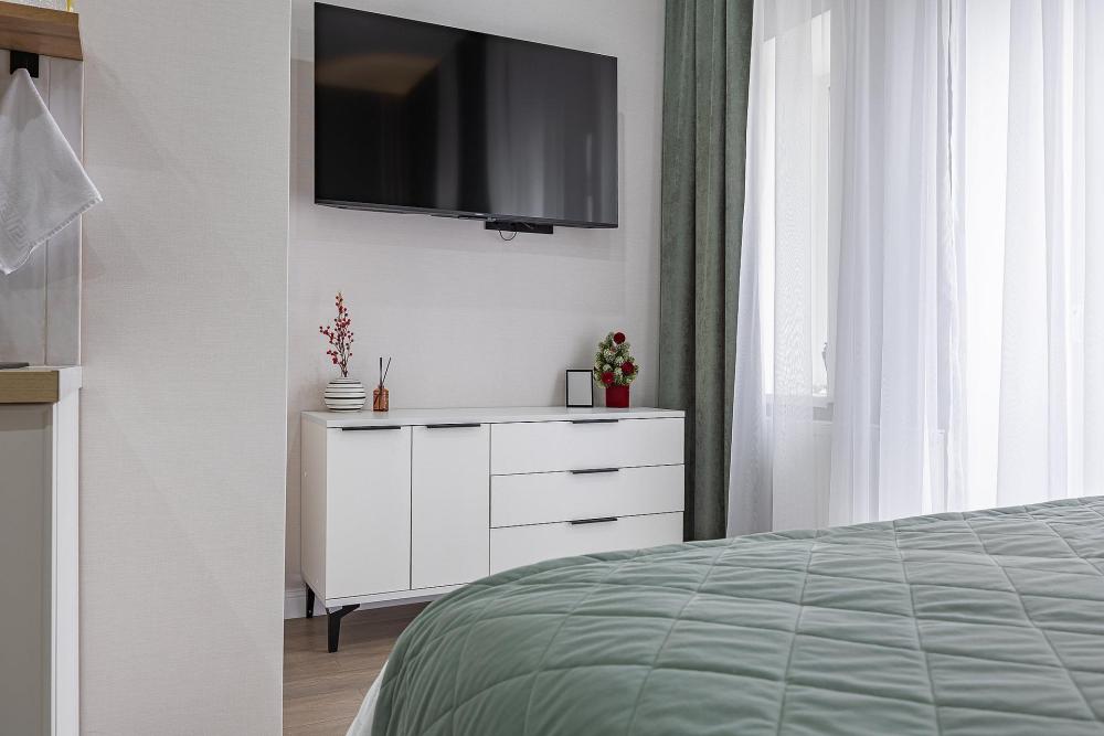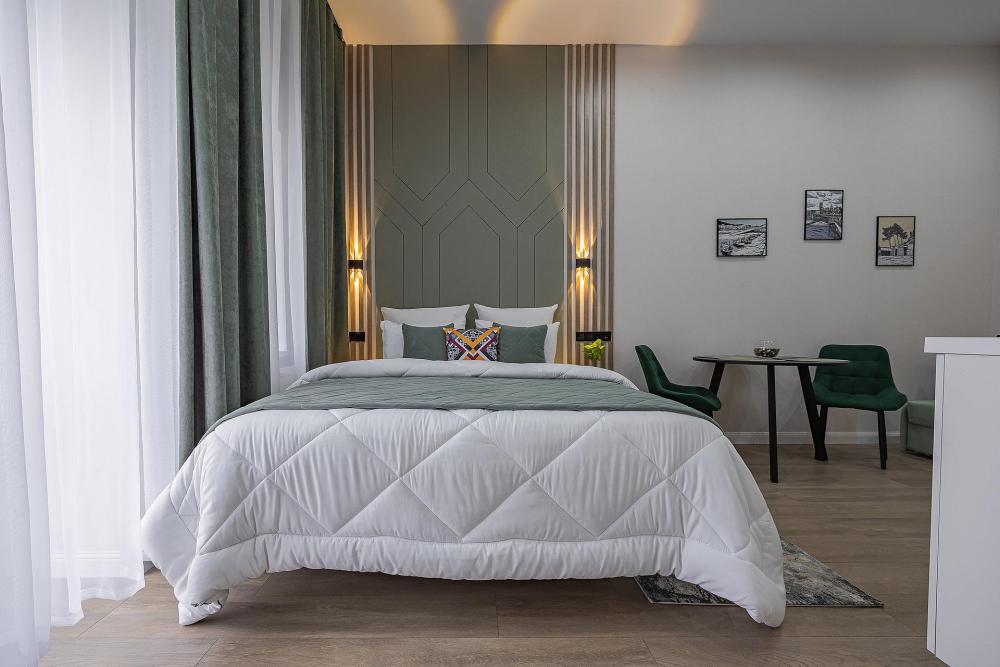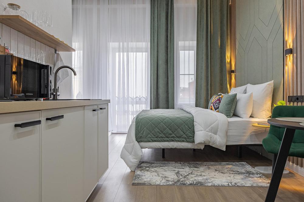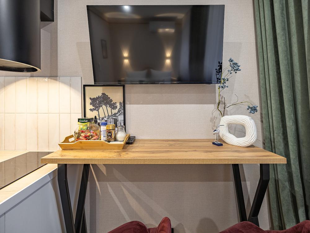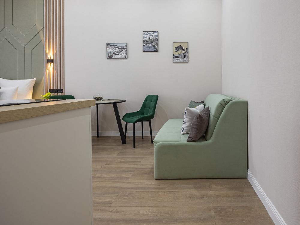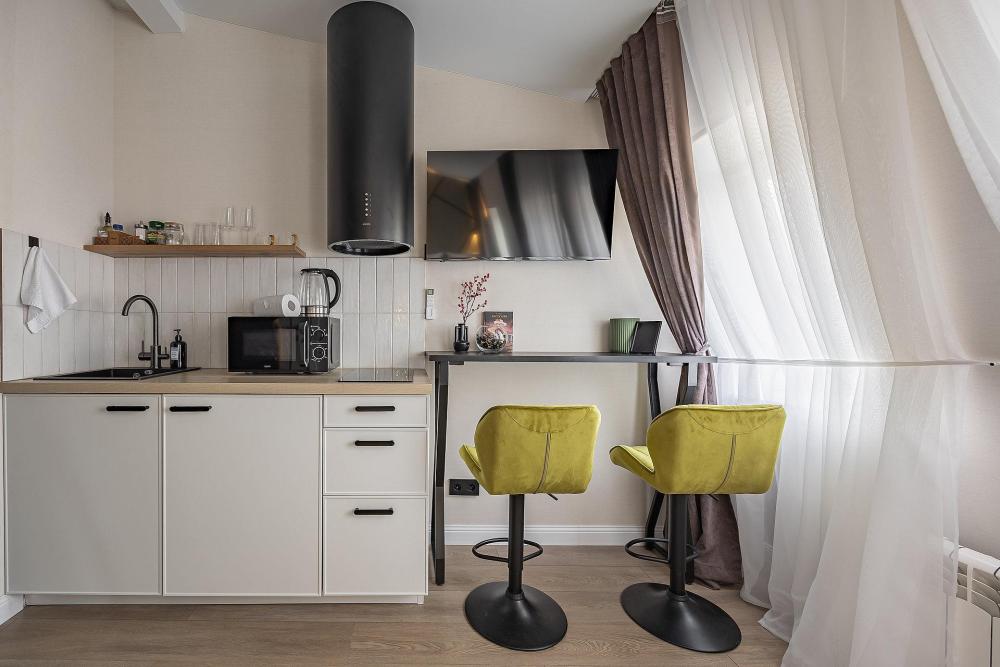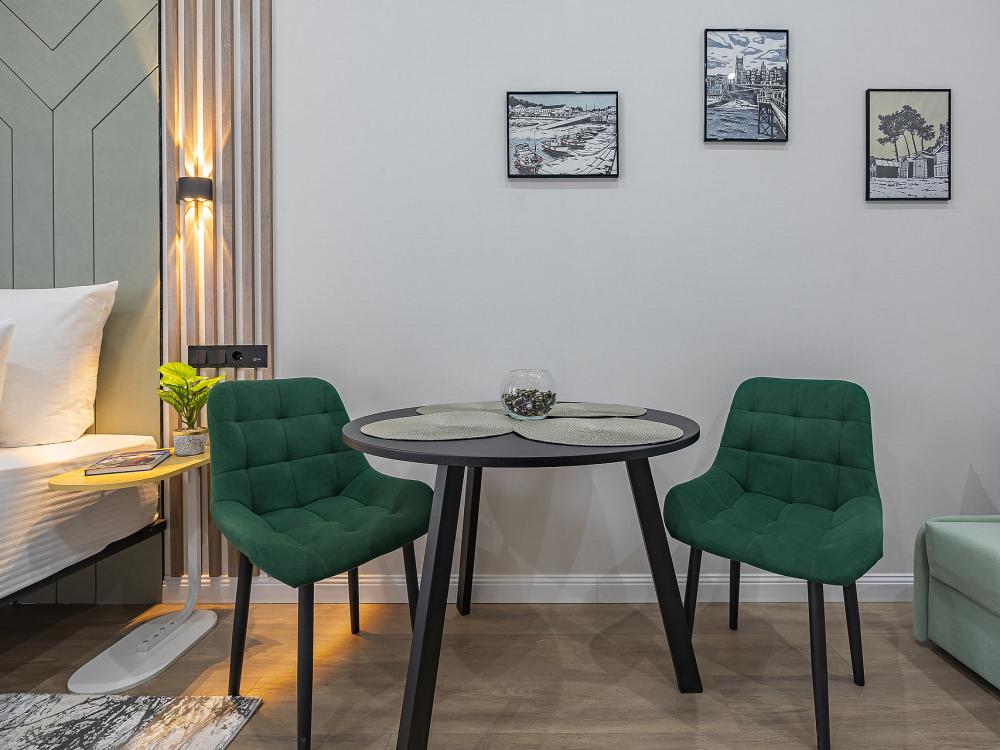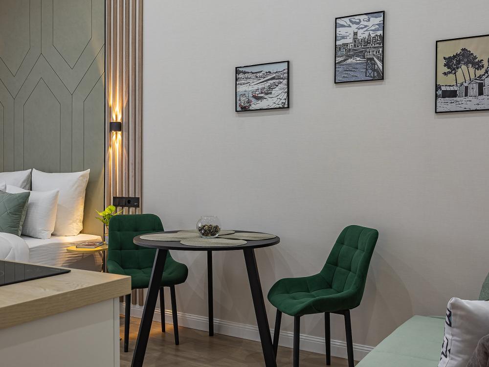 Уютная студия площадью 25 м² на 3 этаже. Идеально подходит для семьи из 3 человек, командированных или туристов, приехавших небольшой компанией, желающих насладиться комфортом. Спальные места: двуспальная кровать (160×200 см, ортопедический матрас), односпальный диван (120×200 см). Спальные комплекты: На каждую кровать и диван идет следующий комплект: 2 подушки; 2 наволочки; двуспальное одеяло; пододеяльник; простынь. Удобства: кондиционер, обеспечит вас комфортом в летний период; общественная парковка около дома; скоростной Wi-Fi для работы и развлечений; полностью оборудованная кухня (холодильник, плита, СВЧ-печь, чайник, набор посуды); стиральная машина; просторная ванная комната с душевой кабиной, мягкими полотенцами и феном; гигиенические наборы: мыло, шампунь, гель для душа, ватные палочки, ватные диски, прокладки, зубные щетки; комплимент для гостей: чай, кофе, соль, сахар, конфеты и подсолнечное масло; постельное бельё из натуральных тканей.