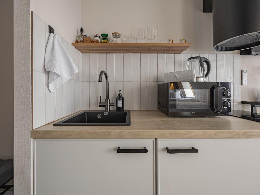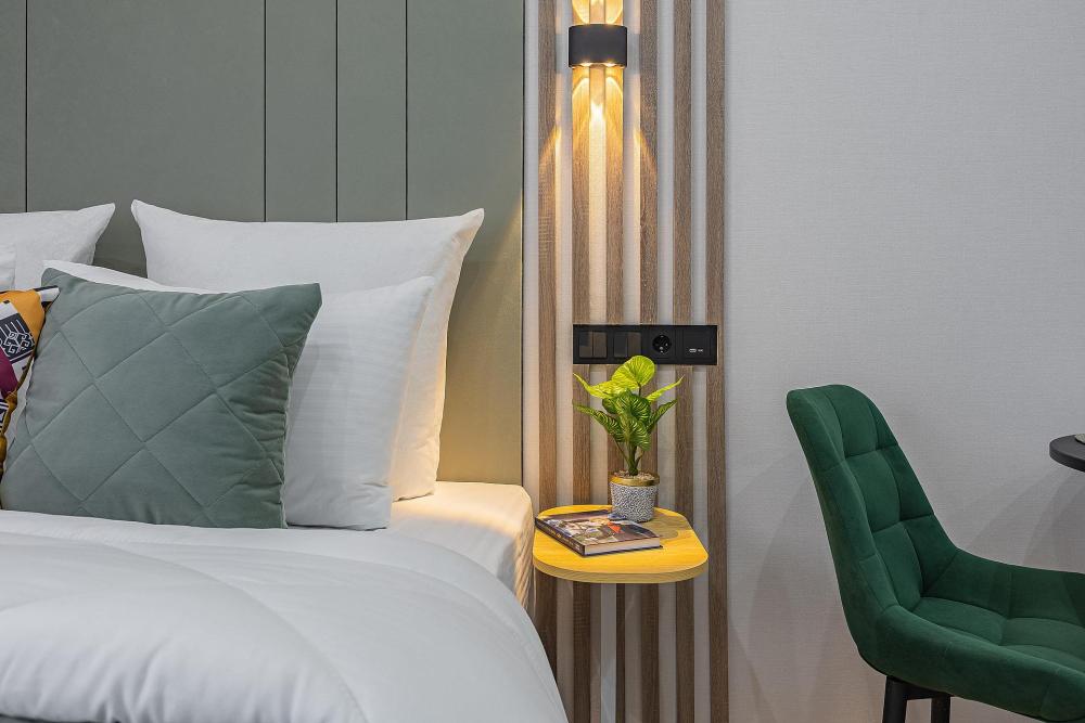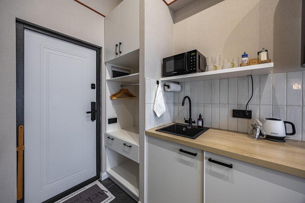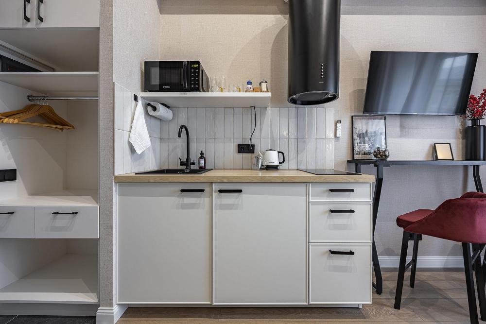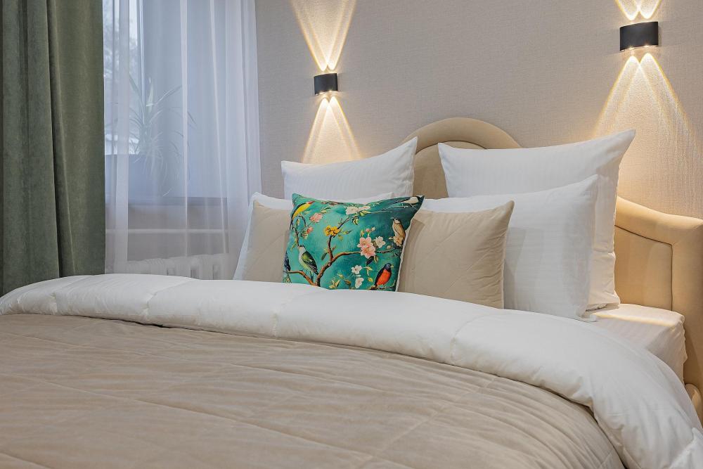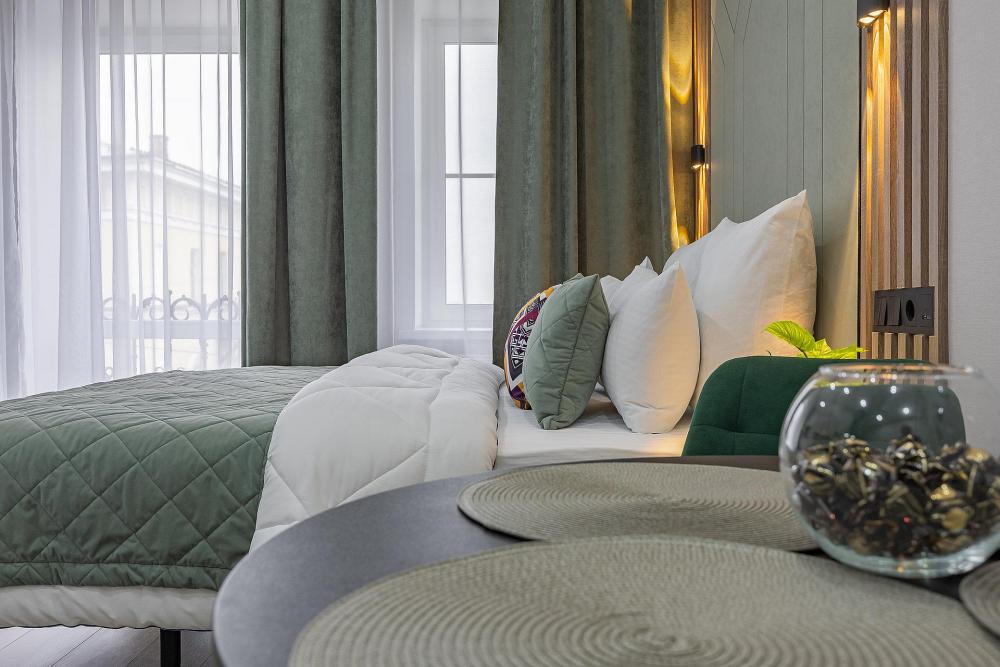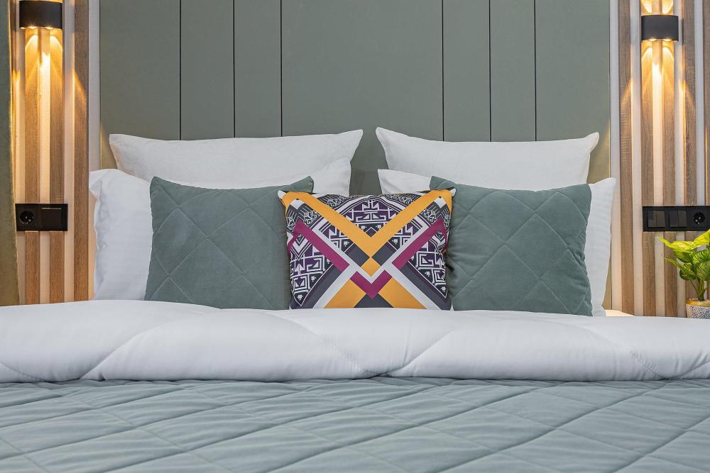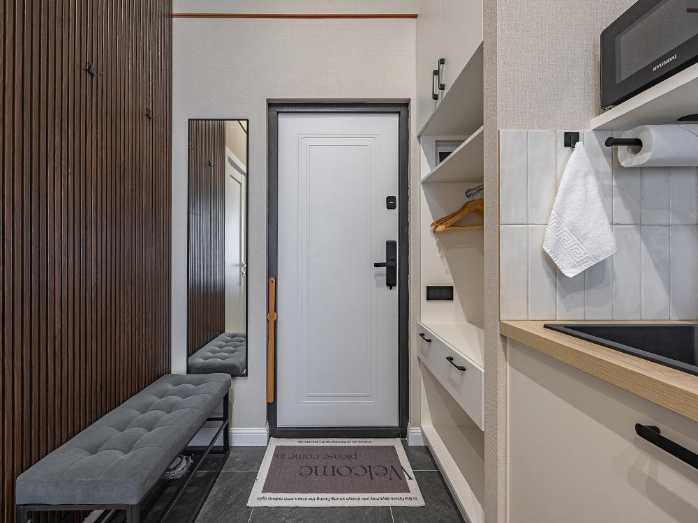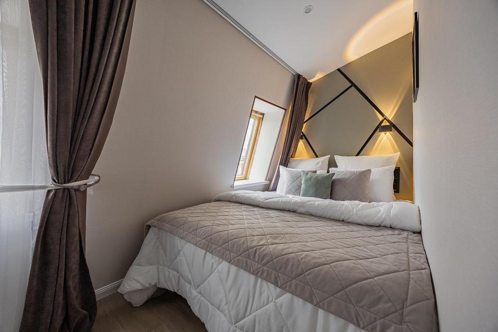 Уютная студия площадью 25 м² на 3 этаже. Идеально подходит для семьи из 3 человек, командированных или туристов, приехавших небольшой компанией, желающих насладиться комфортом. Спальные места: двуспальная кровать (160×200 см, ортопедический матрас), односпальный диван (120×200 см). Спальные комплекты: На каждую кровать и диван идет следующий комплект: 2 подушки; 2 наволочки; двуспальное одеяло; пододеяльник; простынь. Удобства: кондиционер, обеспечит вас комфортом в летний период; общественная парковка около дома; скоростной Wi-Fi для работы и развлечений; полностью оборудованная кухня (холодильник, плита, СВЧ-печь, чайник, набор посуды); стиральная машина; просторная ванная комната с душевой кабиной, мягкими полотенцами и феном; гигиенические наборы: мыло, шампунь, гель для душа, ватные палочки, ватные диски, прокладки, зубные щетки; комплимент для гостей: чай, кофе, соль, сахар, конфеты и подсолнечное масло; постельное бельё из натуральных тканей.
