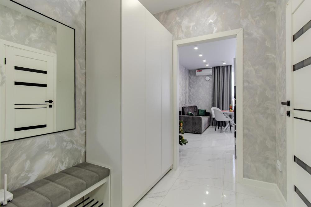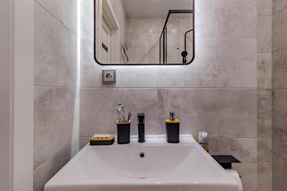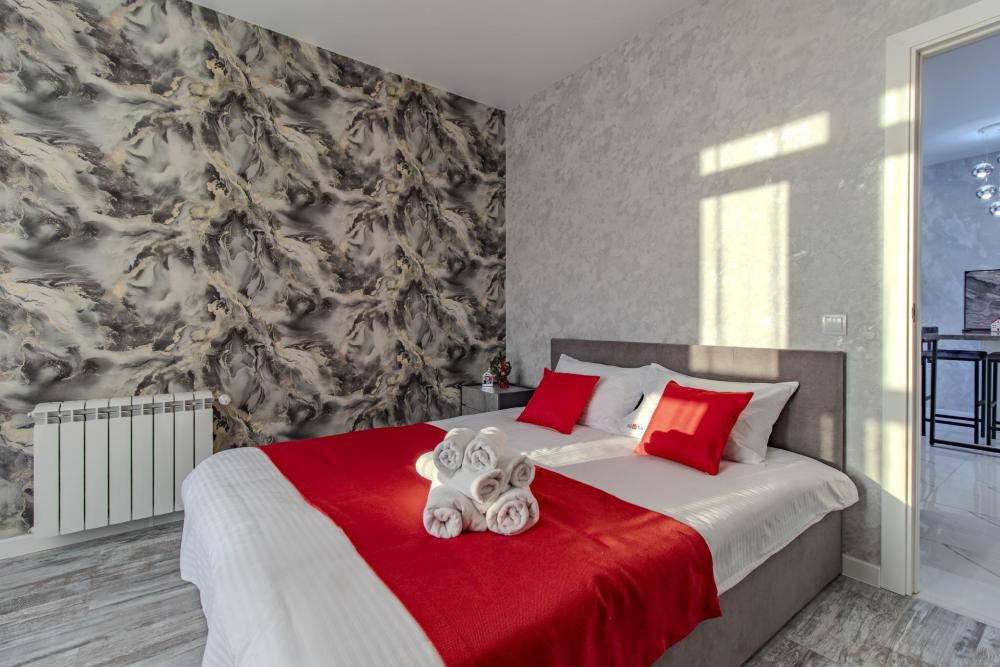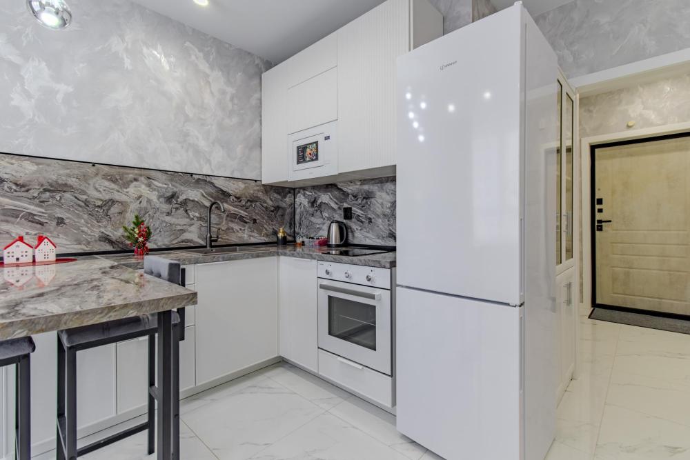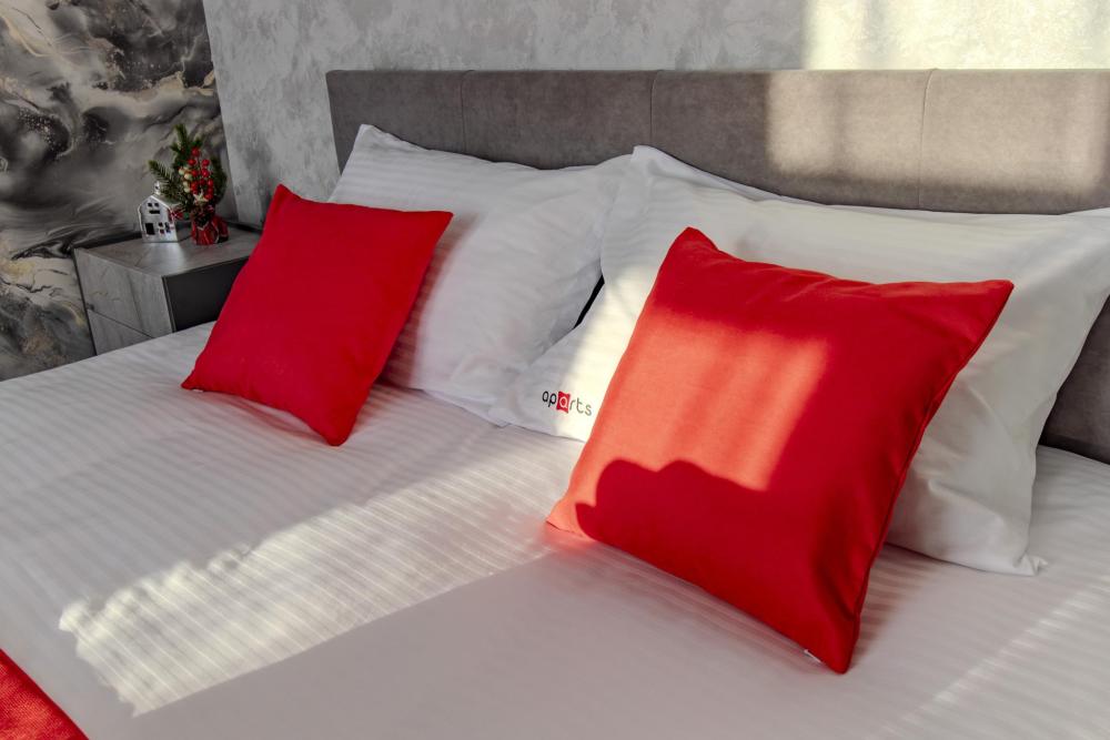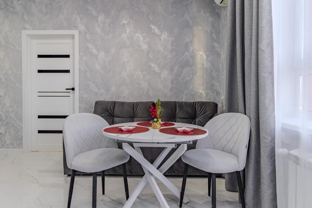 ЧТО ЕСТЬ В КВАРТИРЕ : • Вся необходимая бытовая техника (посуда, стиральная машинка, холодильник, телевизор, утюг, микроволновая печь, чайник, фен, кондиционер). • Удобная укомплектованная кухня с обеденной зоной. • Широкая двуспальная кровать с чистым белым постельным бельем для крепкого сна. • Комфортный двуспальный диван. • Опрятная и просторная ванная комната + свежие полотенца и халаты, средства гигиены.