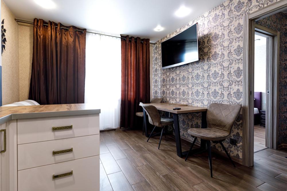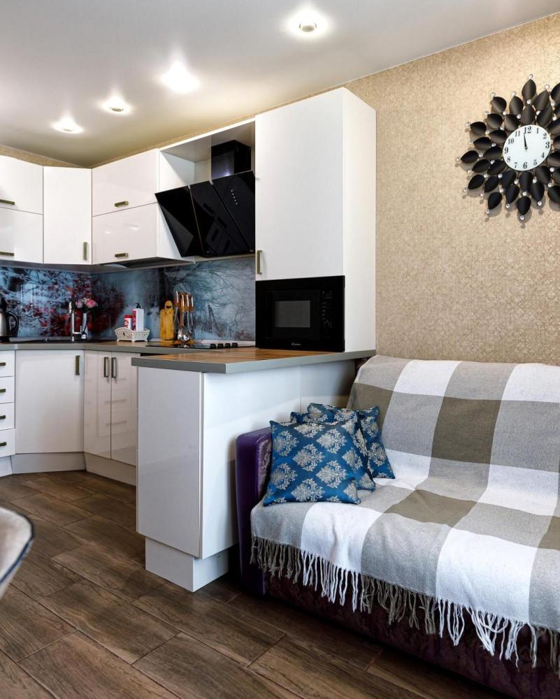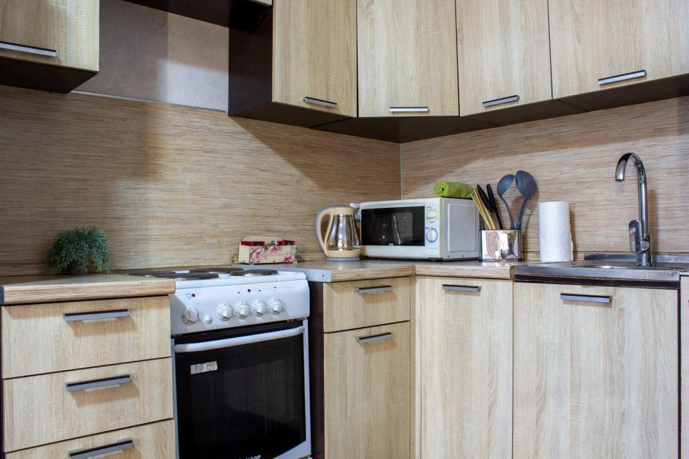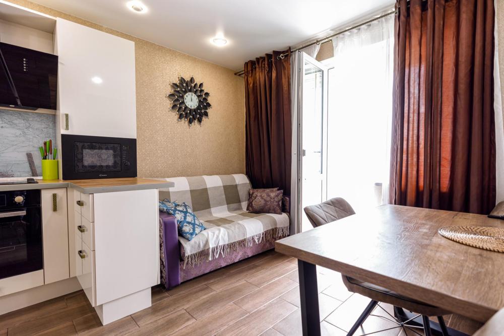 Квартира с комфортной мягкой мебелью, спальные места представлены двухспальной кроватью и диваном-кроватью. Кухня оборудована всем необходимым для приготовления вкусных блюд. В квартире имеется: холодильник, стиральная машина, электрический чайник, СВЧ, фен, утюг, гладильная доска, необходимая посуда. Для приятного времяпрепровождения к вашим услугам безлимитный интернет Wi-Fi и кабельное TV. Кроме того Вам предоставляется всегда чистое постельное белье, полотенца для каждого гостя, теплые одеяла и удобные подушки и все необходимые для жизни мелочи.