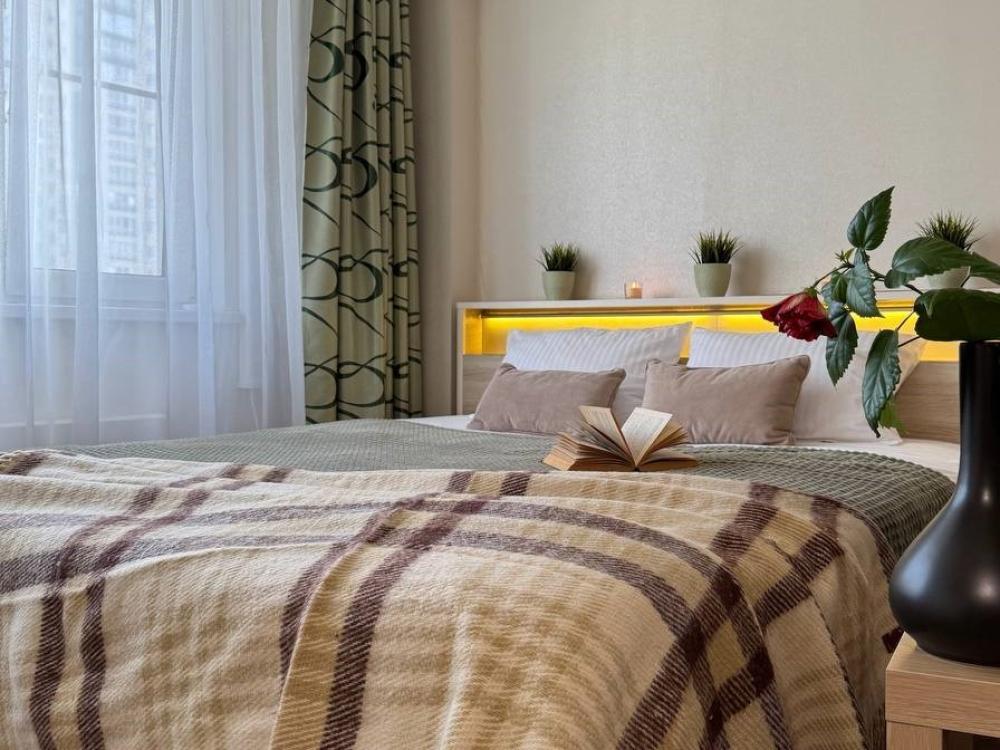 Светлая квартира расположена в новом жилом комплексе с прекрасным видом на парковые берега Оки. Географический центр города. Подъезды и парковки находятся под круглосуточным видеонаблюдением. В спальне - большая двуспальная кровать (180х200) и раскладной диван. Кухня оборудована всем необходимым для приготовления и приема пищи. В квартире есть гардеробная и лоджия. Оснащение - эл.чайник, варочная панель, микроволновка, холодильник, стиральная машина, бойлер, фен, утюг. TV и WiFi. Предоставляются постельные принадлежности, полотенца, средства гигиены.