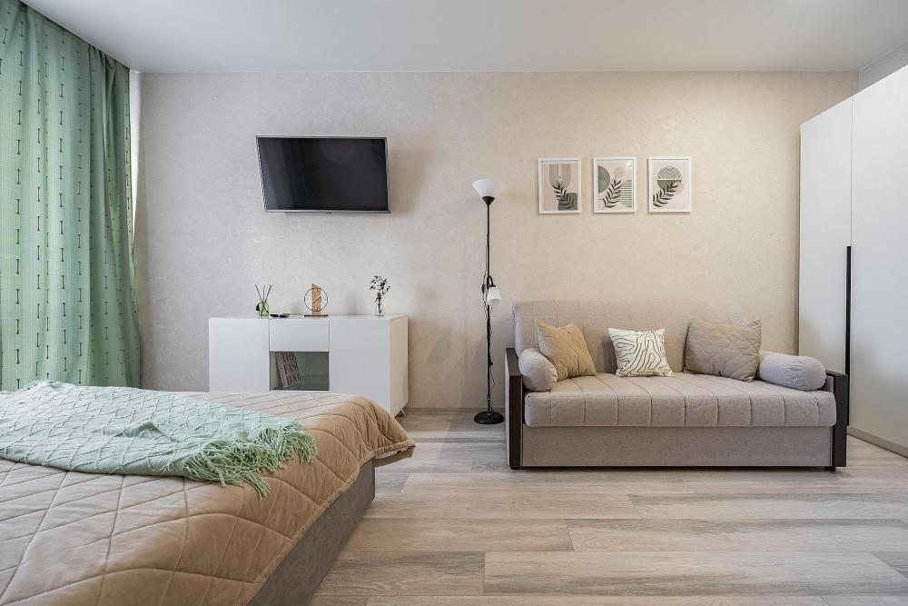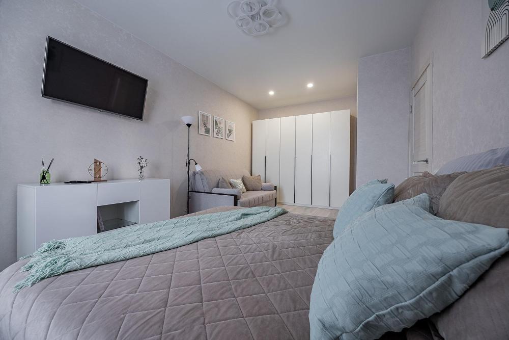 В квартире имеется все для комфортного проживания : комфортная двуспальная кровать, удобный двуспальный диван. -Постельное бельё из натуральных тканей, комплект полотенец для каждого гостя. -Гигиенические наборы: мыло, шампунь, гель для душа, зубные щетки. - бесплатный WI-FI, Smаrt-ТV и техника (телевизор, стиральная машина, плита, холодильник, микроволновая печь, электрочайник, фен, утюг); - посуда и кухонные принадлежности для приготовления и приема пищи.