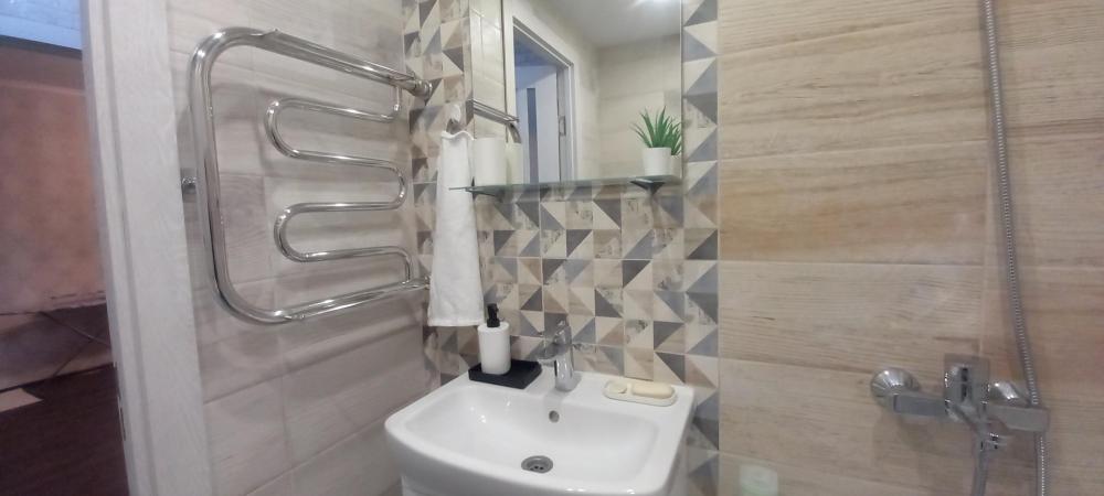 Санузел раздельный, в ванной есть гигиенические принадлежности, полотенца, фен и утюг. Зеркало в полный рост и шкаф для одежды находятся в прихожей.