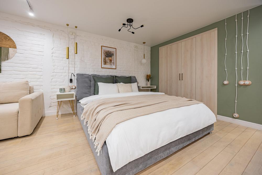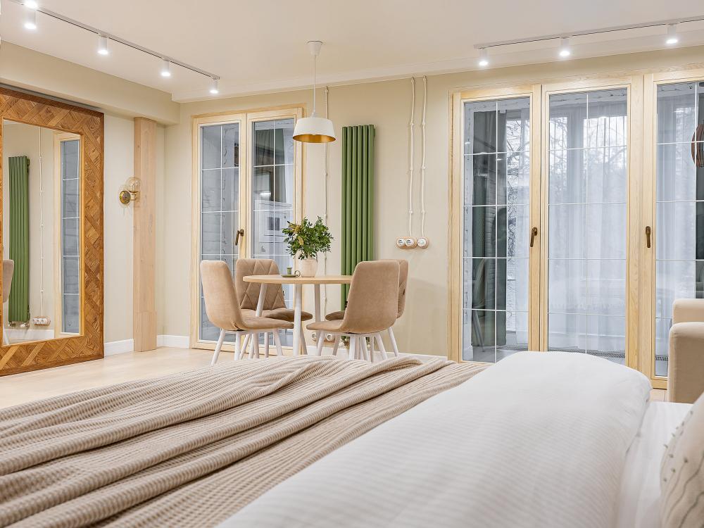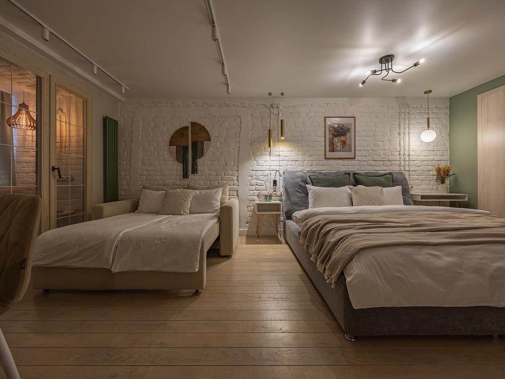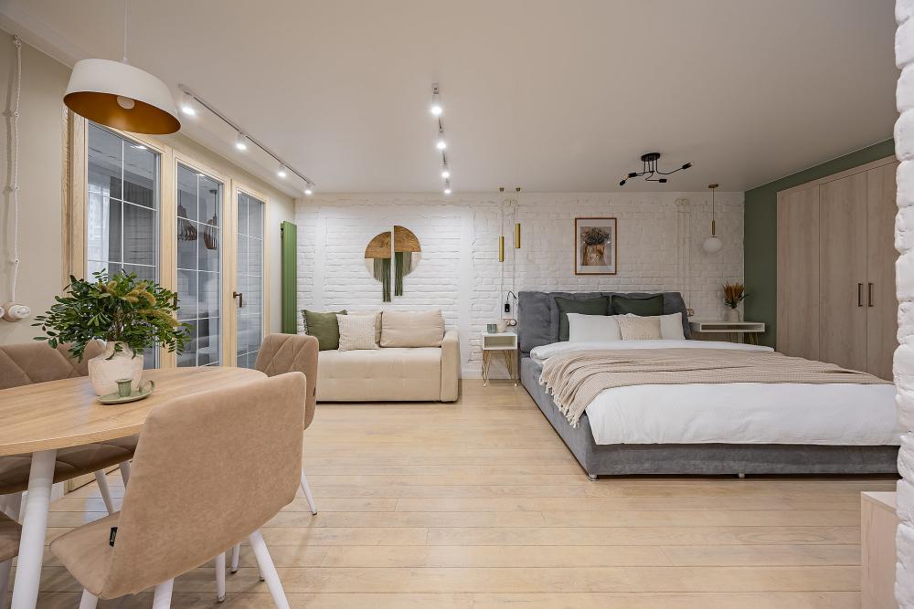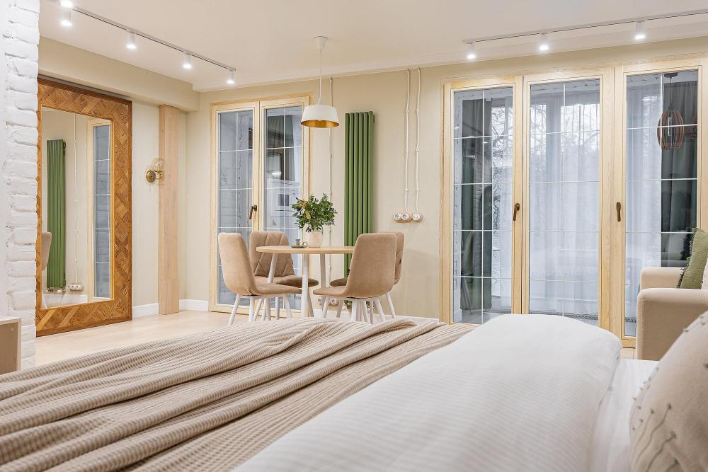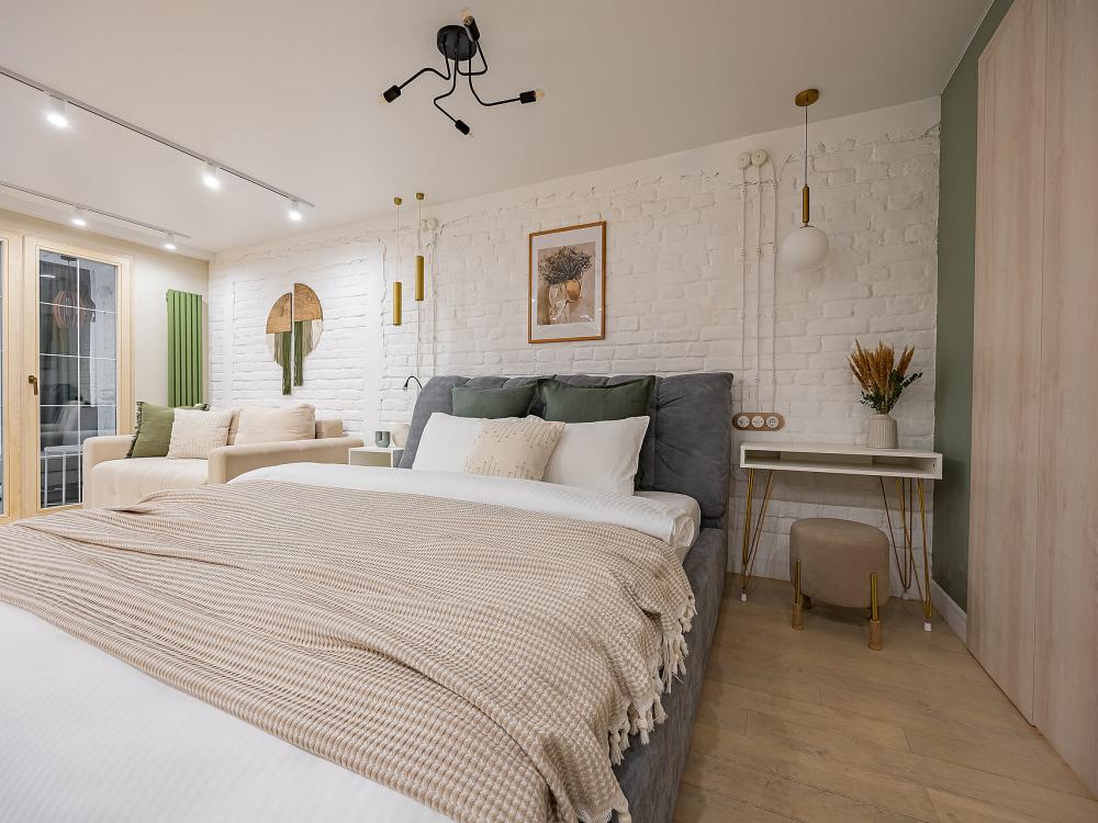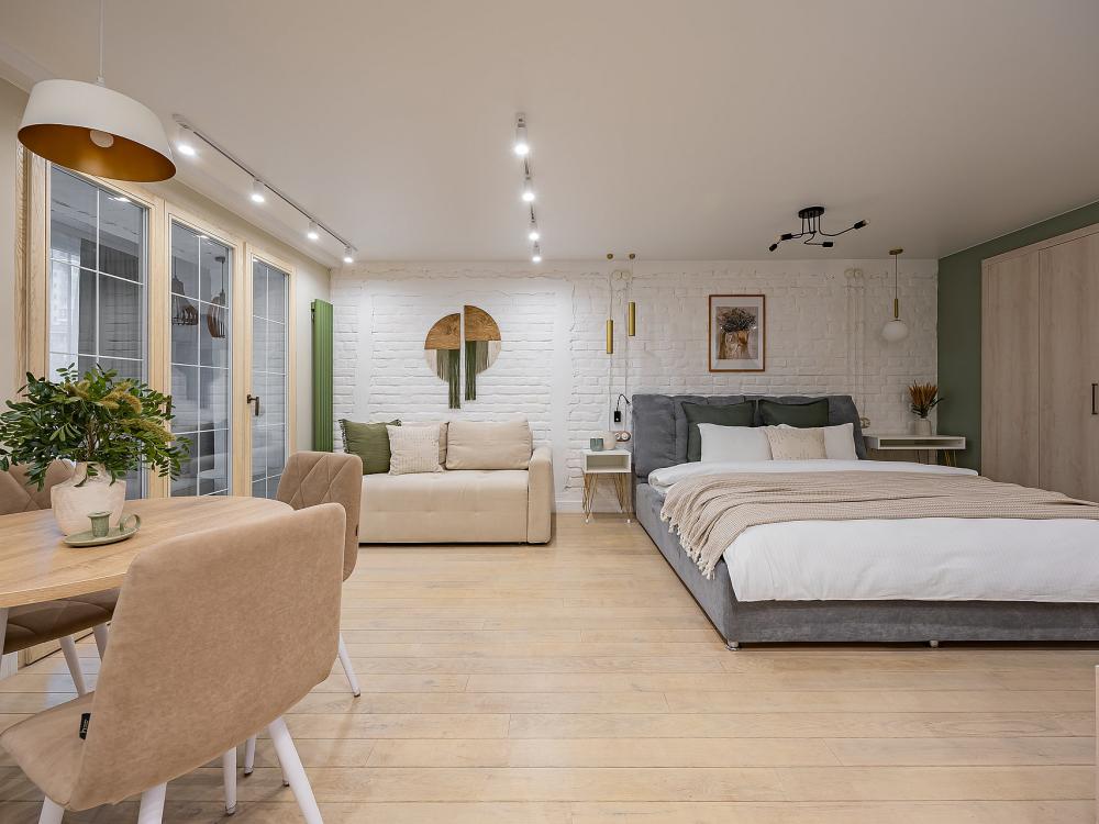 Расположение: Нижний Новгород, м. Горьковская, ул. Невзоровых дом 7/ 10 минут пешком до площади Горького, 12 минуты до площади Лядова, 15 минут до Кремля Дизайнерский ремонт по индивидуальному проекту, многоуровневые зоны освещения всей квартиры, паркетные ЭКО полы, по которым приятно ходить босиком. Большая гардеробная, мощный вентилятор, быстрый Wi-Fi, стиральная машина, душистые банные и постельные принадлежности, большой водонагреватель Полностью оборудованная кухня: кран-фильтр с питьевой водой, посудомоечная машина, холодильник, микроволновая печь. Посуда для готовки и сервировки (от сковороды до рюмочки). А так же детская кроватка и детский стульчик могут быть привезены нами, если они Вам необходимы абсолютно бесплатно. Апартаменты на Невзоровых - это большая студия, рассчитанная на проживание до 5 человек. Состоят из: зона кухни – гостиной с витражными окнами с полностью оборудованной кухней, круглым столом и двуспальным диваном на 2х человек, просторная лоджия – зона отдыха и уединения, раскладное кресло-кровать на 1 человека, зона спальни - с кроватью king-size 180*200 с шикарным, ортопедическим матрасом на 2х человек. Большой телевизор со СМАРТ-ТВ и рабочее место