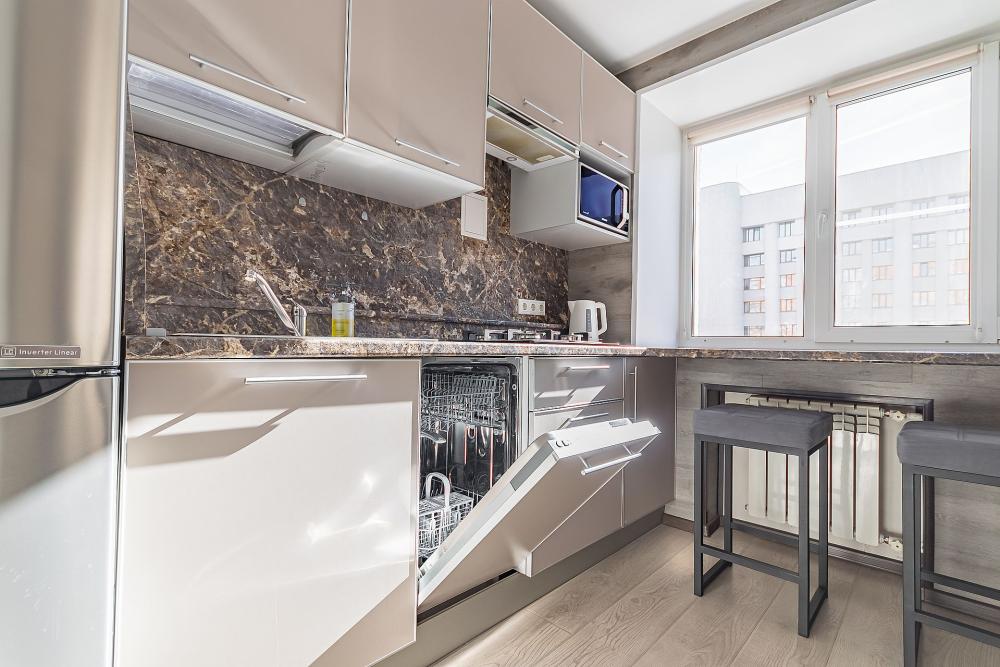 Стильная квартира "Горького", расположенная на одноименной площади и являющаяся как историческим, так и деловым центром города. В квартире 2 телевизора, посудомоечная машина, большой шкаф для одежды, просторный санузел и вид из окон на величественное здание госучреждения. В квартире очень уютно и тихо. Квартира вмещает гостей: двуспальная кровать 160/200, двуспальный раскладной диван. Ванная и туалет: совмещенные. Квартира находится на 2 этаже. Парковка наземная во дворе открытая.