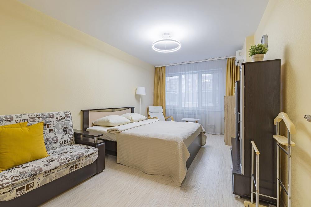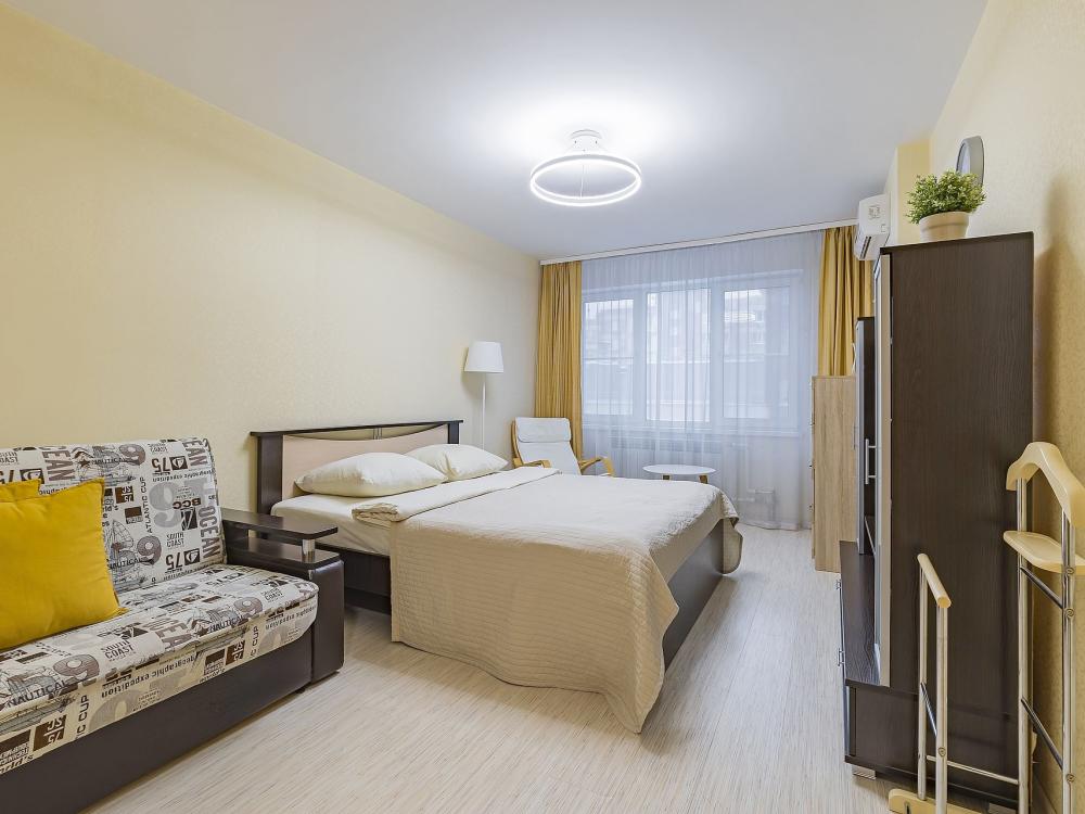 Уютная квартира с большой угловой ванной в новом доме, рядом с историческим центром города. В квартире одна комната с телевизором и кондиционером, просторная ванная комната с подогревом пола и кухня с выходом на застекленную лоджию. Окна квартиры выходят во двор, дом располагается на 2 линии от основной улицы. Квартира вмещает 3 гостей, спальные места: двуспальная кровать 160/200 + раскладной диван 140/190. Ванная и туалет: совмещенные. Квартира находится на 6 этаже. Парковка наземная у дома открытая. Двор с детской площадкой, закрытый от машин.