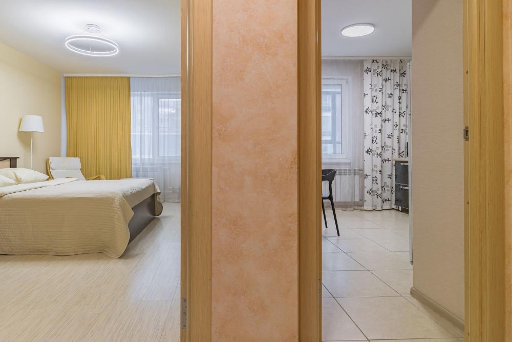 Уютная квартира с большой угловой ванной в новом доме, рядом с историческим центром города. В квартире одна комната с телевизором и кондиционером, просторная ванная комната с подогревом пола и кухня с выходом на застекленную панорамную лоджию. Внутренний двор дома закрыт для автомобилей и там располагается детская площадка. Окна квартиры выходят во двор, спокойствие возле дома и тишина в квартире гарантированы. Квартира вмещает 3 гостей, спальные места: двуспальная кровать 160/200, односпальный раскладной диван. Ванная и туалет: совмещенные. Квартира находится на 6 этаже. Парковка наземная у дома открытая. Двор с детской площадкой, закрытый от машин.