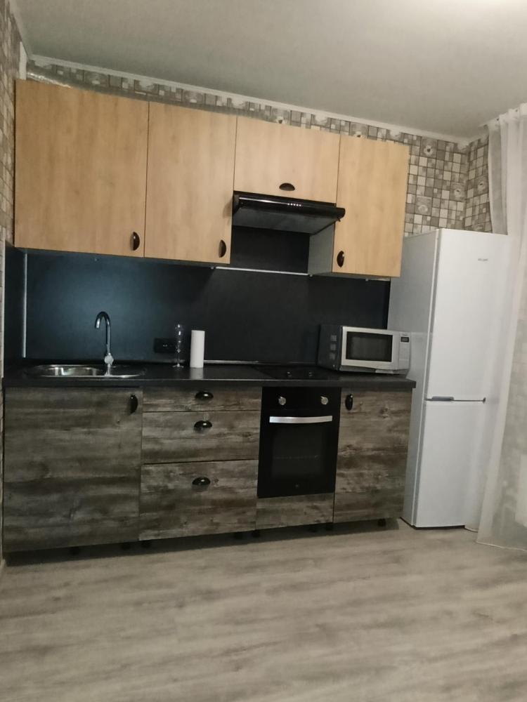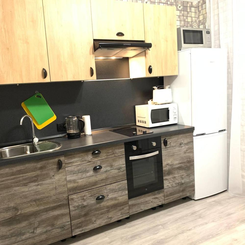 Кухня оснащена всей необходимой техникой для приготовления еды: микроволновка, электрический чайник, духовка, электроплита, холодильник и есть Вся-Вся кухонная утварь.