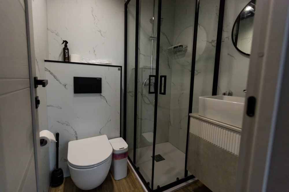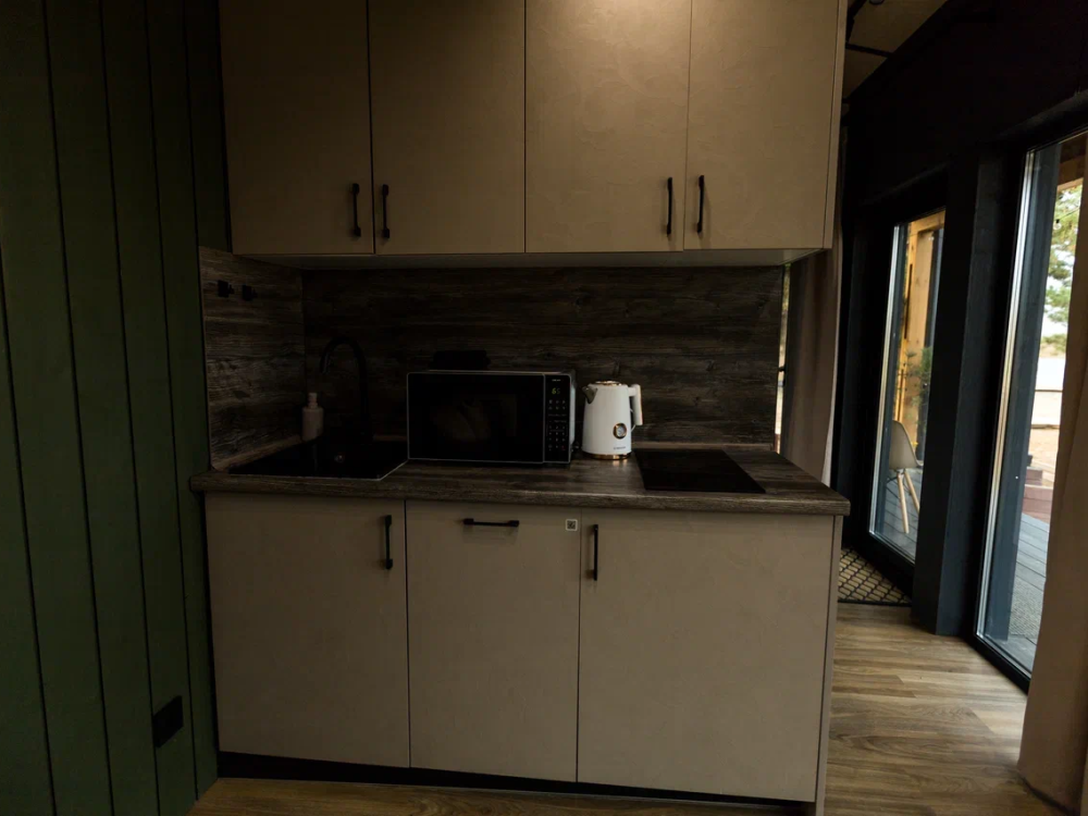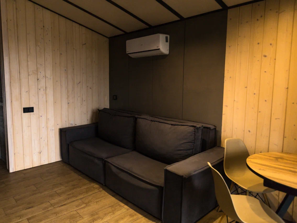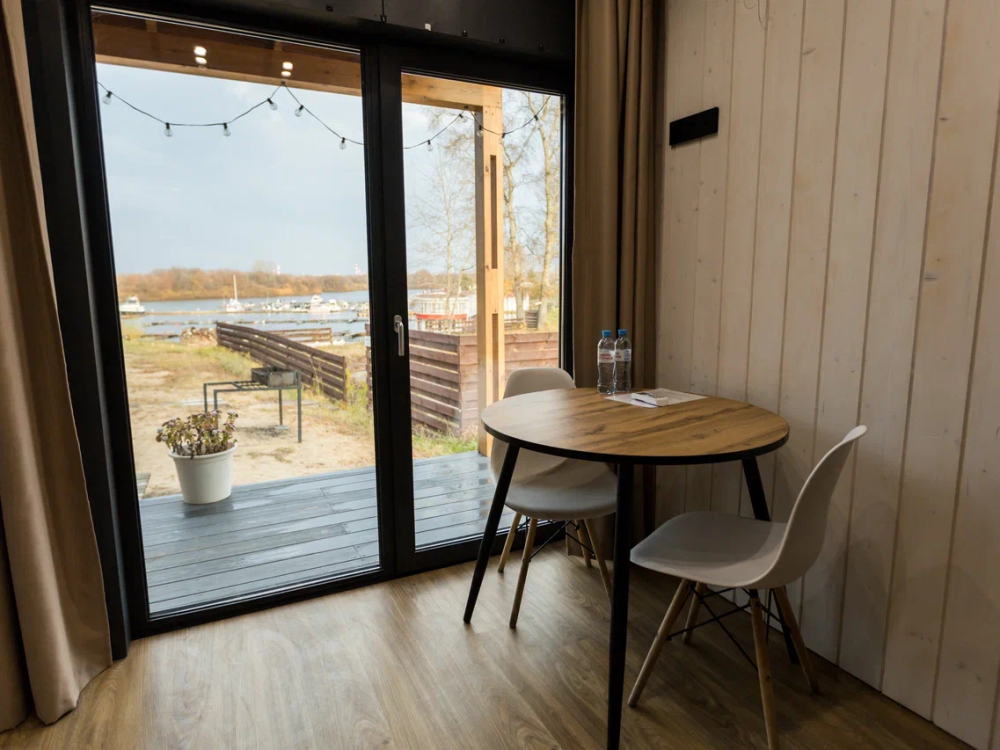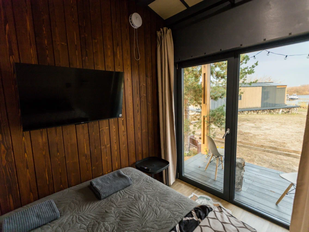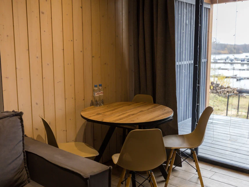 Просторные панорамные окна наполняют интерьеры естественным светом, а эргономичная мебель обеспечивает максимальный комфорт. На открытой и просторной веранде можно наслаждаться чаем на свежем воздухе или устроить барбекю с друзьями. Внутри предусмотрены все необходимые удобства: оборудованная кухня для приготовления любимых блюд, ванная комната с душем, лаунж зона для встреч гостей или романтического ужина, Wi-Fi и онлайн кинотеатр для комфортного времяпрепровождения.