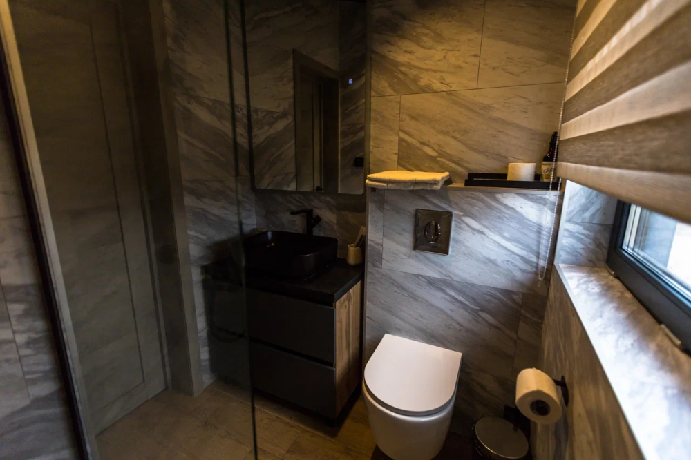 Предусмотрены все необходимые удобства: оборудованная кухня для приготовления любимых блюд, ванная комната с душем, лаунж зона для встреч гостей или романтического ужина, Wi-Fi и онлайн кинотеатр для комфортного времяпрепровождения. Есть открытая терраса.
