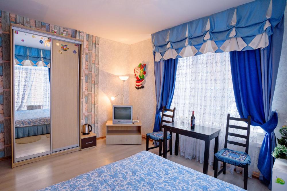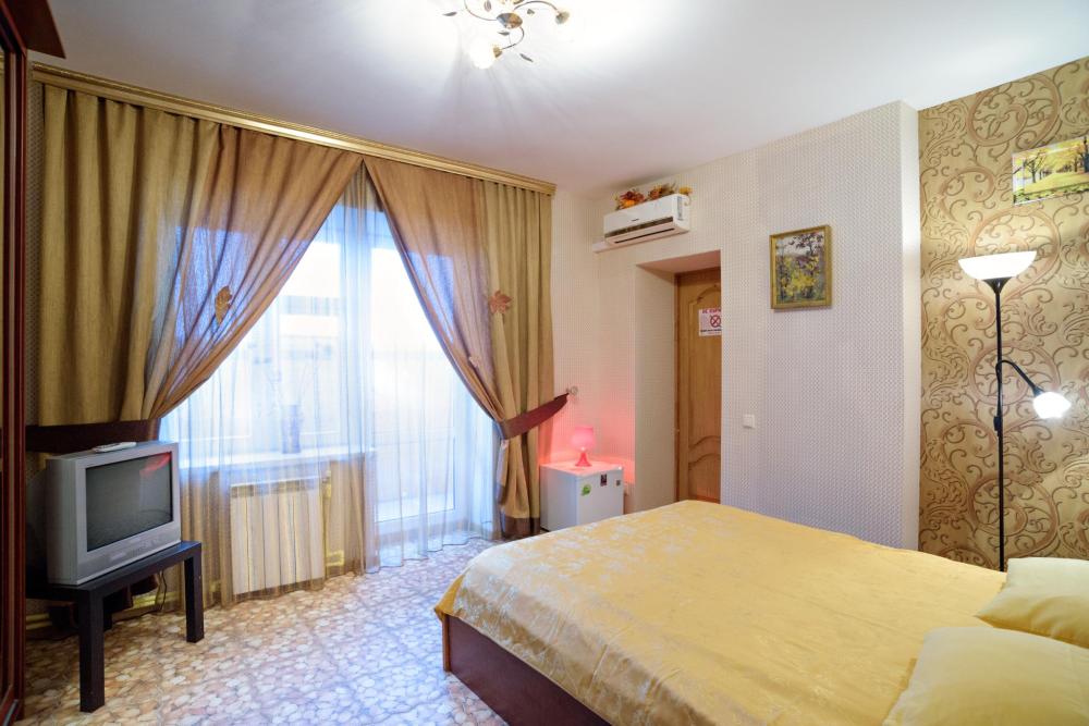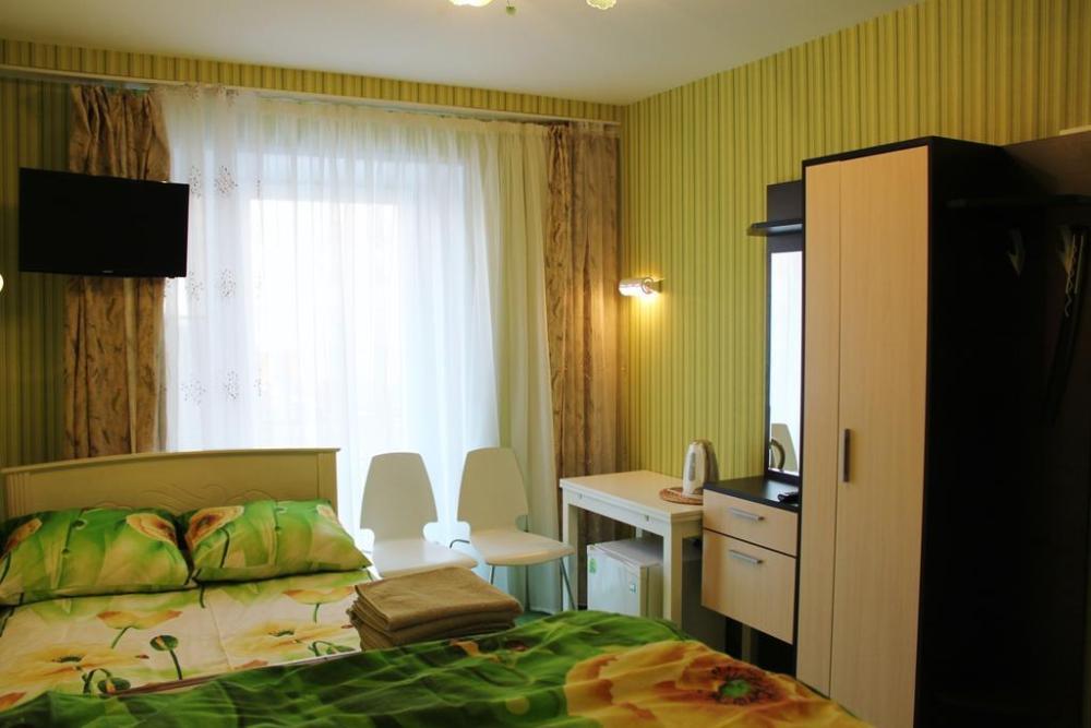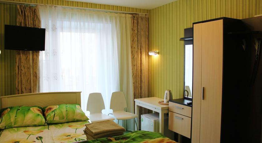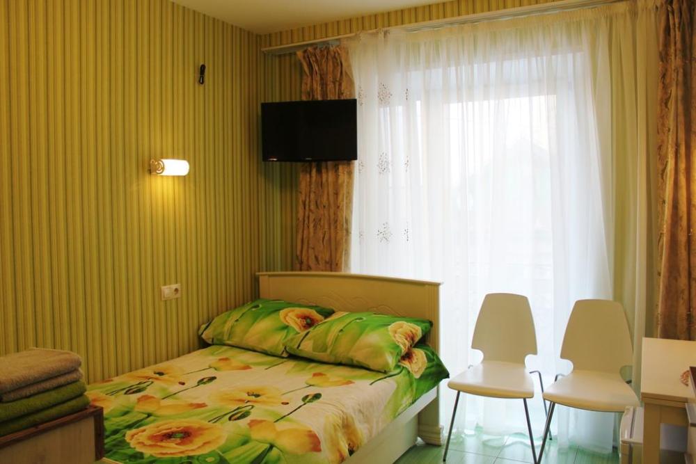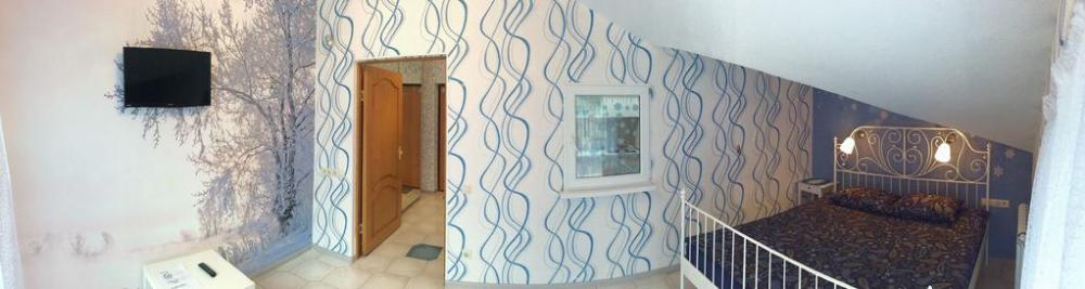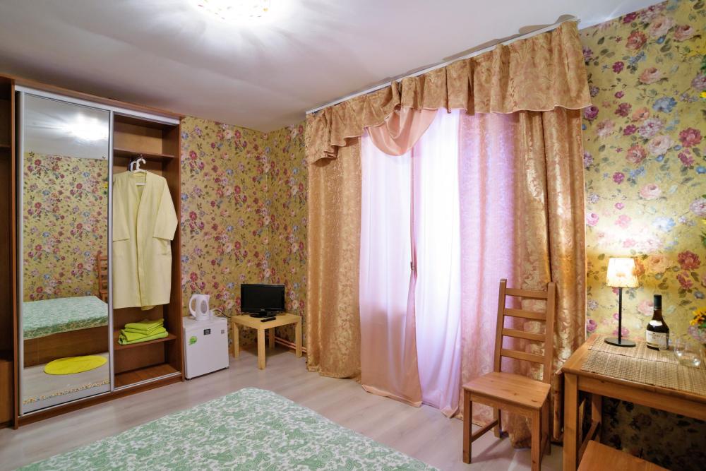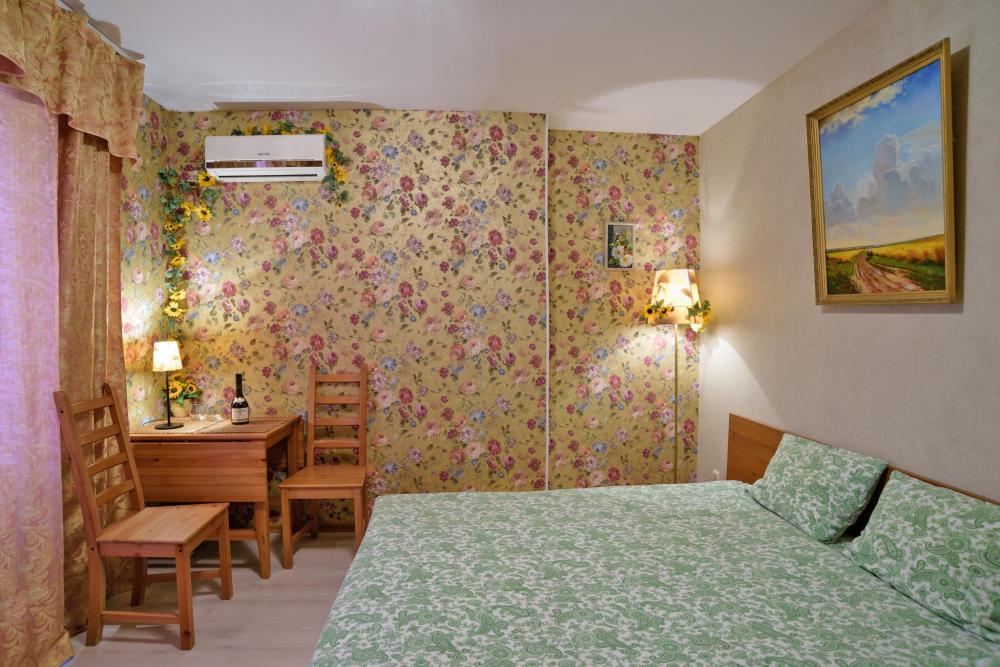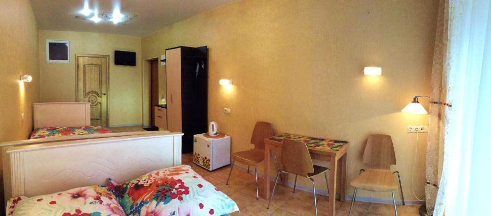 В комнате: одна двуспальная кровать, просторный гардероб, универсальный стол, холодильник, кондиционер (сплит-система), TV(67 каналов), Wi-Fi, большое зеркало,фен, косметическое зеркало, посуда. Собственный душ и туалет расположены напротив номера.