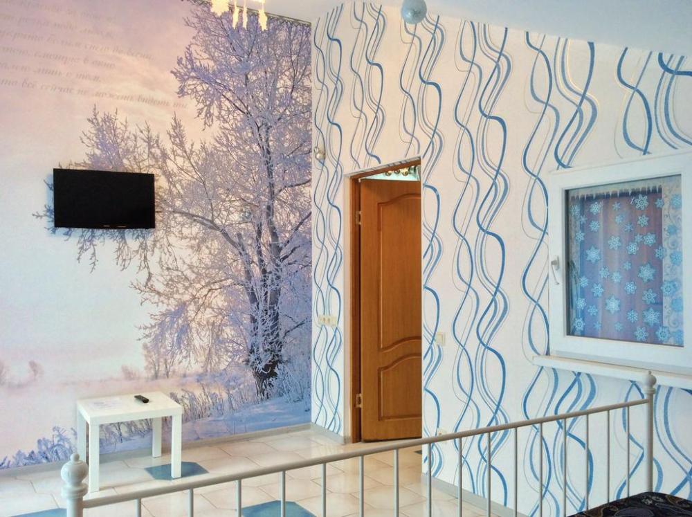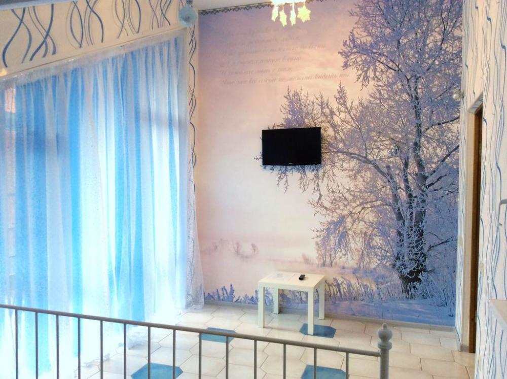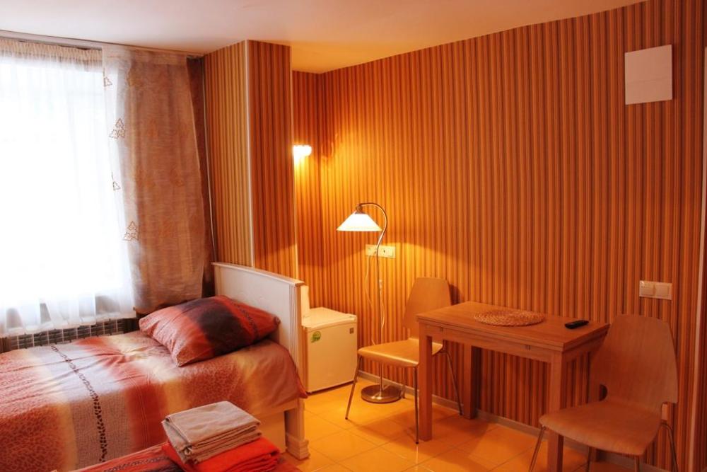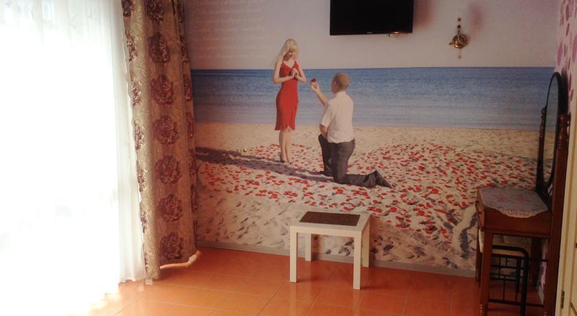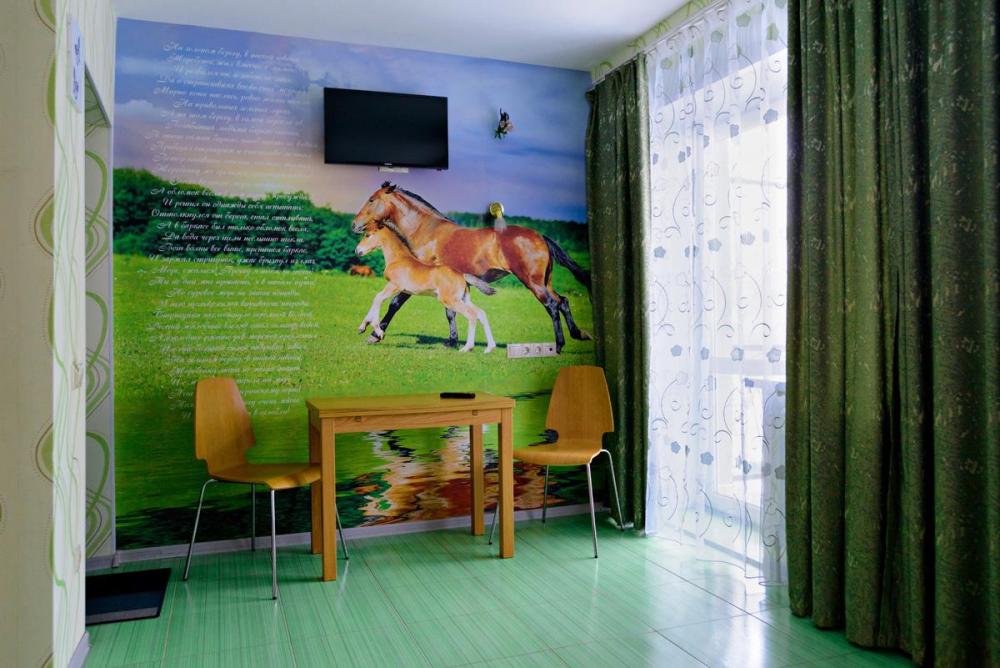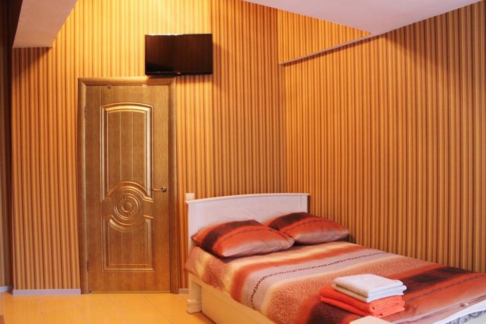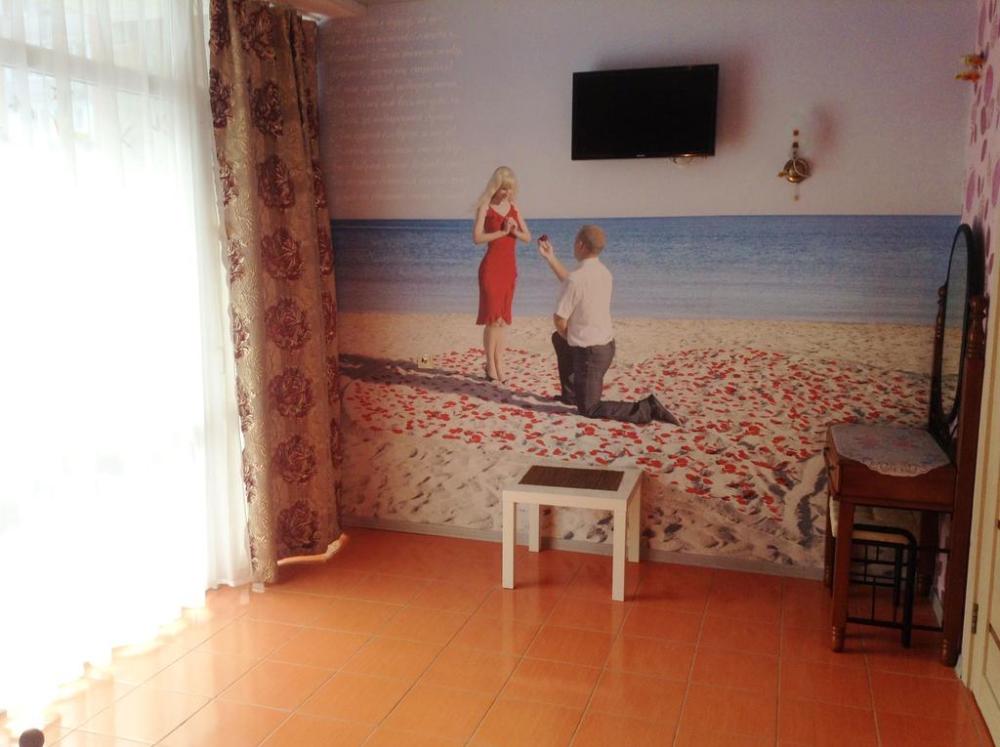 В комнате: одна двуспальная кровать, просторный гардероб, универсальный стол, холодильник, кондиционер (сплит-система), TV(67 каналов), Wi-Fi, большое зеркало,фен, косметическое зеркало, посуда. Собственный душ и туалет расположены напротив номера.
