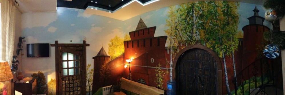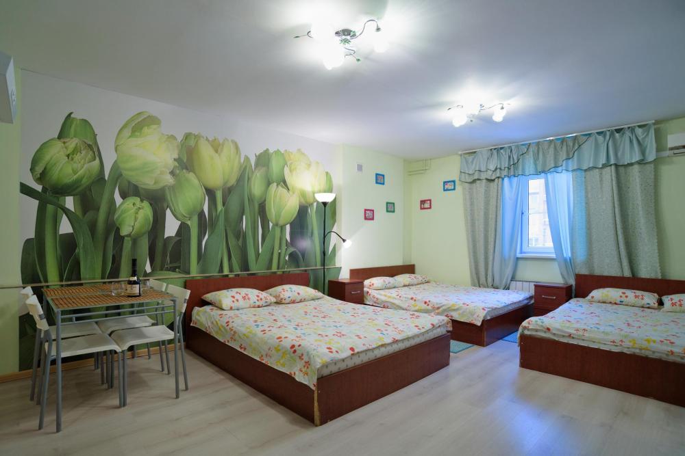 В комнате: теплый пол, три кровати (120х210,120х210,90х210; в каждой кровати предусмотрена возможность дополнительного выкатного места 90х210), шкаф-прихожая, универсальный стол, кондиционер (сплит-система), холодильник, ЖК телевизор, TV(67 каналов), Wi-Fi, фен, электрический чайник, большое зеркало, косметическое зеркало, посуда (ложки,вилки,ножи,тарелки,кружки,штопор).