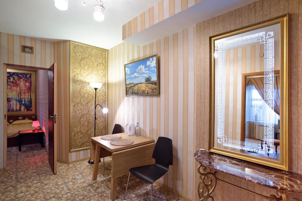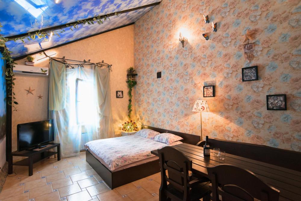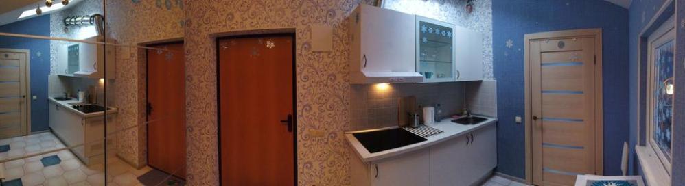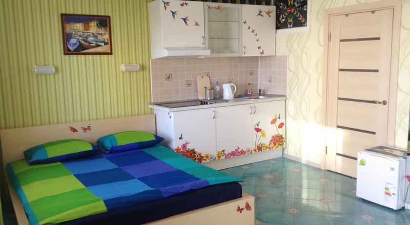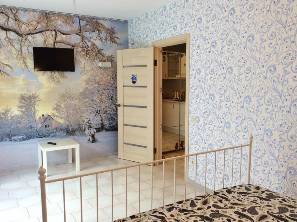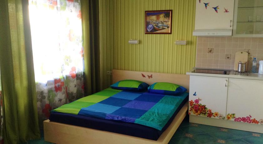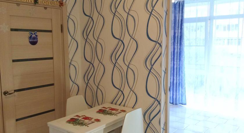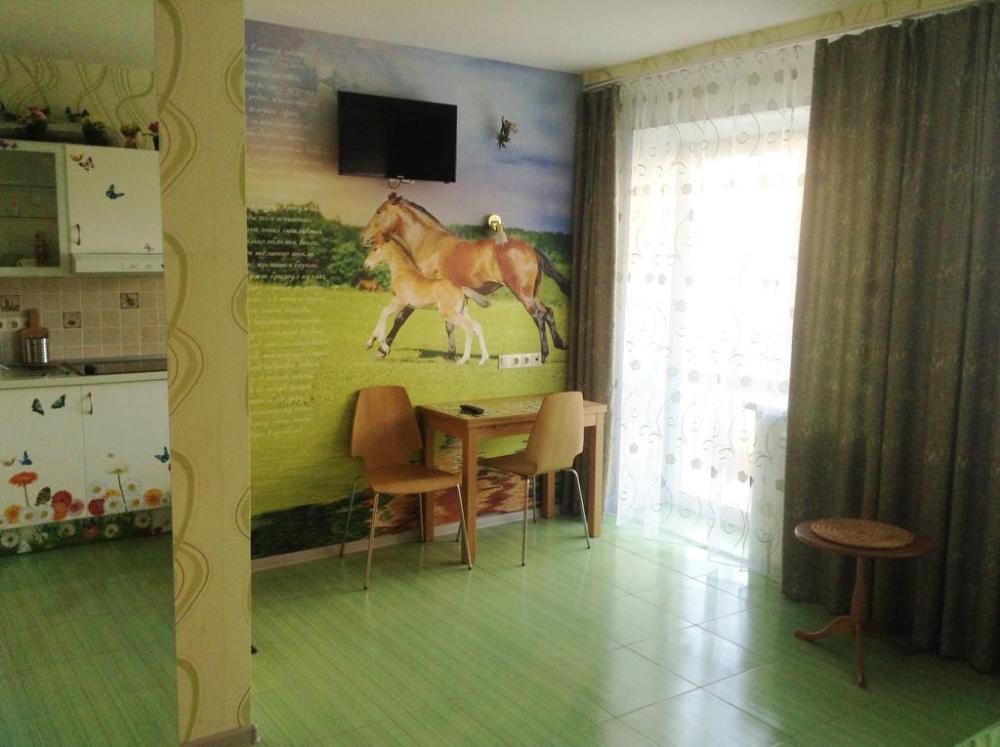 Комната с кухней, балконом, туалетом и душевой кабиной. В комнате: теплые полы, одна двуспальная кровать, просторный гардероб, универсальный стол, кондиционер (сплит-система), холодильник, ЖК телевизор, TV(67 каналов), Wi-Fi, фен, большое зеркало, косметическое зеркало, посуда.