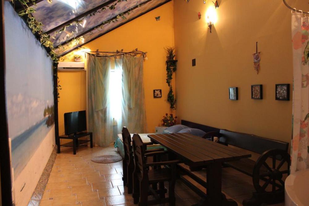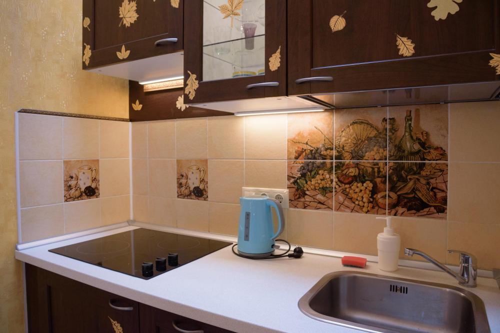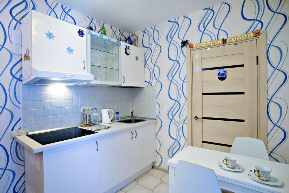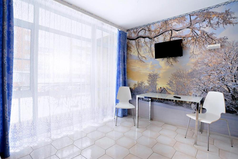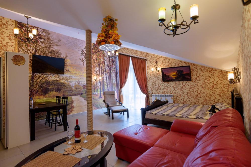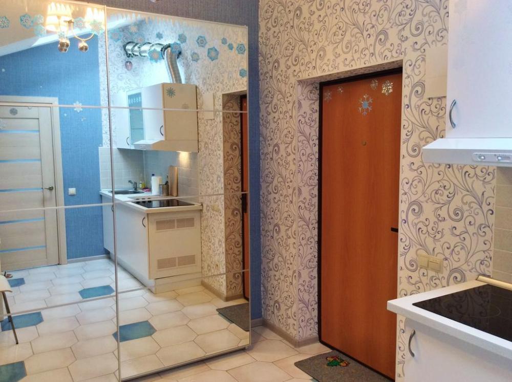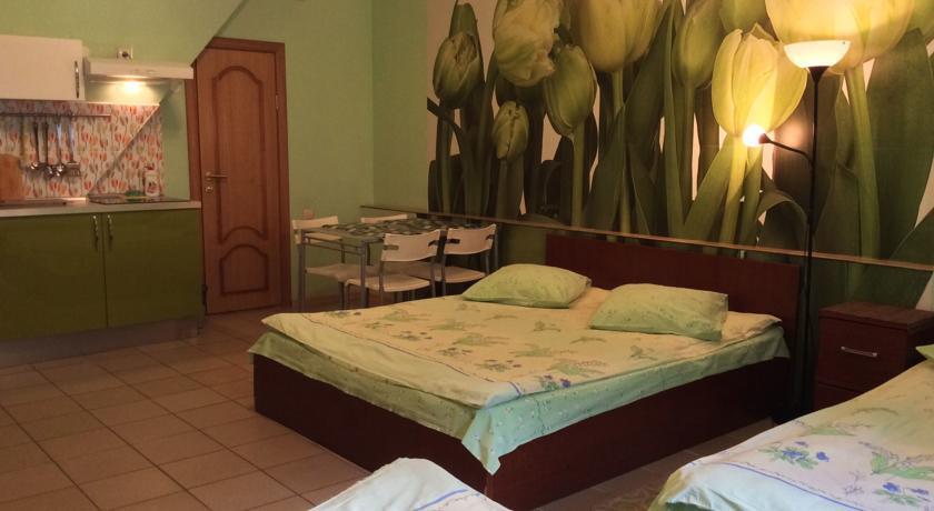 Комната с кухней, балконом, туалетом и душевой кабиной. В комнате: теплые полы, одна двуспальная кровать, просторный гардероб, универсальный стол, кондиционер (сплит-система), холодильник, ЖК телевизор, TV(67 каналов), Wi-Fi, фен, большое зеркало, косметическое зеркало, посуда.