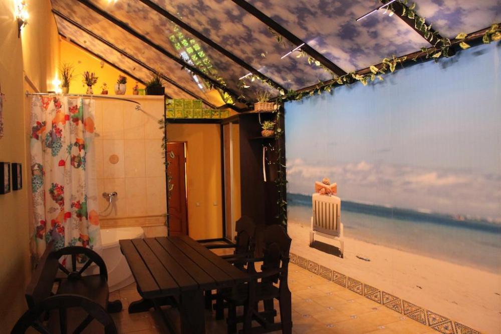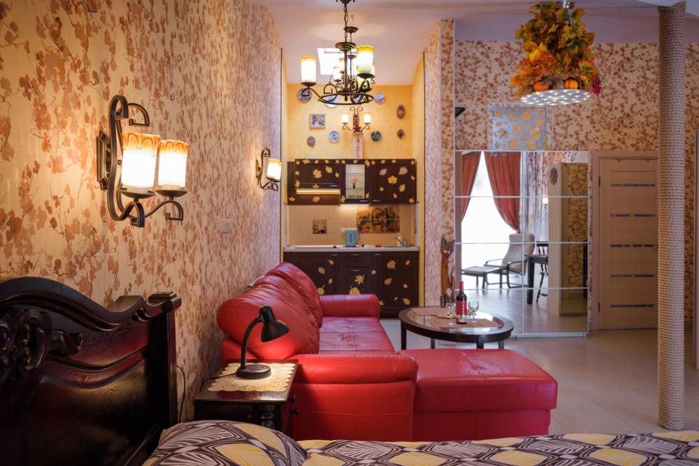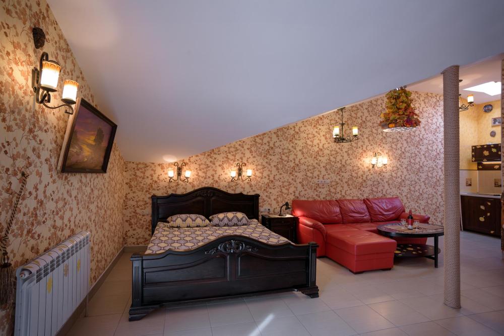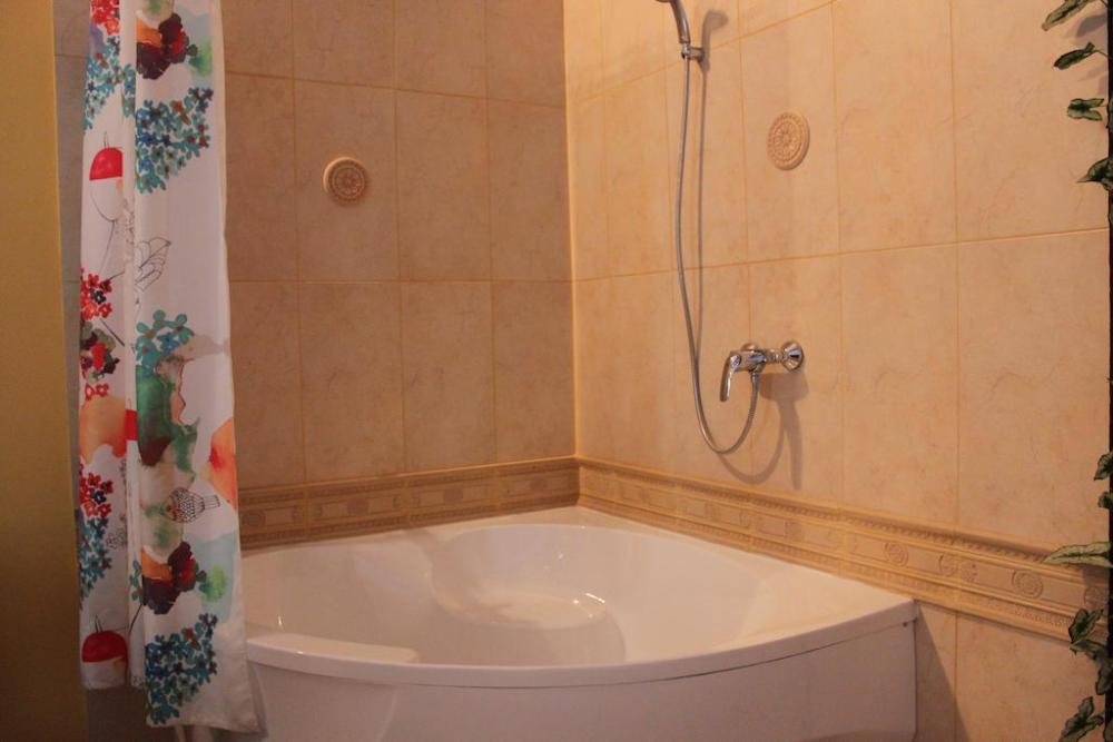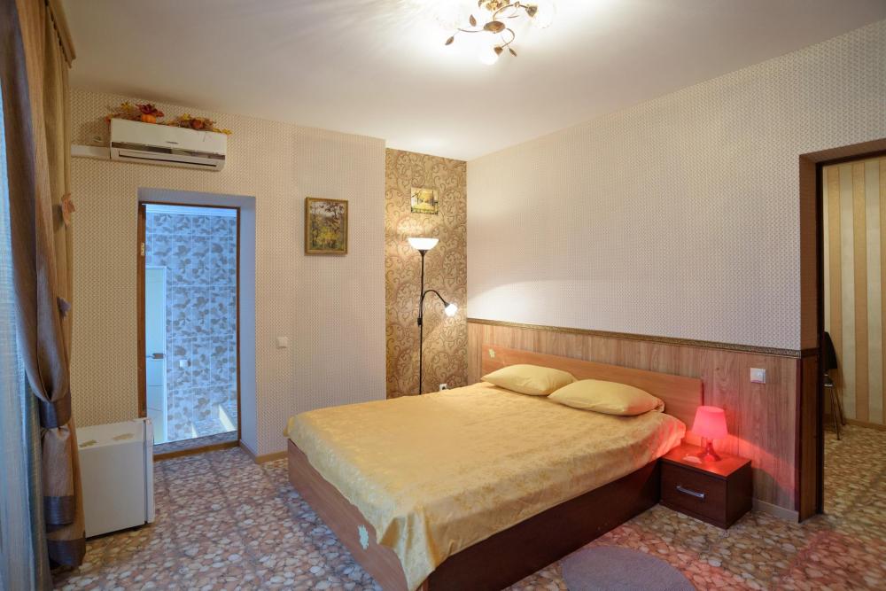 Комната с туалетом, душевой кабиной, балконом и угловой ванной. В комнате: одна двуспальная кровать,кожаный диван, угловая ванна,просторный гардероб, большой стол,холодильник, кондиционер (сплит-система), TV(67 каналов), Wi-Fi, фен, большое зеркало, косметическое зеркало, посуда.