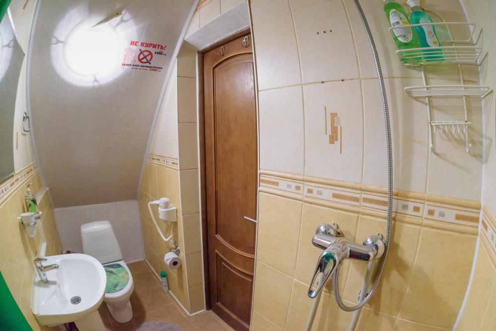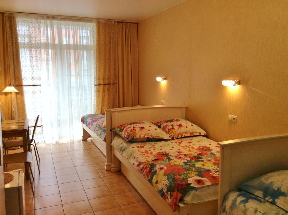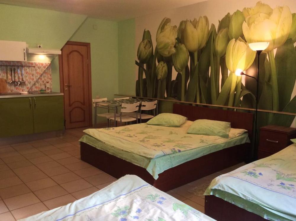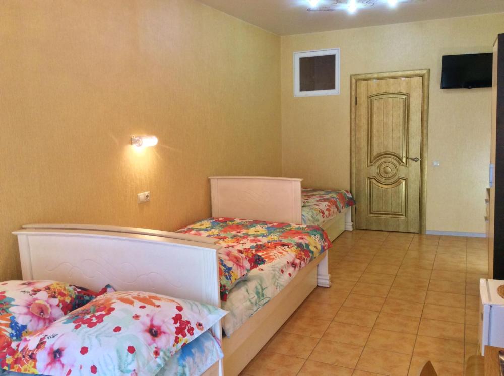 Комната с туалетом и душевой кабиной. В комнате: три двуспальных кровати, просторный гардероб, универсальный стол,холодильник, кондиционер (сплит-система), TV(67 каналов), Wi-Fi, фен, большое зеркало, косметическое зеркало, посуда.