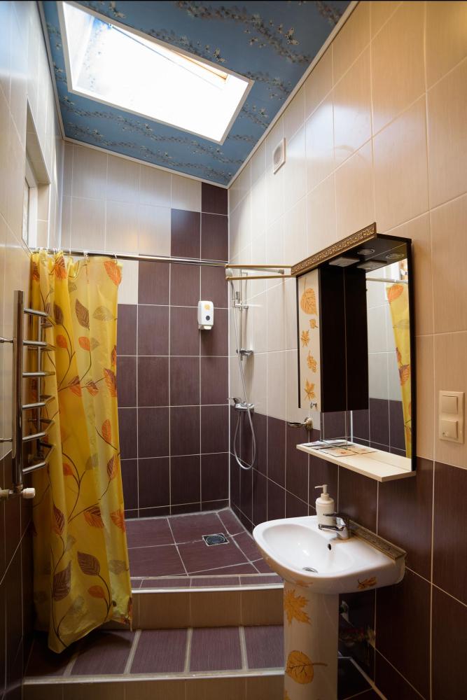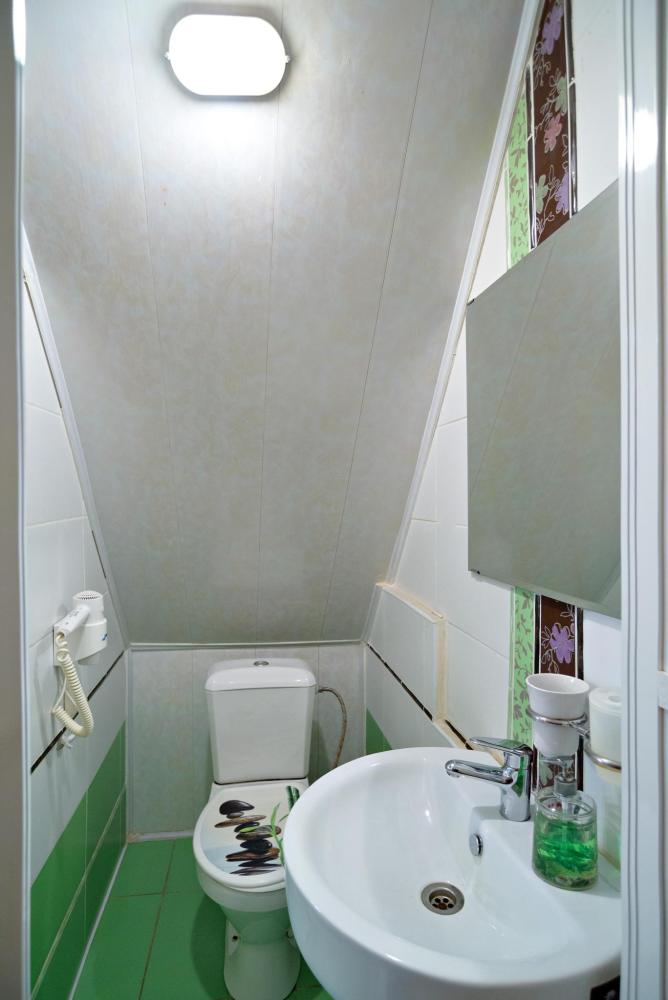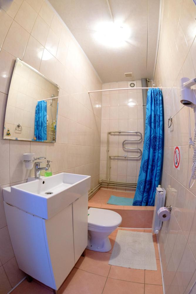 Комната с туалетом и душевой кабиной. В комнате: одна двуспальная кровать, просторный гардероб, универсальный стол, холодильник, кондиционер (сплит-система), TV(67 каналов), Wi-Fi, холодильник, фен, большое зеркало, косметическое зеркало, посуда.