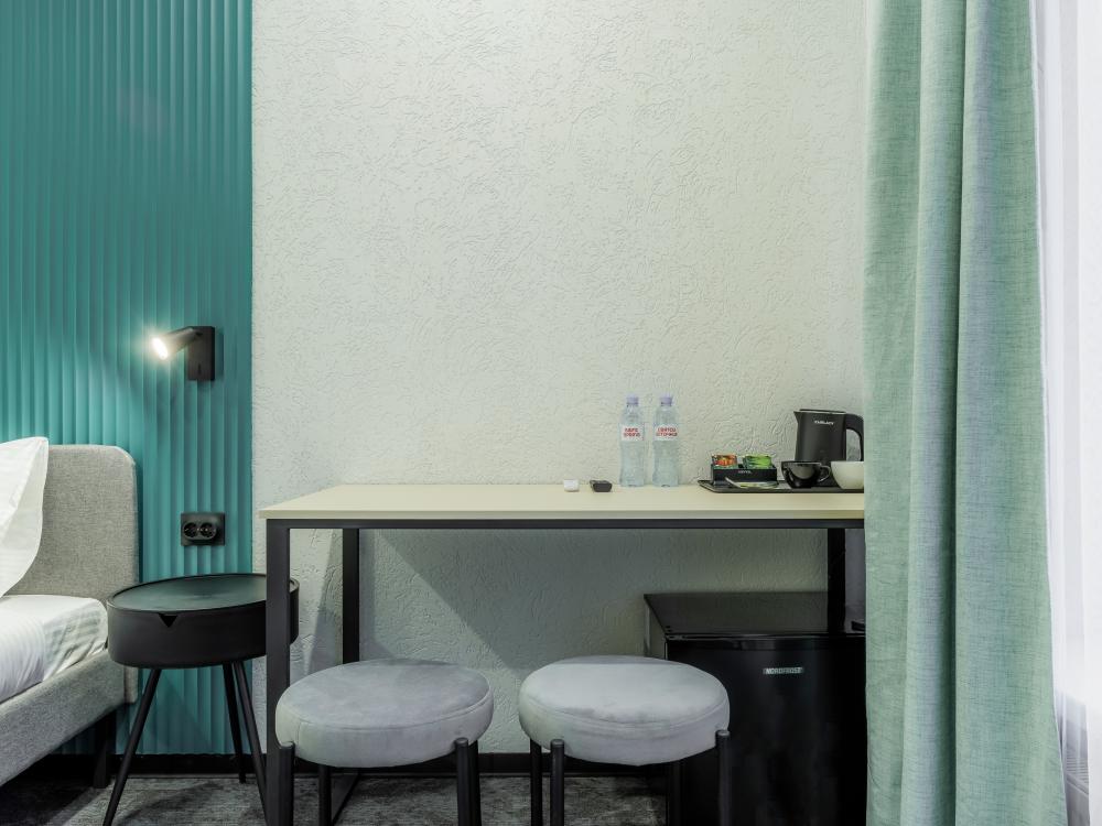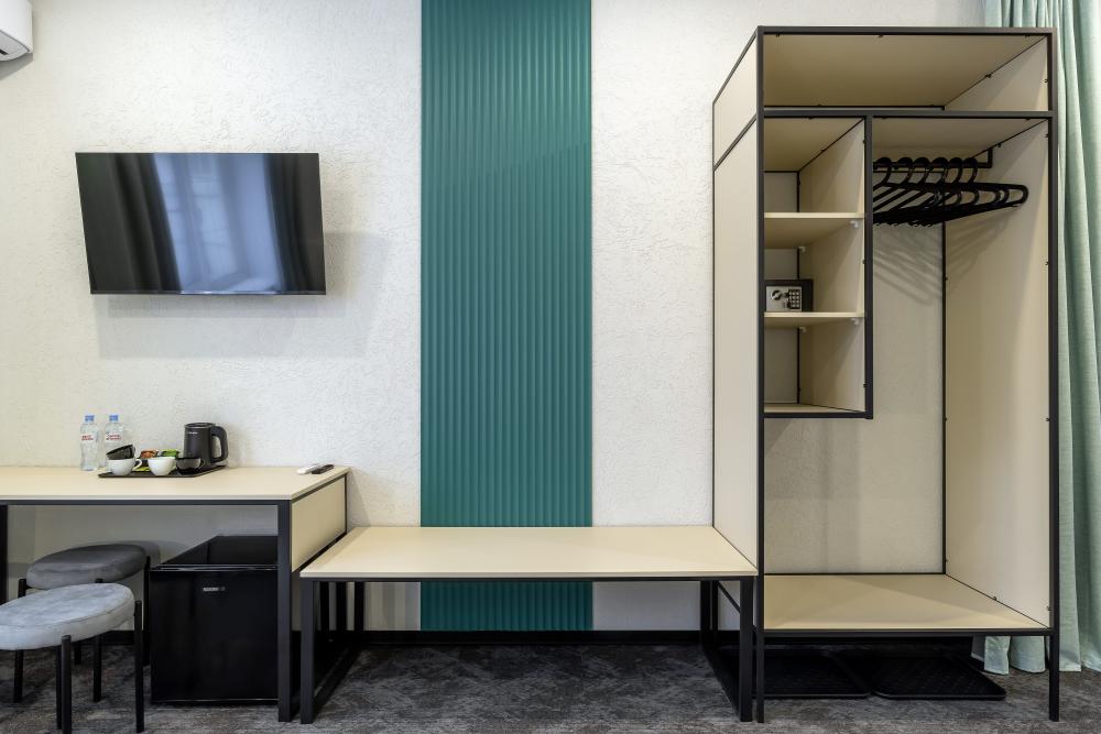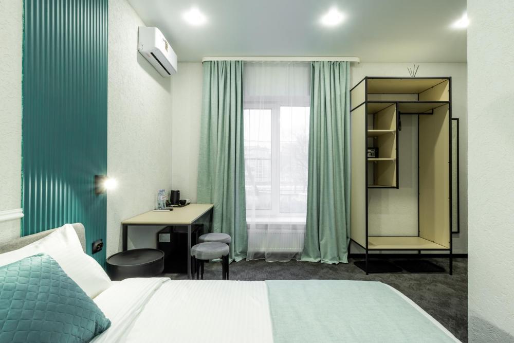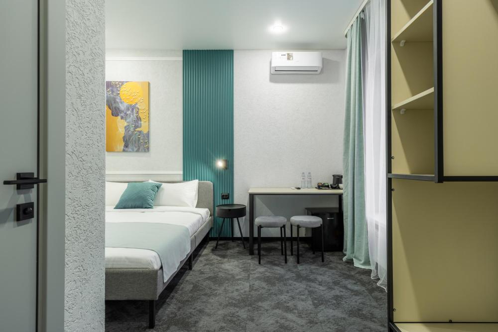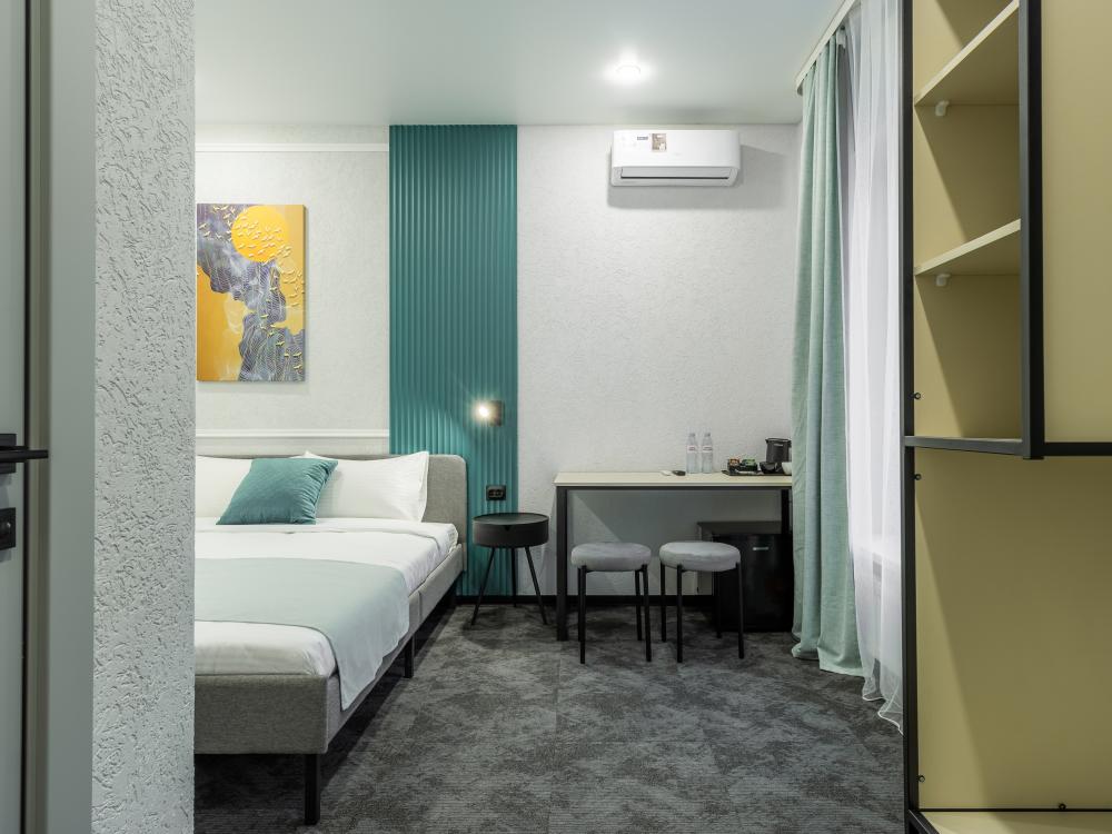 Комната стандарт с 1 двуспальной кроватью с 1 двуспальной кроватью. Благодаря шторам «Blackout», здесь хорошо отдыхать после дороги, высыпаться без лишнего шума и начинать день без спешки. Каждая комната оснащена: душем, косметическими принадлежностями, телевизором, бесплатным wi fi, кондиционером, сейфом, холодильником и чайным набором.