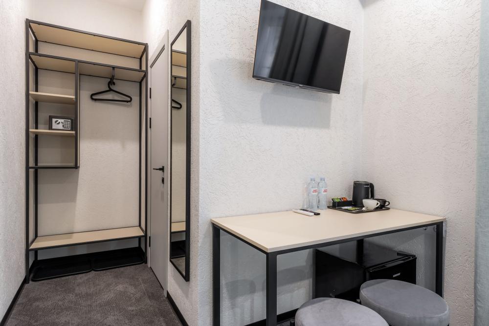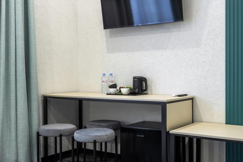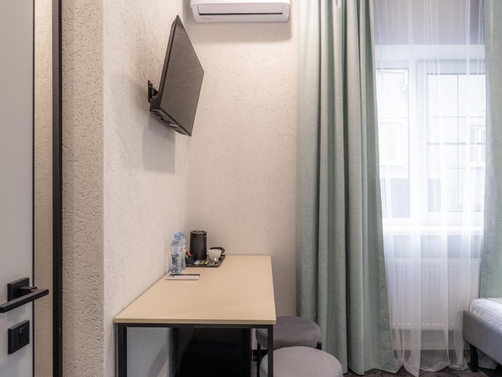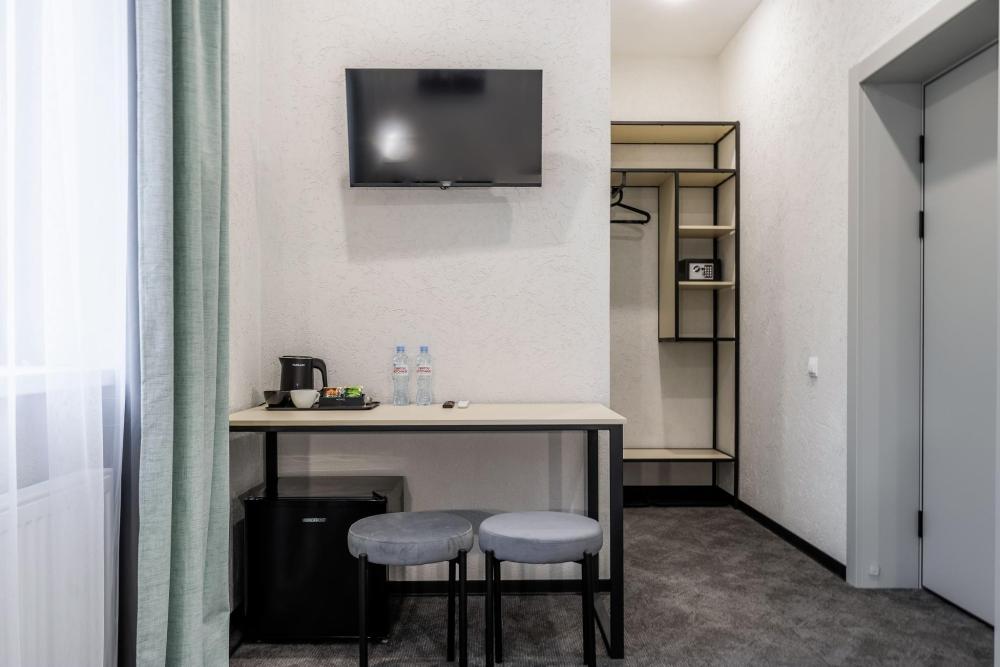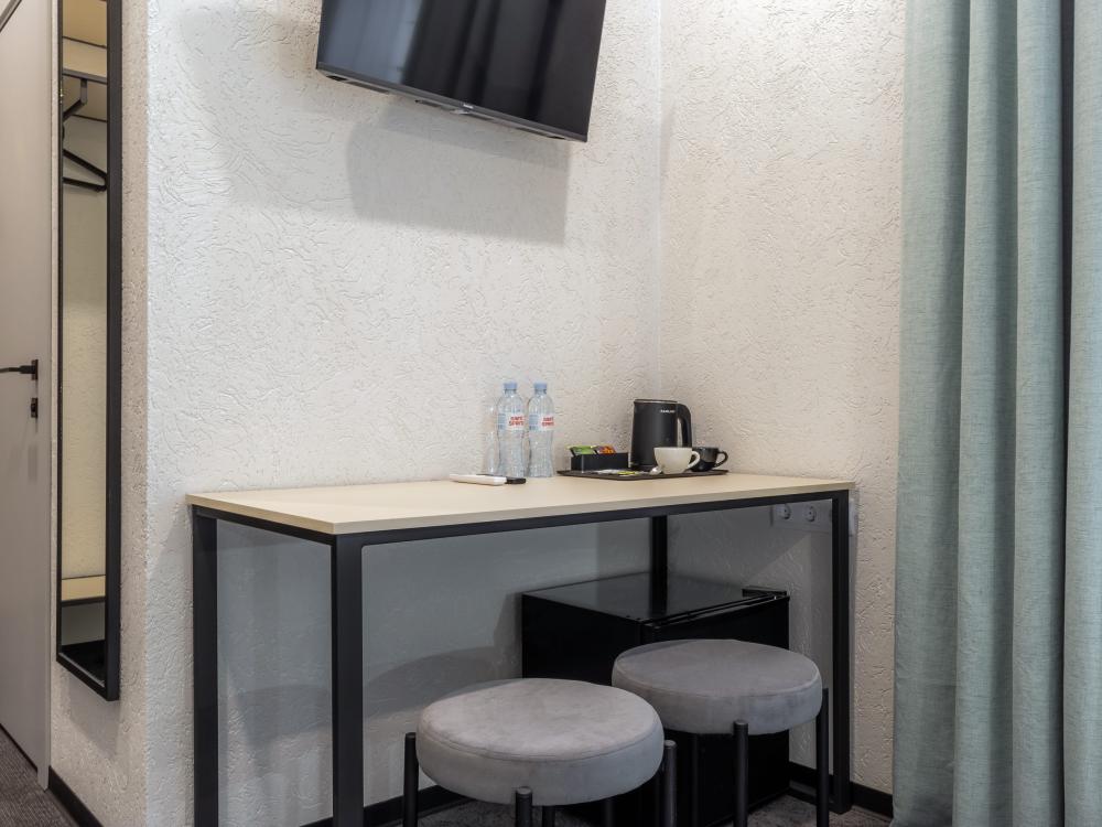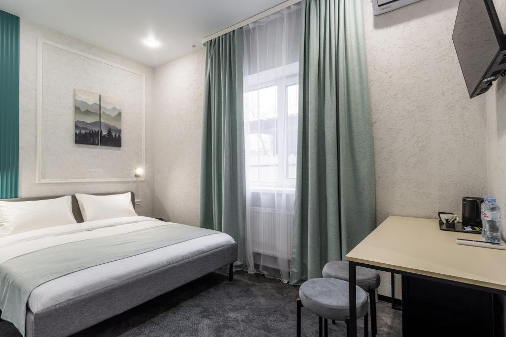 Комната стандарт с 1 двуспальной кроватью с 1 двуспальной кроватью. Благодаря шторам «Blackout», здесь хорошо отдыхать после дороги, высыпаться без лишнего шума и начинать день без спешки. Каждая комната оснащена: душем, косметическими принадлежностями, телевизором, бесплатным wi fi, кондиционером, сейфом, холодильником и чайным набором.