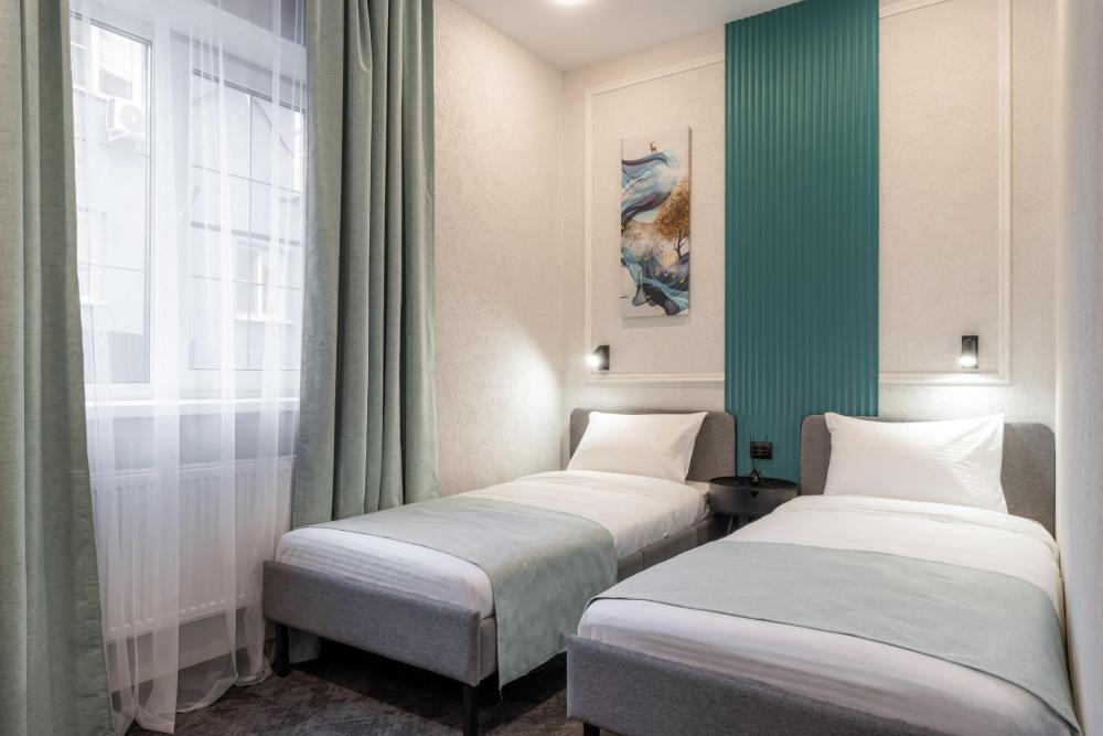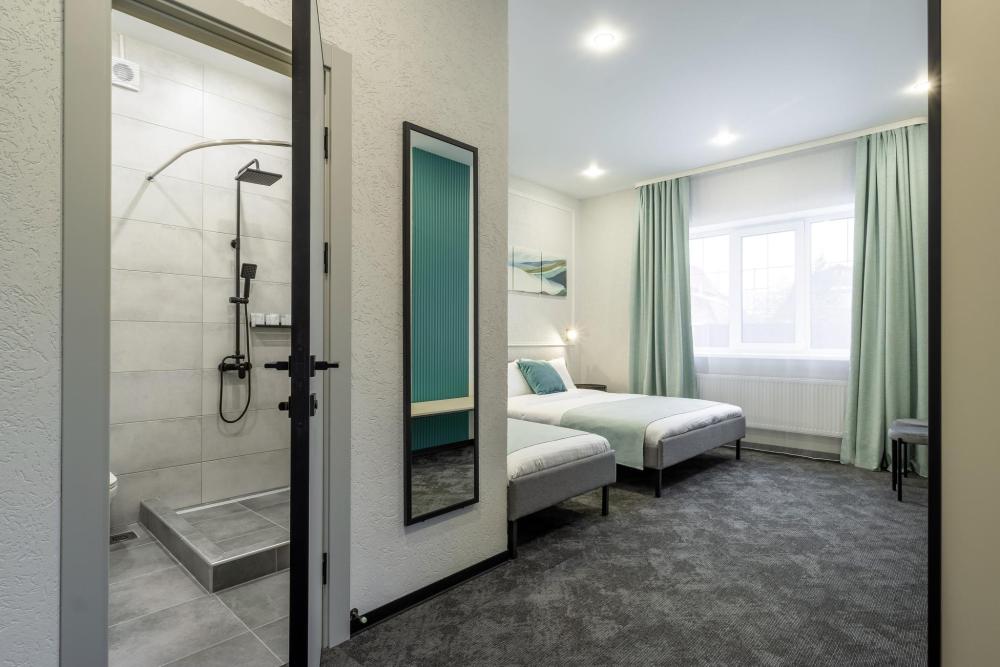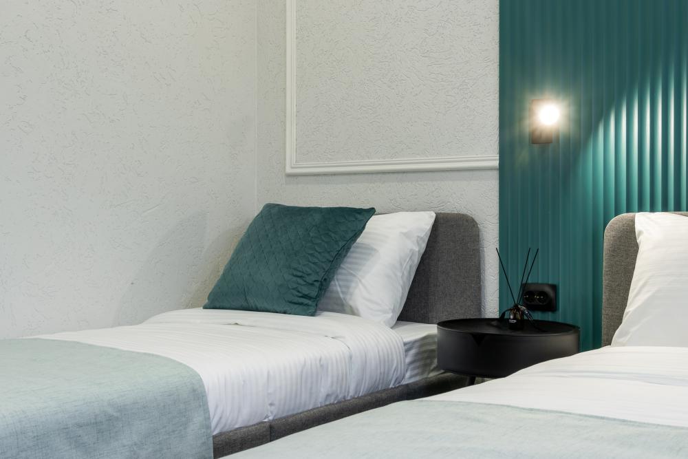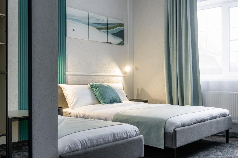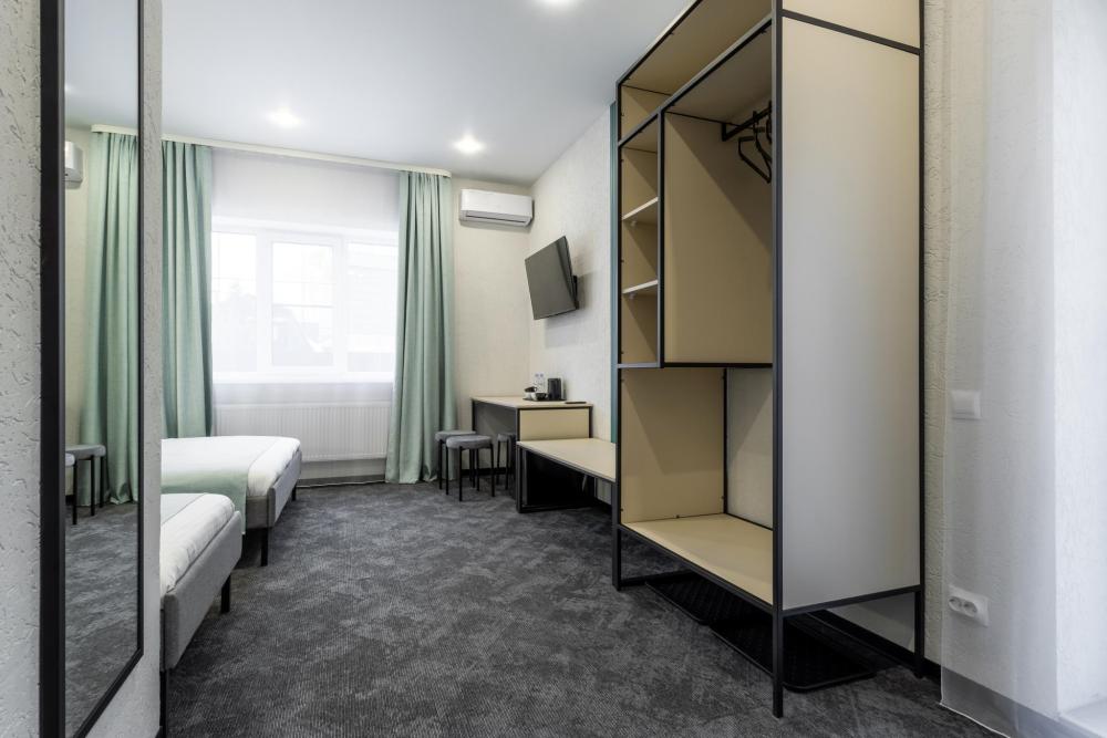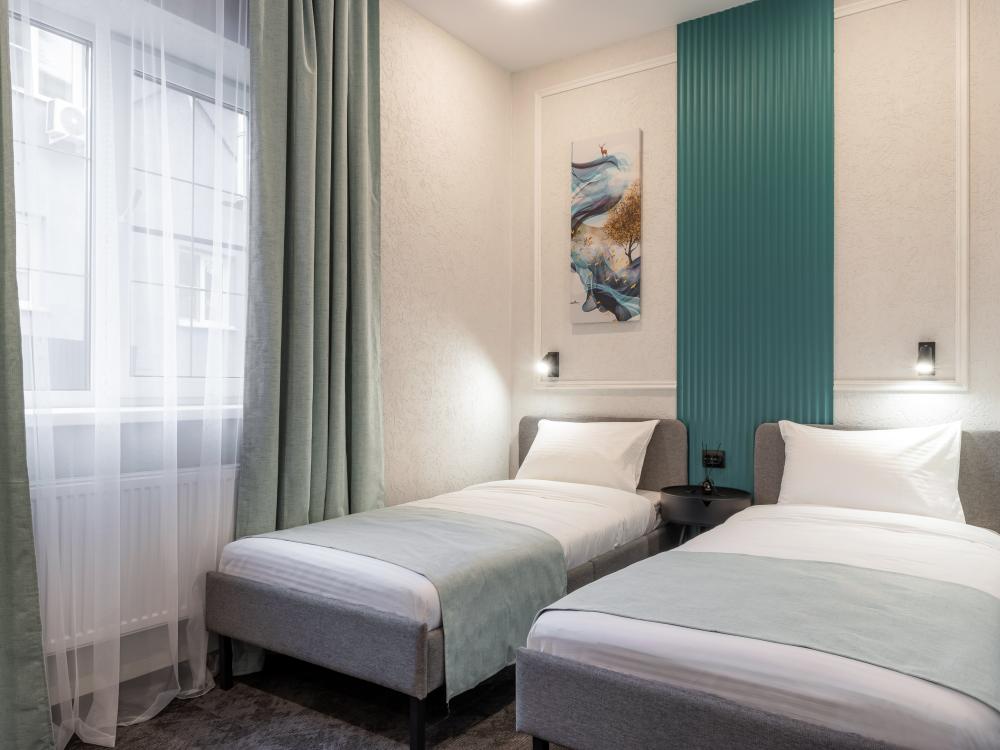 Комната стандарт с 2 односпальными кроватями. Благодаря шторам «Blackout», здесь хорошо отдыхать после дороги, высыпаться без лишнего шума и начинать день без спешки. Каждая комната оснащена: душем, косметическими принадлежностями, телевизором, бесплатным wi fi, кондиционером, сейфом, холодильником и чайным набором.