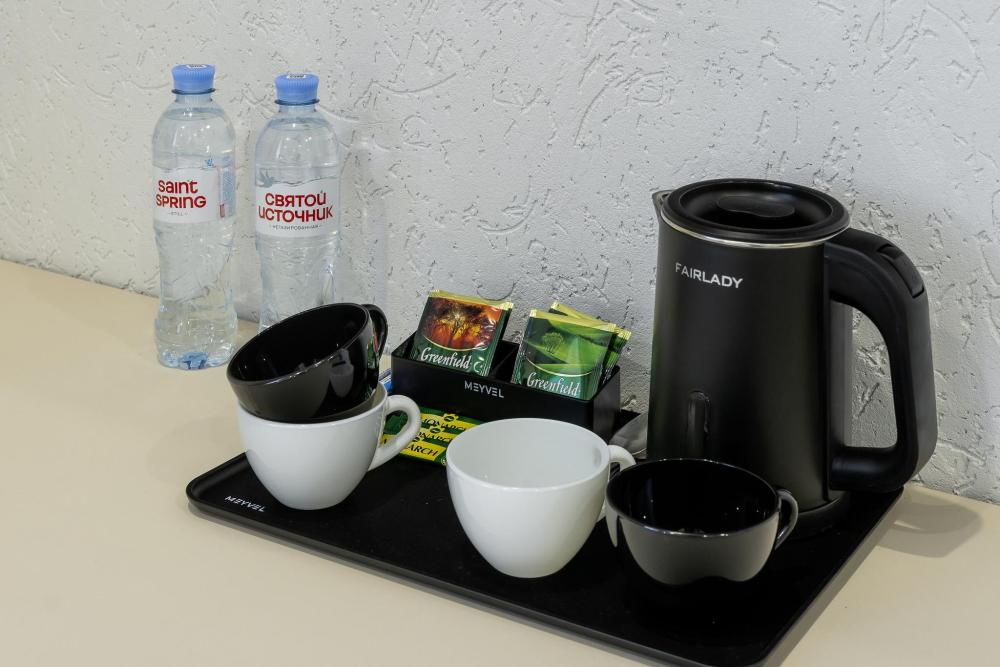 Комната комфорт с 1 двуспальной кроватью. Благодаря шторам «Blackout», здесь хорошо отдыхать после дороги, высыпаться без лишнего шума и начинать день без спешки. Каждая комната оснащена: душем, косметическими принадлежностями, телевизором, бесплатным wi fi, кондиционером, сейфом, холодильником и чайным набором.