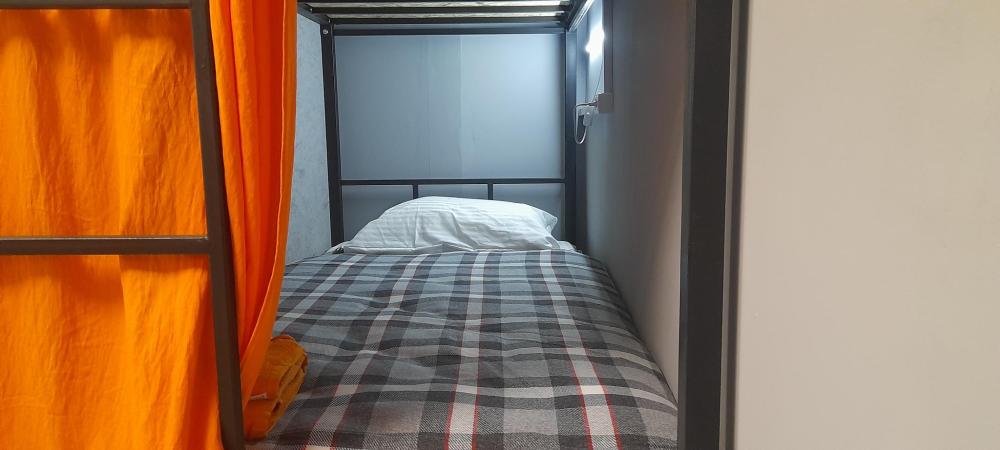Двухъярусные кровати, удобное спальное место с ортопедическим матрасом. Индивидуальное освещение и розетки у каждой кровати, просторная общая кухня с современной техникой, чистые душевые и туалеты, бесплатный Wi-Fi на всей территории.