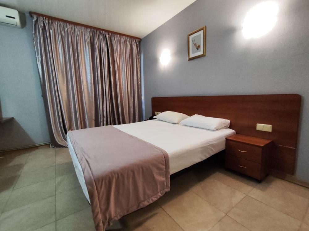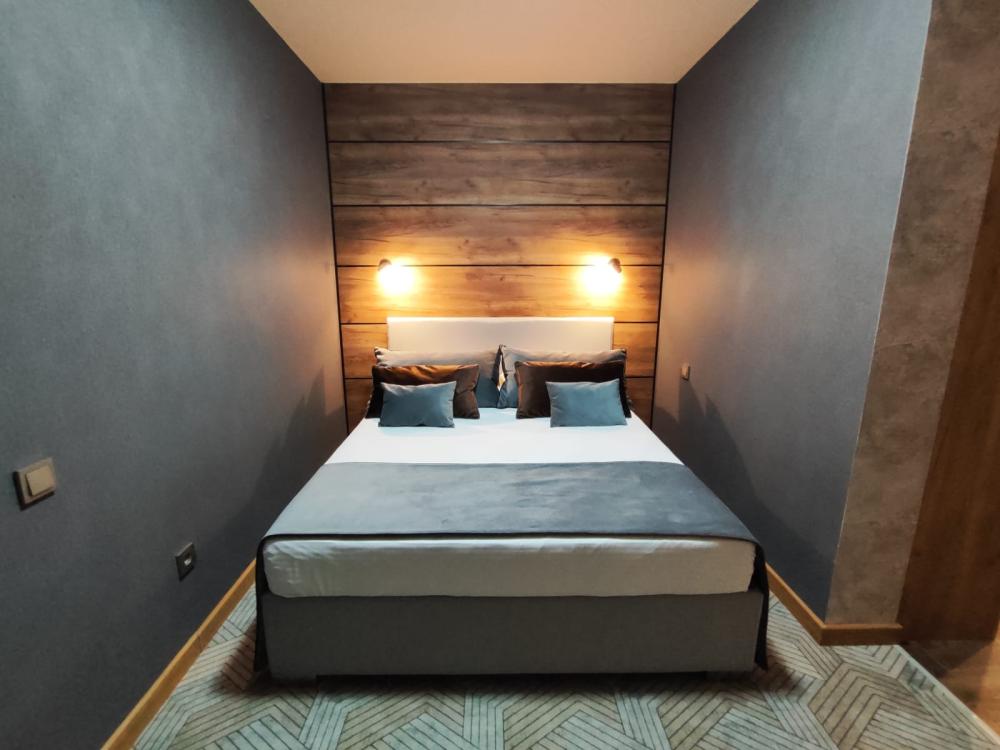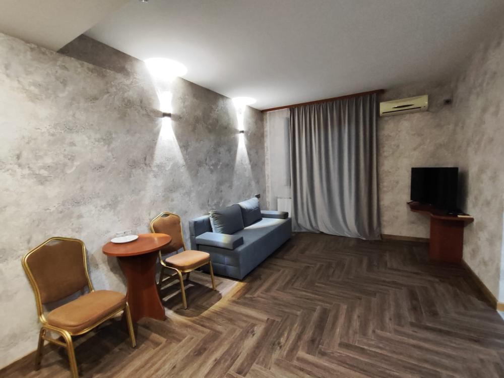 Улучшенный двухкомнатный номер по разумной цене, где есть всё необходимое для комфортного пребывания. Предоставляется возможность выбора размещения в номере с двуспальной кроватью (доп место - односпальная кровать). В номере: электронный замок с магнитным ключом, холодильник, ЖК-телевизор, кондиционер, телефон, журнальный столик, диван, шкаф-купе, санузел душевой кабиной/ванной, фен, тапочки, полотенца, гигиенические принадлежности.