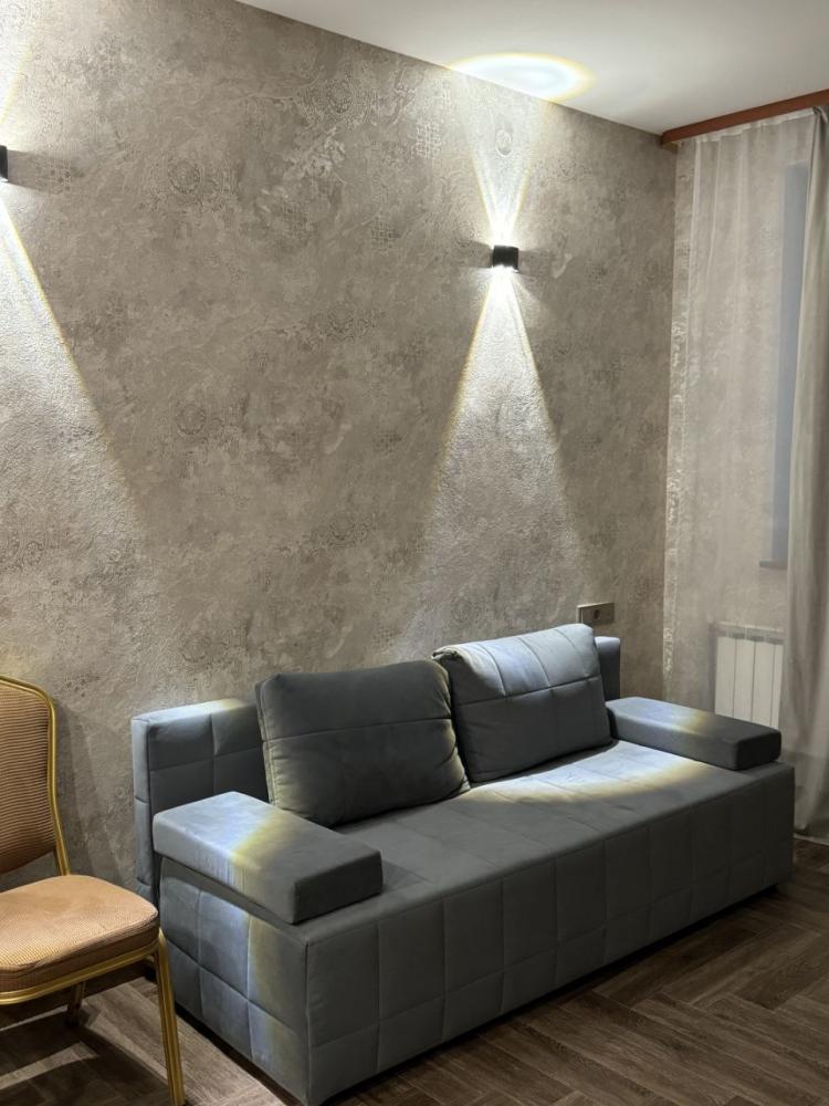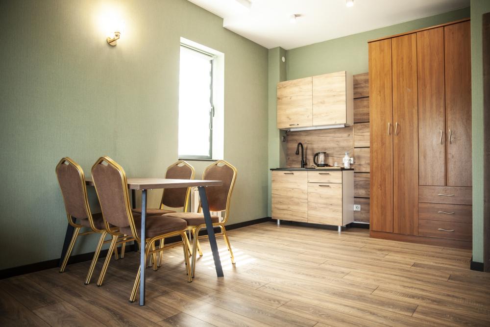 Уютный однокомнатный номер с современной техникой и комфортабельной мебелью. Предоставляется возможность выбора размещения в номере с двумя односпальными кроватями или с одной двуспальной кроватью. Возможно проживание вчетвером, т. к. диван позволяет свободно разместить ещё 2 человека.