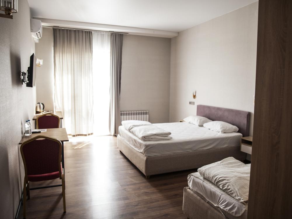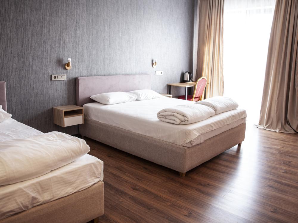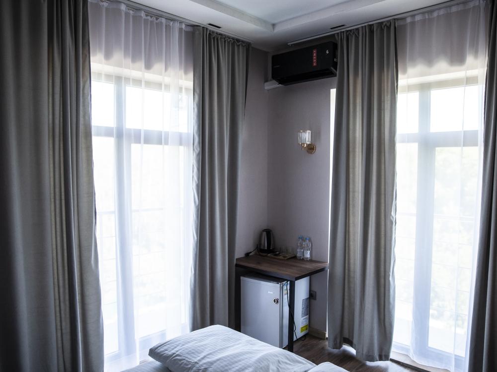 Небольшие и функциональные номера по разумной цене, где есть всё необходимое для комфортного пребывания. Предоставляется возможность выбора размещения в номере с двумя односпальными кроватями или с одной двуспальной кроватью. В номере: электронный замок с магнитным ключом, двуспальная кровать/две односпальные кровати, холодильник, ЖК-телевизор, кондиционер, телефон, стол, прикроватные тумбы, вместительный шкаф-купе, санузел с ванной/душевой кабиной, фен, полотенца.