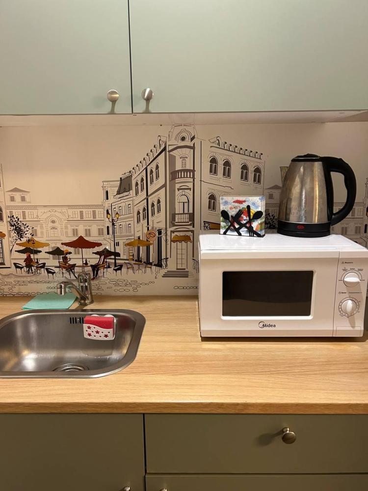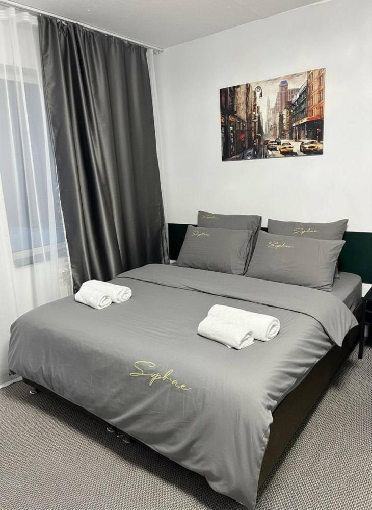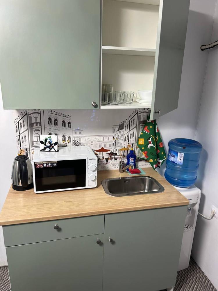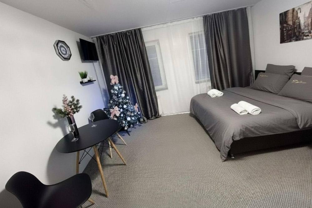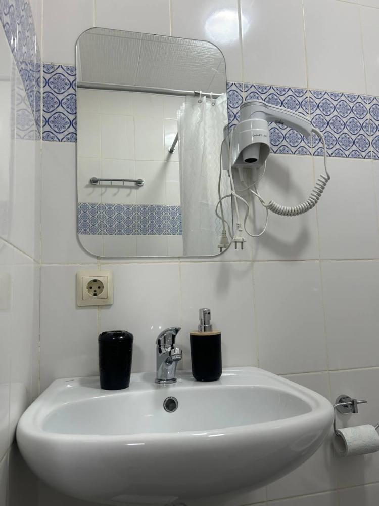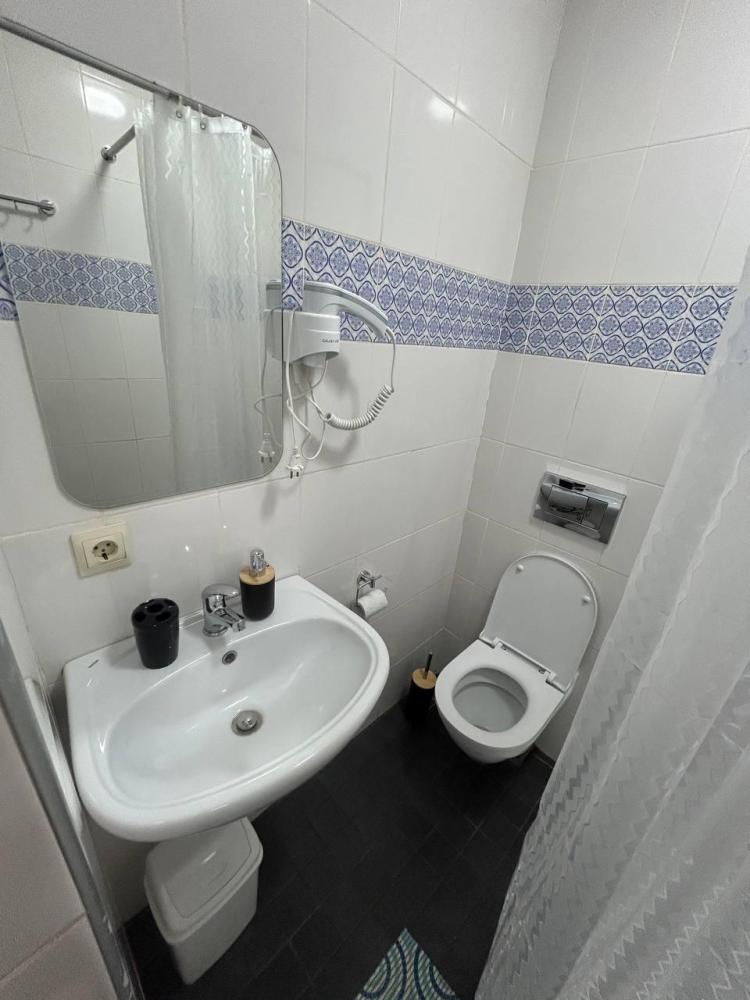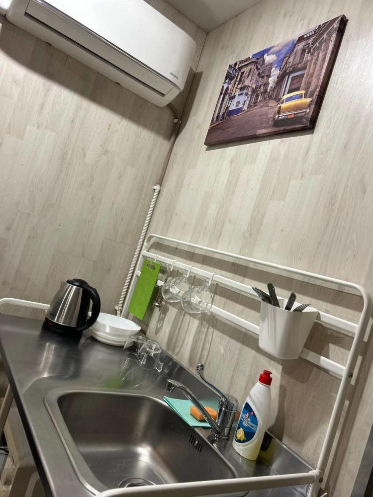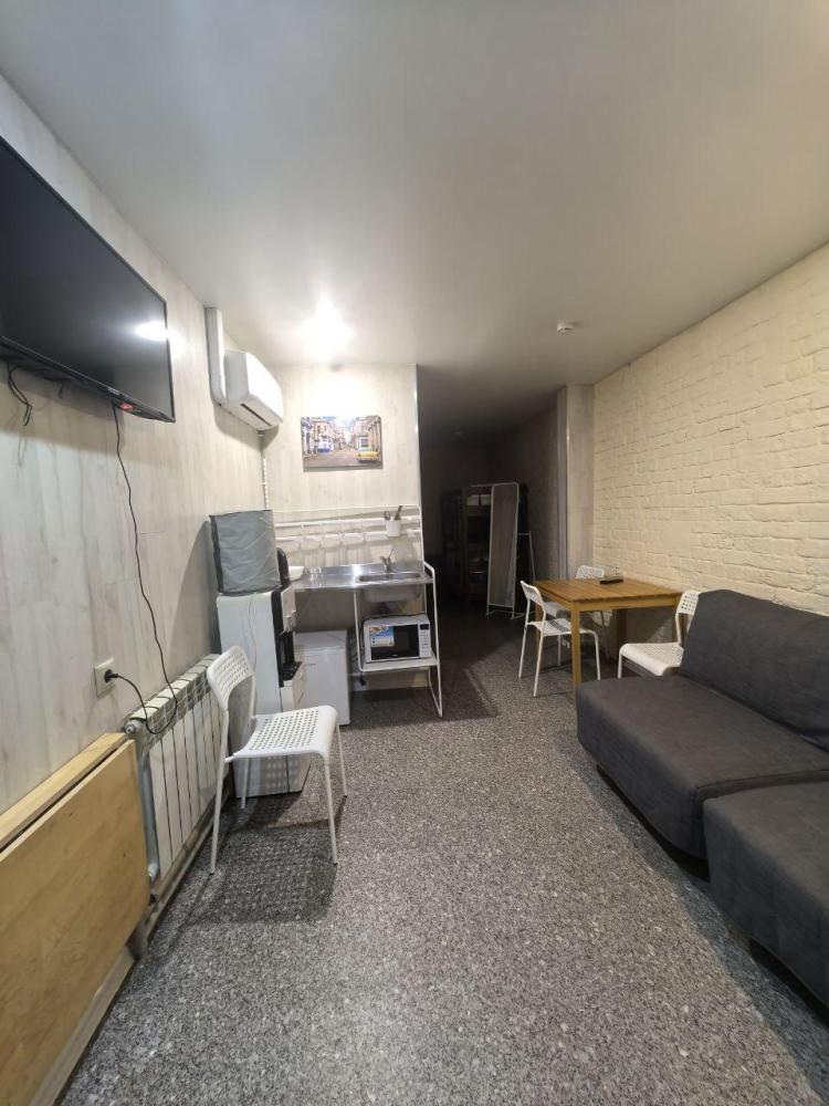 Номер студия общей площадью 22 кв.м. для размещения до 4-х гостей. Для комфортного проживания гостей номер оснащен всем необходимым: двухспальная кровать, прикроватные тумбочки, диван, телевизор, кондиционер, зеркало, чайник, холодильник, микроволновая печь, посуда, ванная комната с душем, фен, набор полотенец.