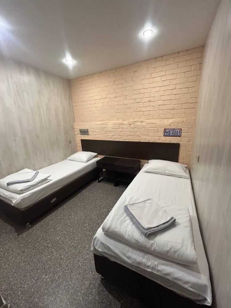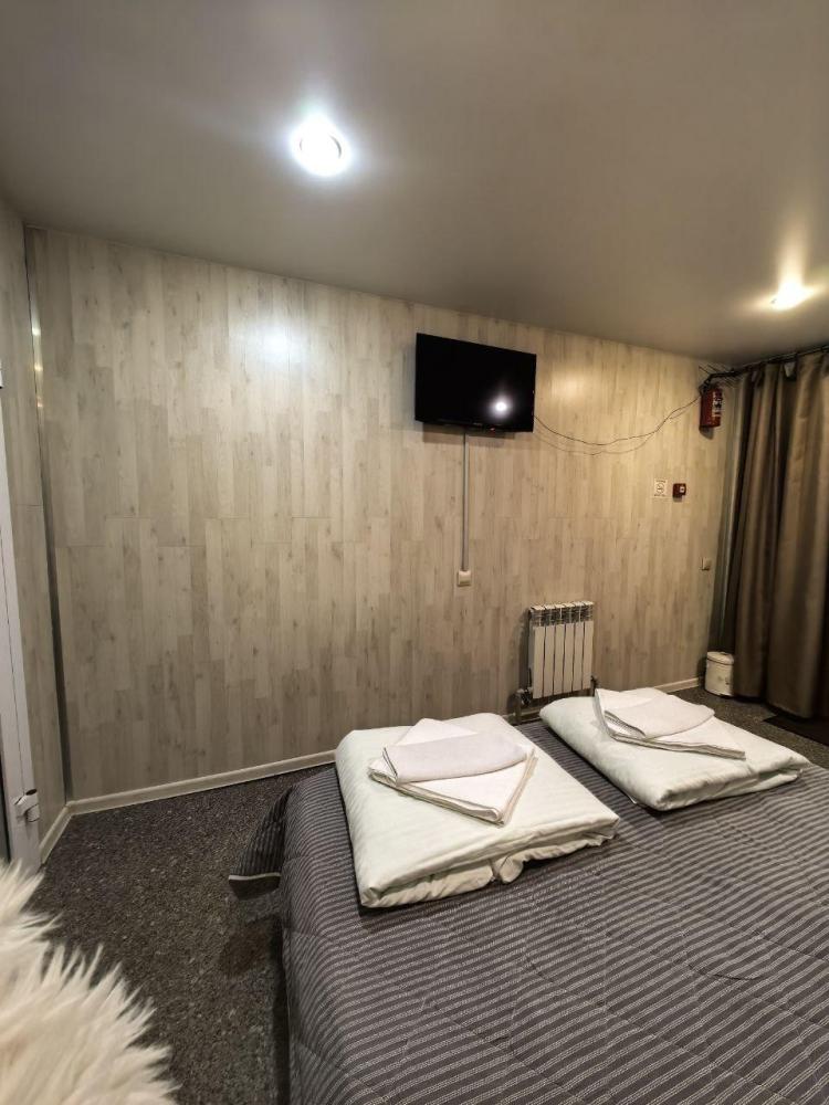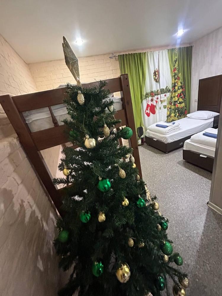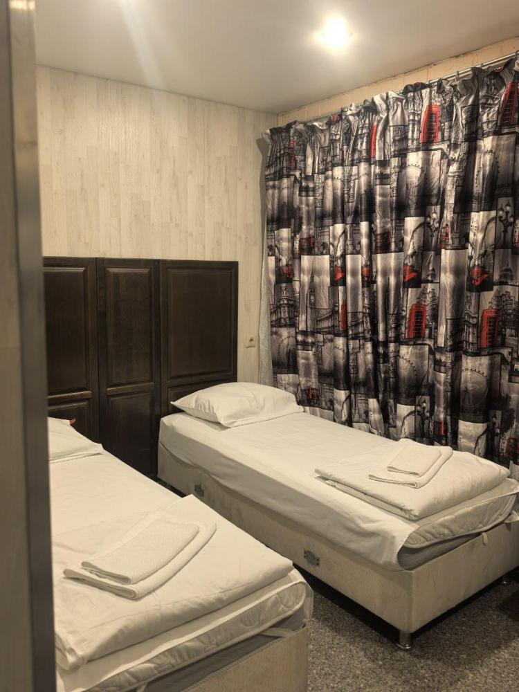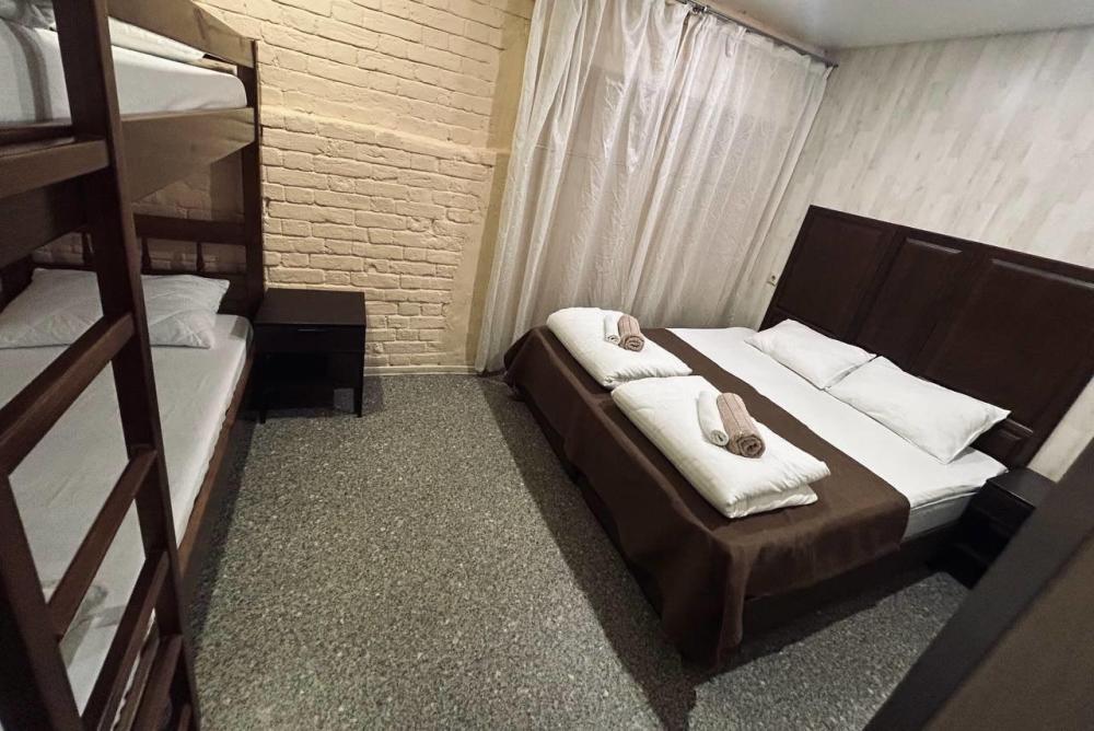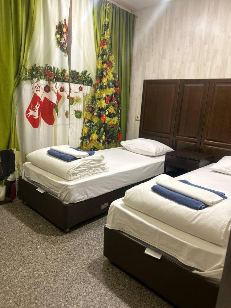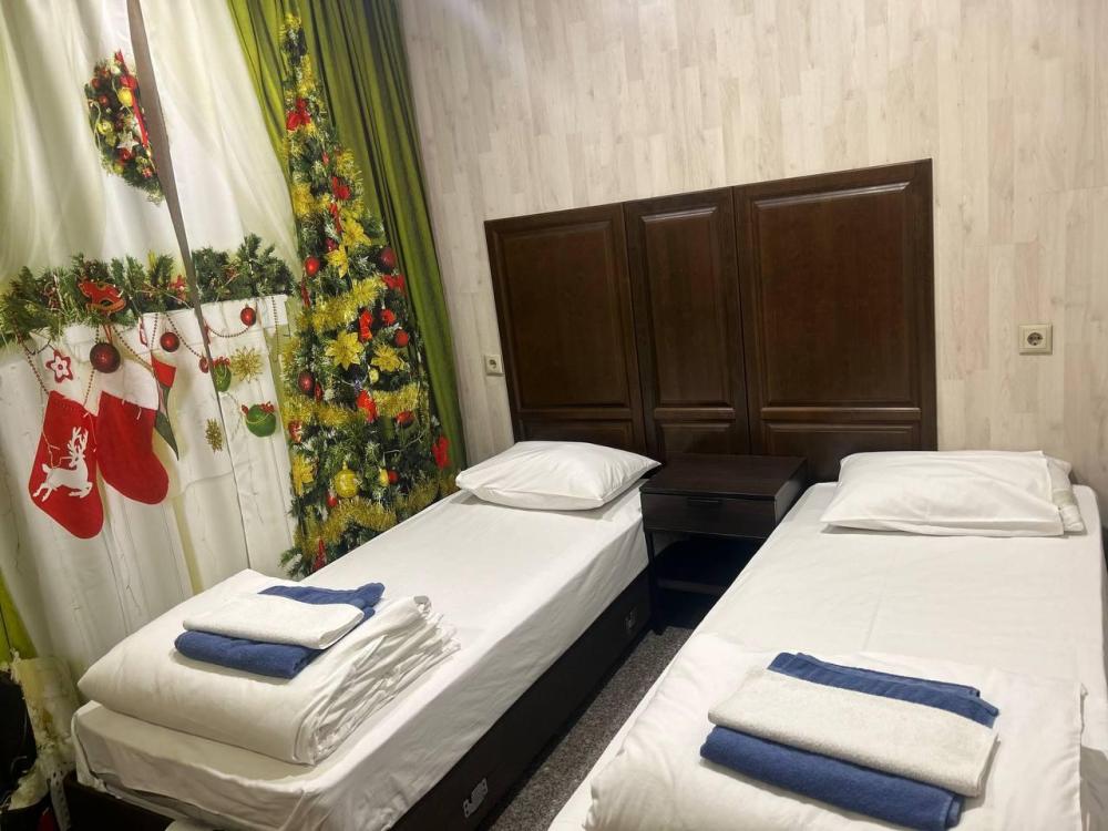 Номер люкс общей площадью 23 кв.м. для размещения до 4-х гостей. Для комфортного проживания гостей номер оснащен всем необходимым: двухспальная кровать, двухъярусная кровать, прикроватные тумбочки, телевизор, кондиционер, зеркало, чайник, холодильник, микроволновая печь, посуда, ванная комната с душем, фен, набор полотенец.